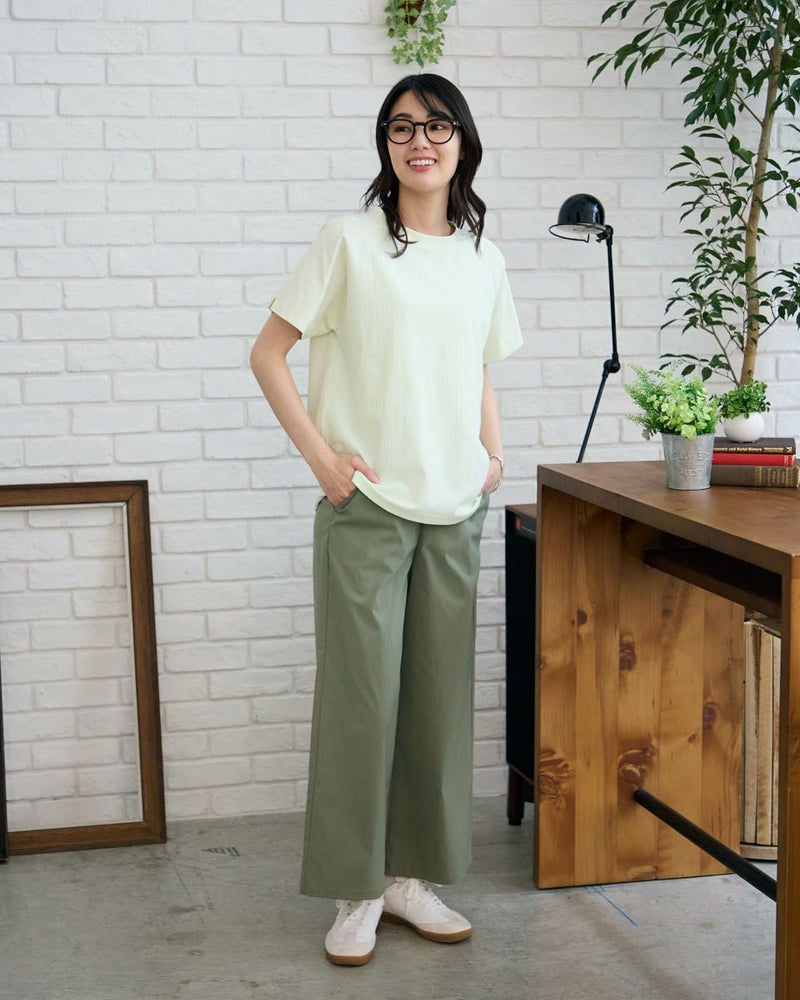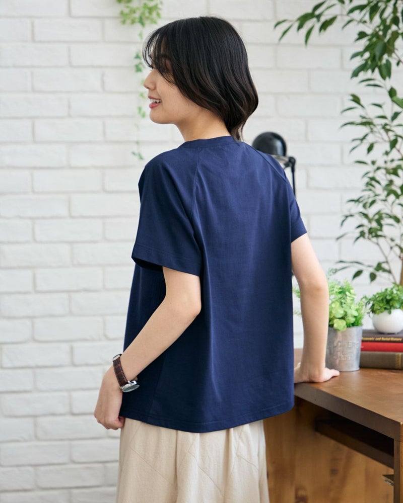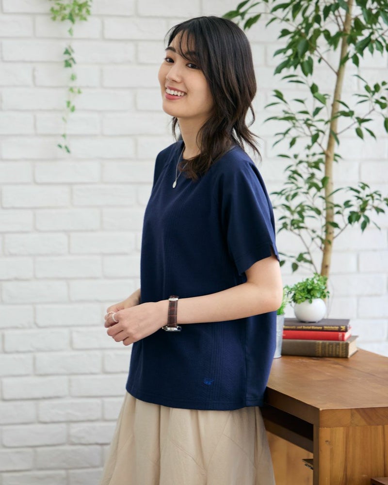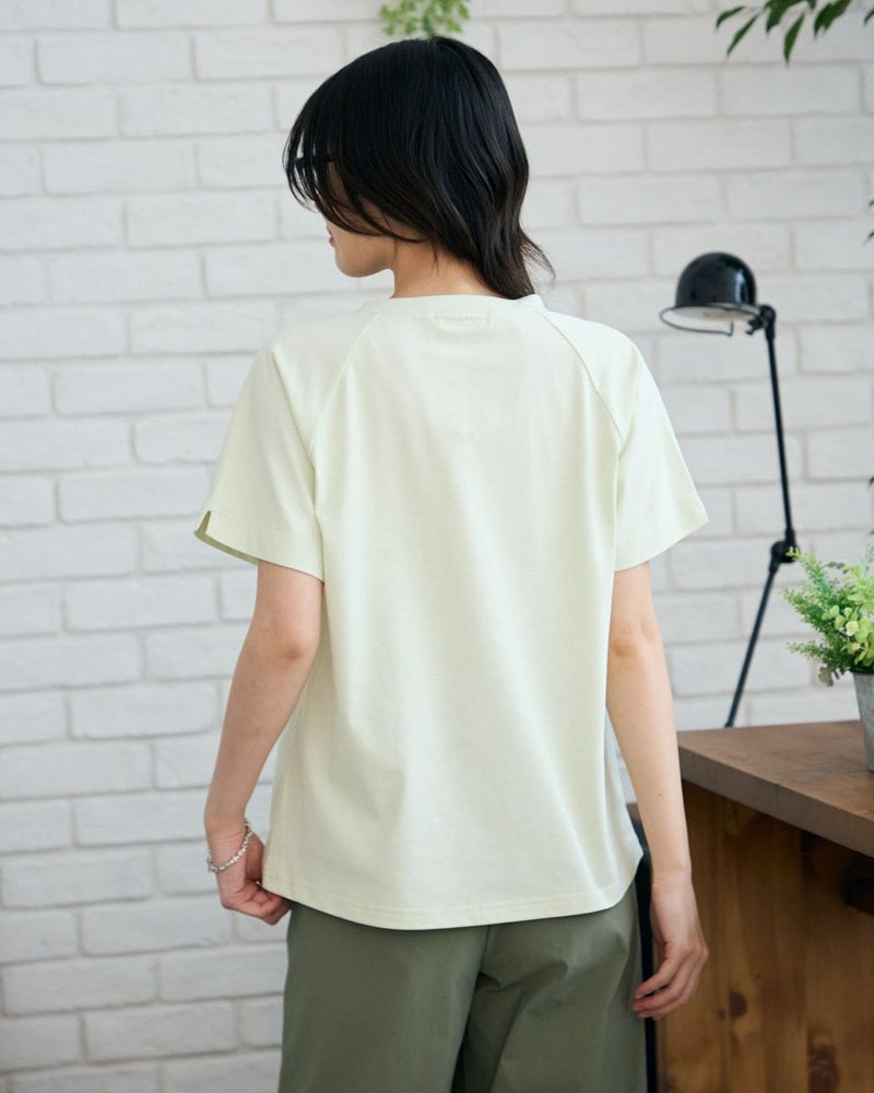 正面にジャカード素材を切り替えたTシャツです。袖のラインをラグランスリーブにして異素材の組み合わせをより活かせるようなデザインにしました。裾にクマのワンポイント刺繍つき。 モデル身長: 166 cm 着用サイズ: M サイズ Golden Bear WOMEN カットソー (WOMEN) 【着用アイテム】467R4701 ガウチョパンツ 467R4703 スカート 468R3760 ストレートパンツ 468R4050 プリントストール