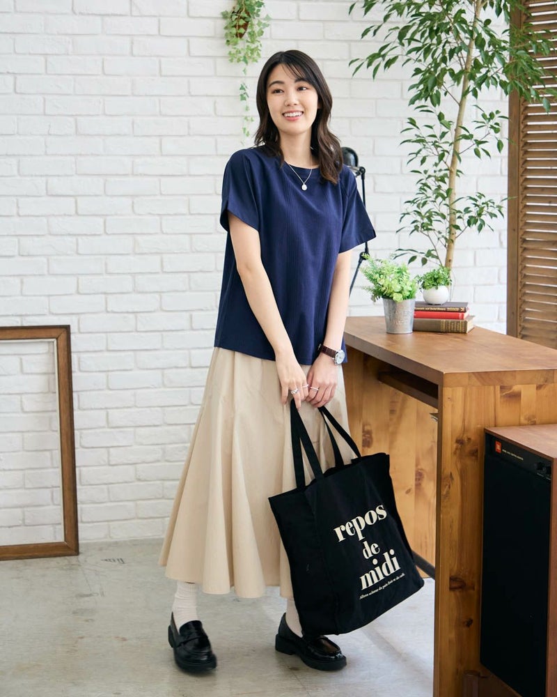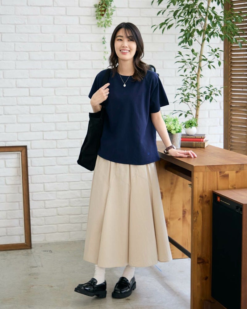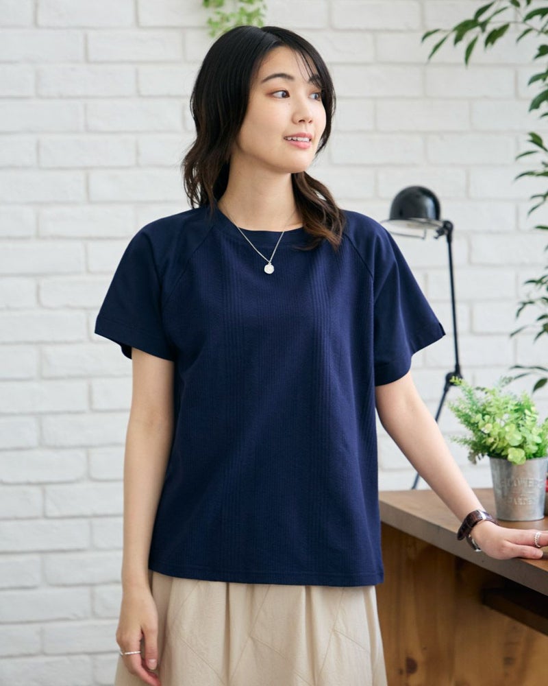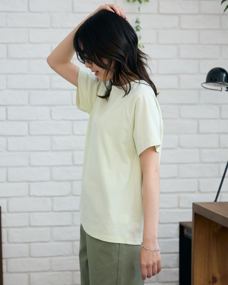 正面にジャカード素材を切り替えたTシャツです。袖のラインをラグランスリーブにして異素材の組み合わせをより活かせるようなデザインにしました。裾にクマのワンポイント刺繍つき。 モデル身長: 166 cm 着用サイズ: M サイズ Golden Bear WOMEN カットソー (WOMEN) 【着用アイテム】467R4701 ガウチョパンツ 467R4703 スカート 468R3760 ストレートパンツ 468R4050 プリントストール