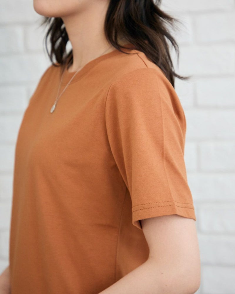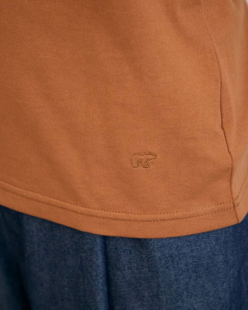 タイト目なシルエットで作ったシンプルTシャツです。袖周りもコンパクトなのでインナーとしてはもちろん、ボトムインしやすい丈なのでボリュームのあるスカートとの相性が良いアイテムです。裾にワンポイント刺しゅう、襟裏にオリジナルロゴプリントが入っています。 モデル身長: 166 cm 着用サイズ: M サイズ Golden Bear WOMEN カットソー (WOMEN) 【着用アイテム】467R4330 フレンチリネンシャツ 467R4702 テーパードパンツ 468R3760 ストレートパンツ
