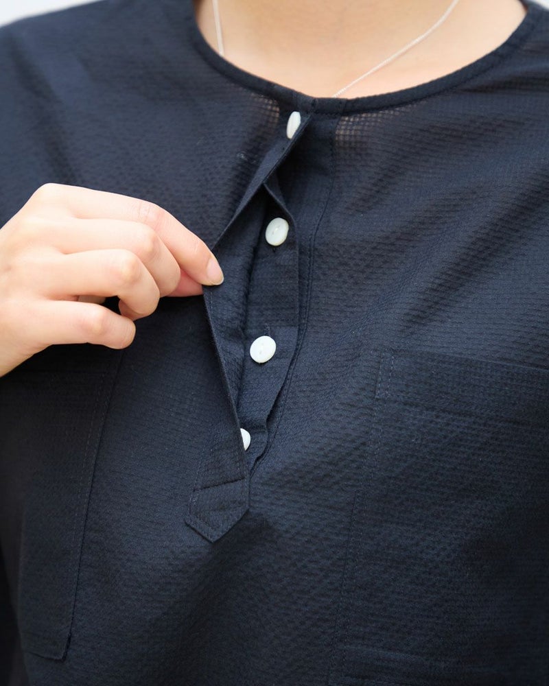 オーガニックコットンを使用し細かなチェック柄を織で表現した生地を使用しています。左右のポケットがこなれ感があり1枚で着映えします。裾のドロストでスタイリングに変化をつけられます。 モデル身長: 167 cm 着用サイズ: M サイズ Golden Bear WOMEN ブラウス (WOMEN) 【着用アイテム】467R6710 テーパードパンツ 467R7720 ガウチョパンツ