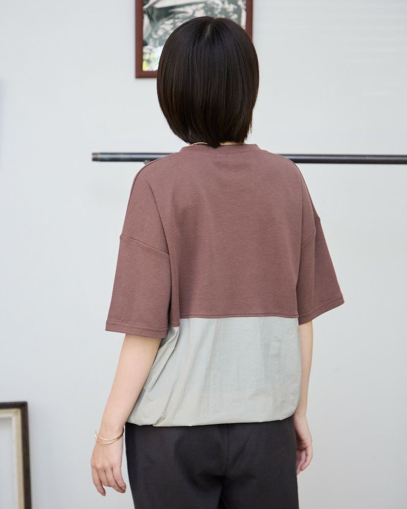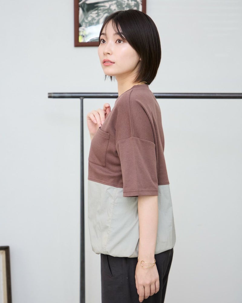裾にワッシャー素材を切り替えたドロストデザインTシャツです。裾の紐でシルエットをアレンジできるスポーティなアイテムです。 モデル身長: 162 cm 着用サイズ: M サイズ Golden Bear WOMEN カットソー (WOMEN) 【着用アイテム】467R6701 レーヨンリネンストレッチパンツ