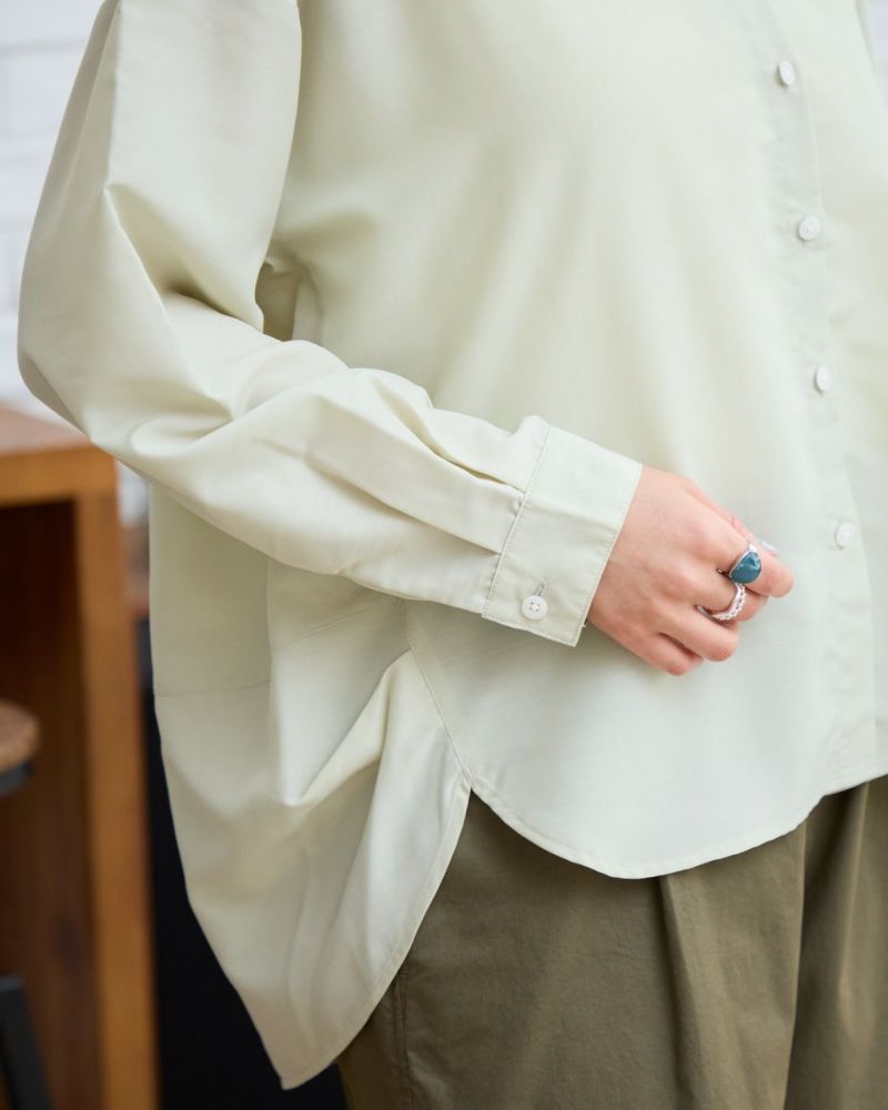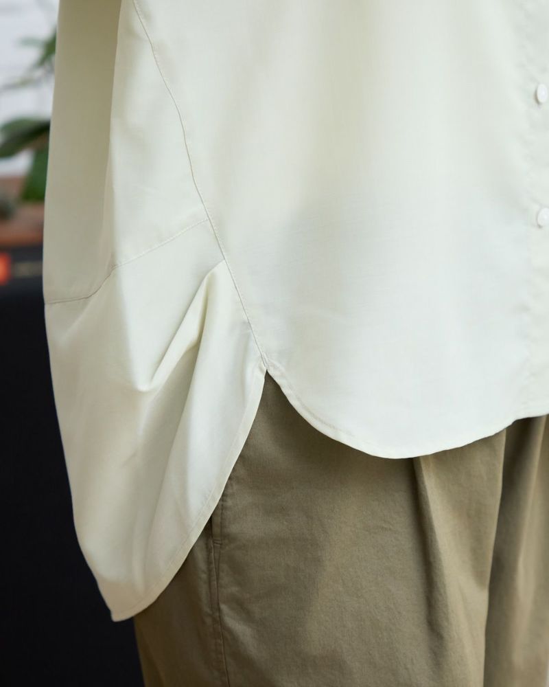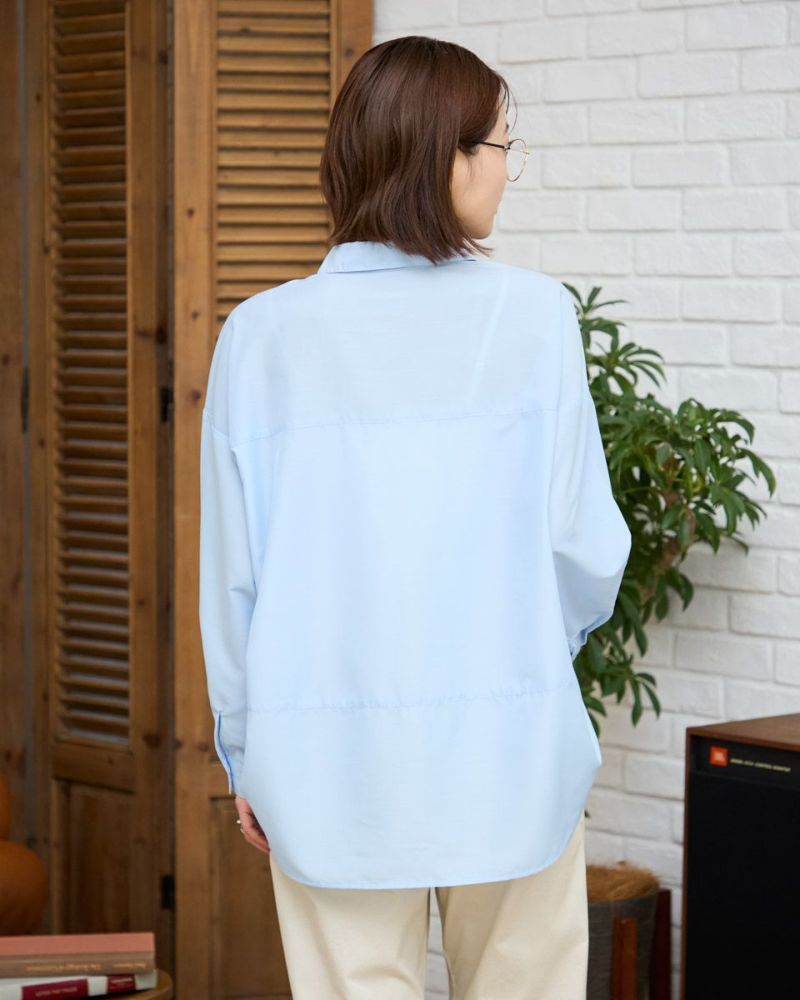 軽やかなブルーとグリーンの2色で展開する、爽やかなUVカットシャツです。紫外線対策とスタイルアップを両立させたアイテム。UVカット機能付きのサラリとした肌触りの素材を使用し、日差しの強い日でも快適に。屋外でもしっかりと肌を守ります。裾はさりげなく個性を演出する変形シルエット。動きのあるラインが抜け感をプラスし、どんなボトムスとも好相性です。 モデル身長: 167 cm 着用サイズ: M サイズ Golden Bear Ladies' ブラウス (Ladies') 【着用アイテム】467R7401 タンクトップ 467R7701 ベイカーパンツ 467R8011 トートバッグ