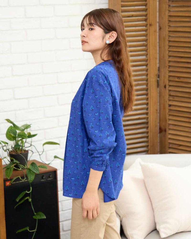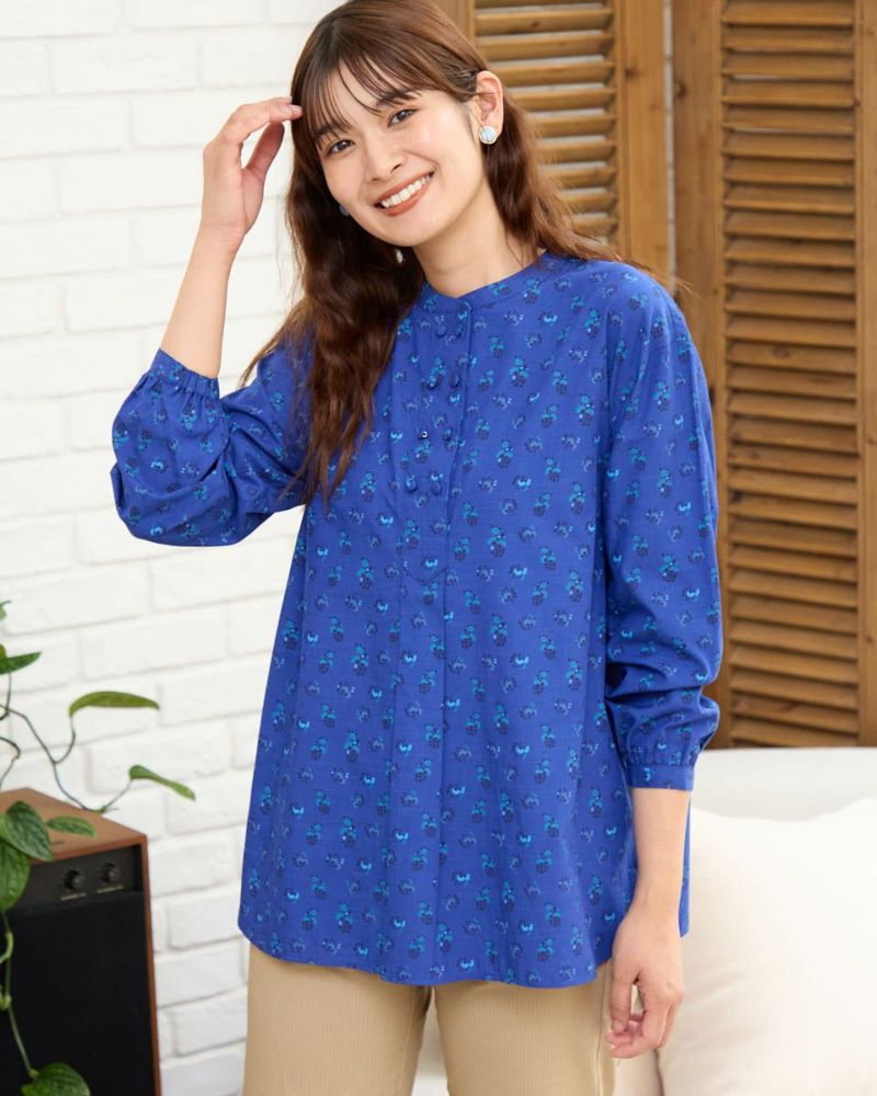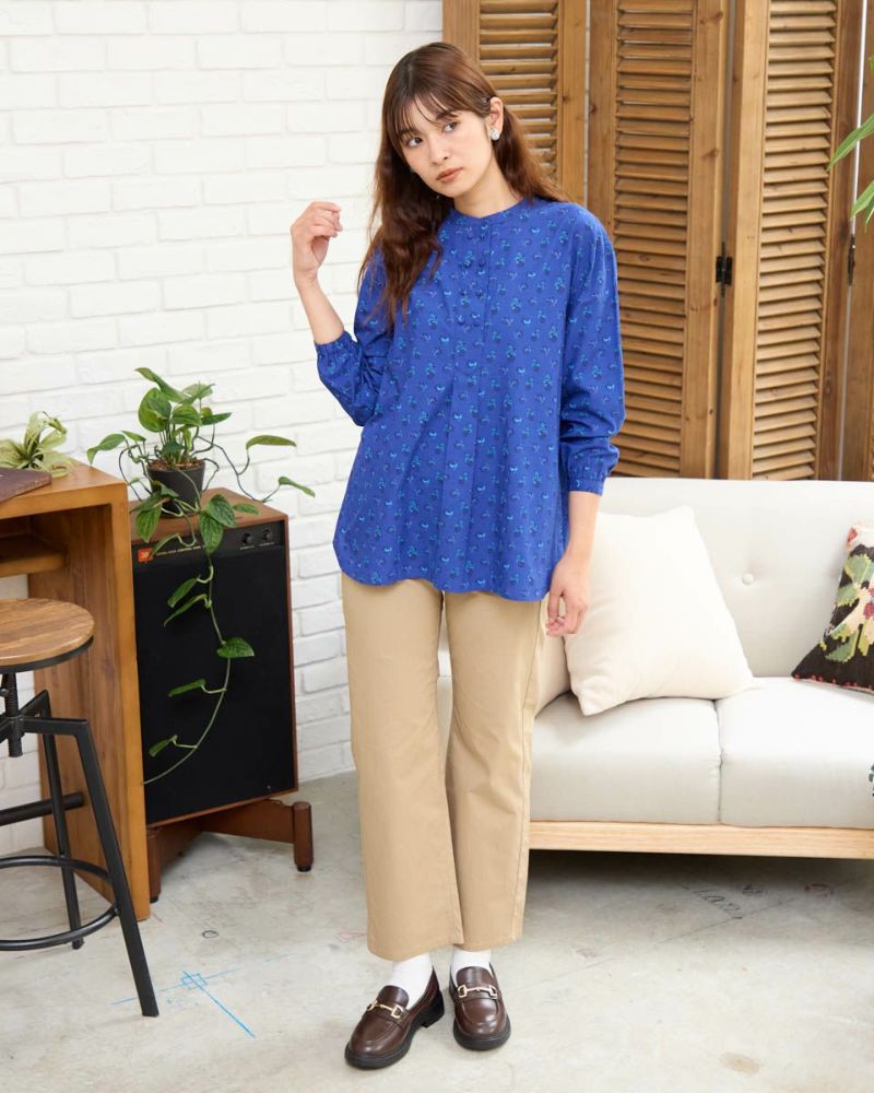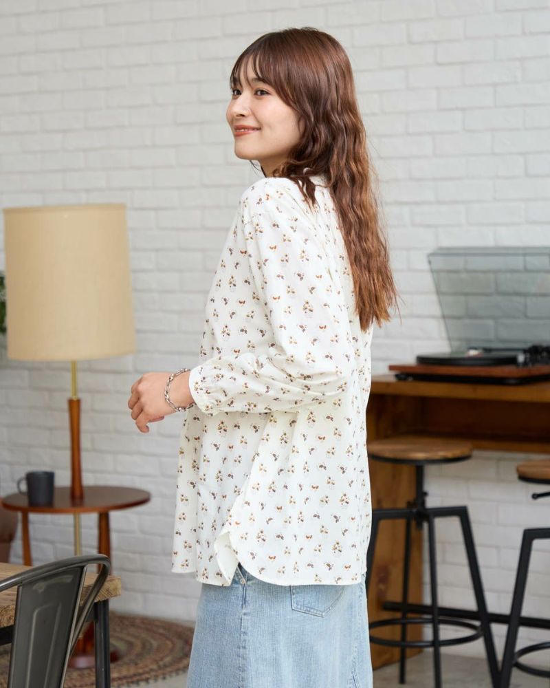小花柄プリントブラウスです。前たてに並んだ釦がアクセント。デニムやワイドパンツと合わせれば甘さを抑えた大人スタイルで着用できます。 モデル身長: 168 cm 着用サイズ: M サイズ Golden Bear Ladies' ブラウス (Ladies') 【着用アイテム】467R8712 ストレートパンツ