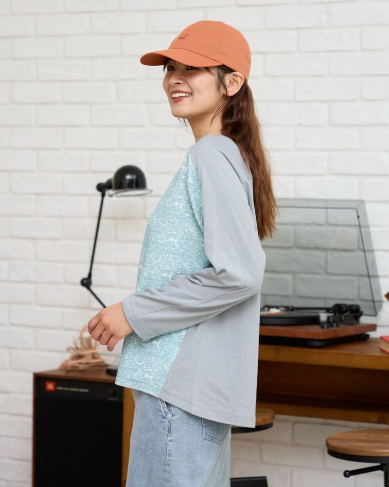 柔らかなパイル素材を使った切り替えデザインの長袖Tシャツ。夏の暑さがやわらぎ始める季節にぴったりの軽やかで快適な着心地です。表情のある素材感で、デイリーコーデにさっと取り入れやすい一枚です。