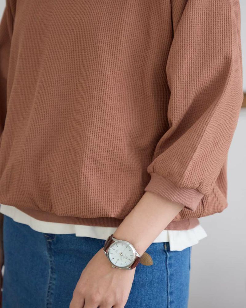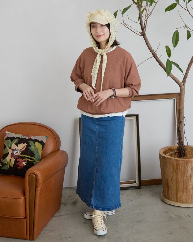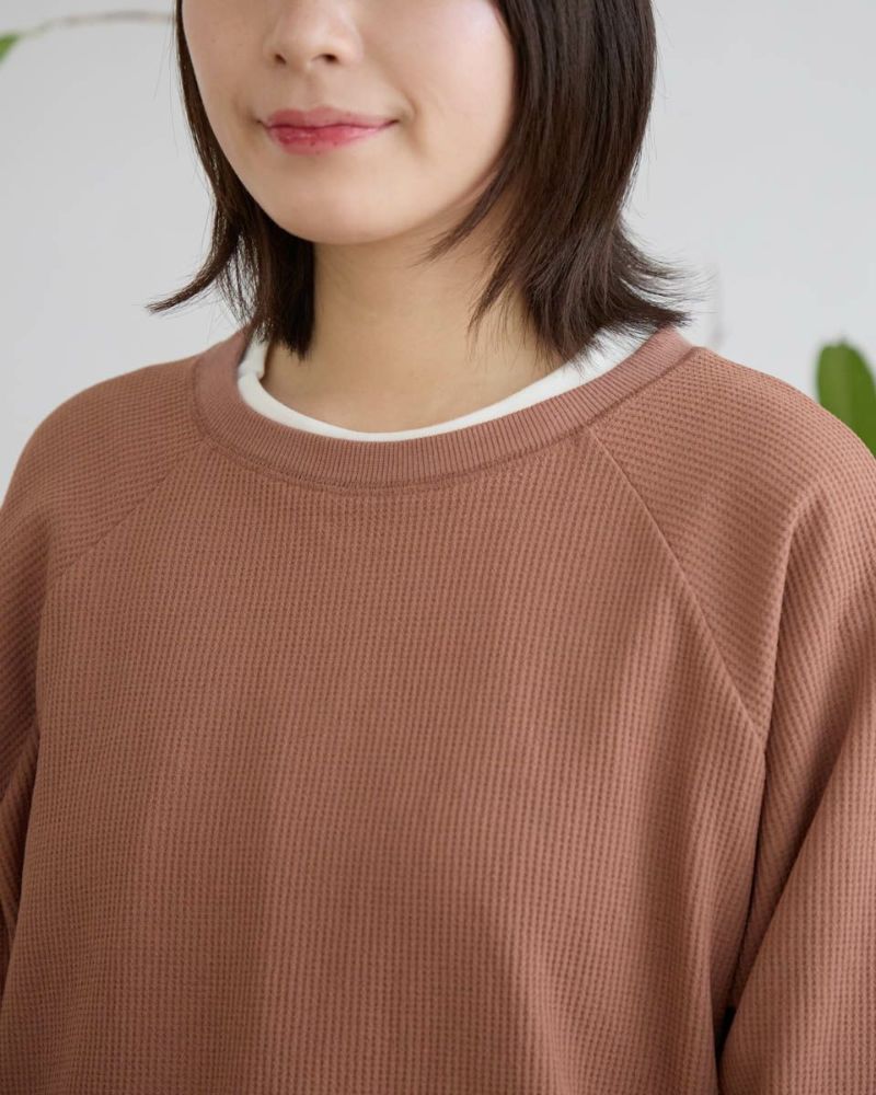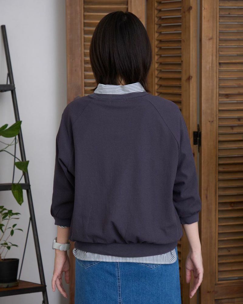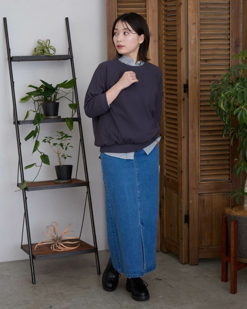 軽くてさらっとしたドライタッチのワッフル素材のTシャツ。5分袖とゆったりしたボリュームシルエットで、動きやすくリラックスした着心地です。肌離れが良く、汗ばむ季節でも快適に過ごせる一枚。 モデル身長: 162 cm 着用サイズ: M サイズ Golden Bear Ladies' カットソー (Ladies') 【着用アイテム】467RC712 デニムAラインスカート 467R8010 花柄ストール