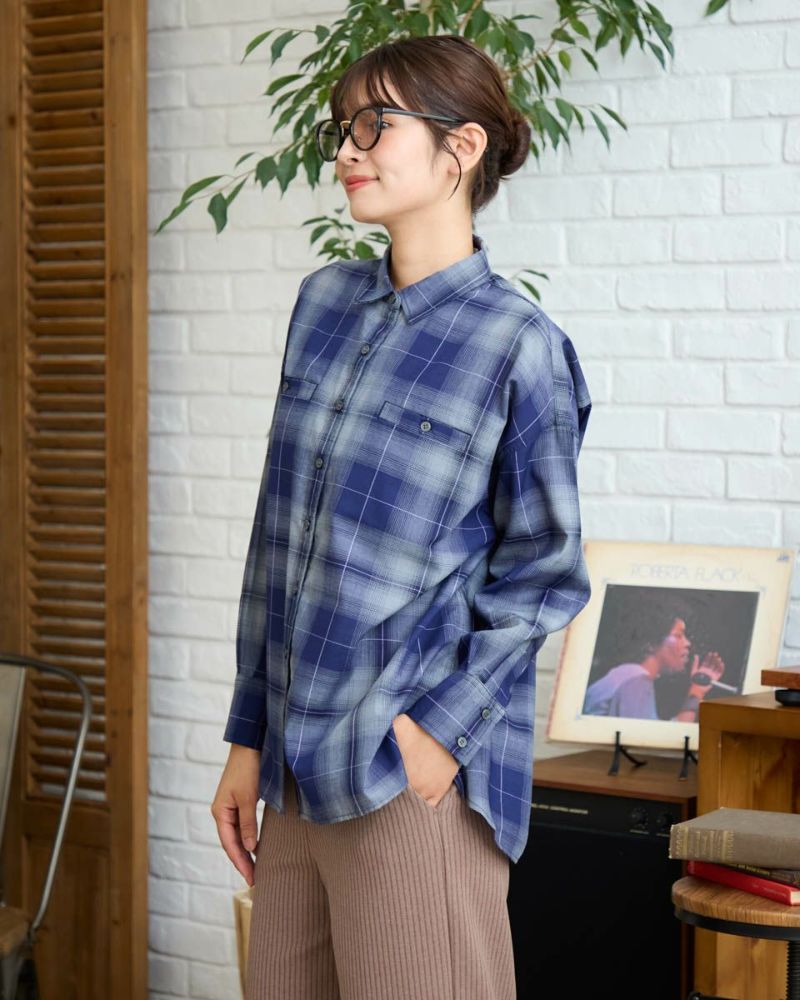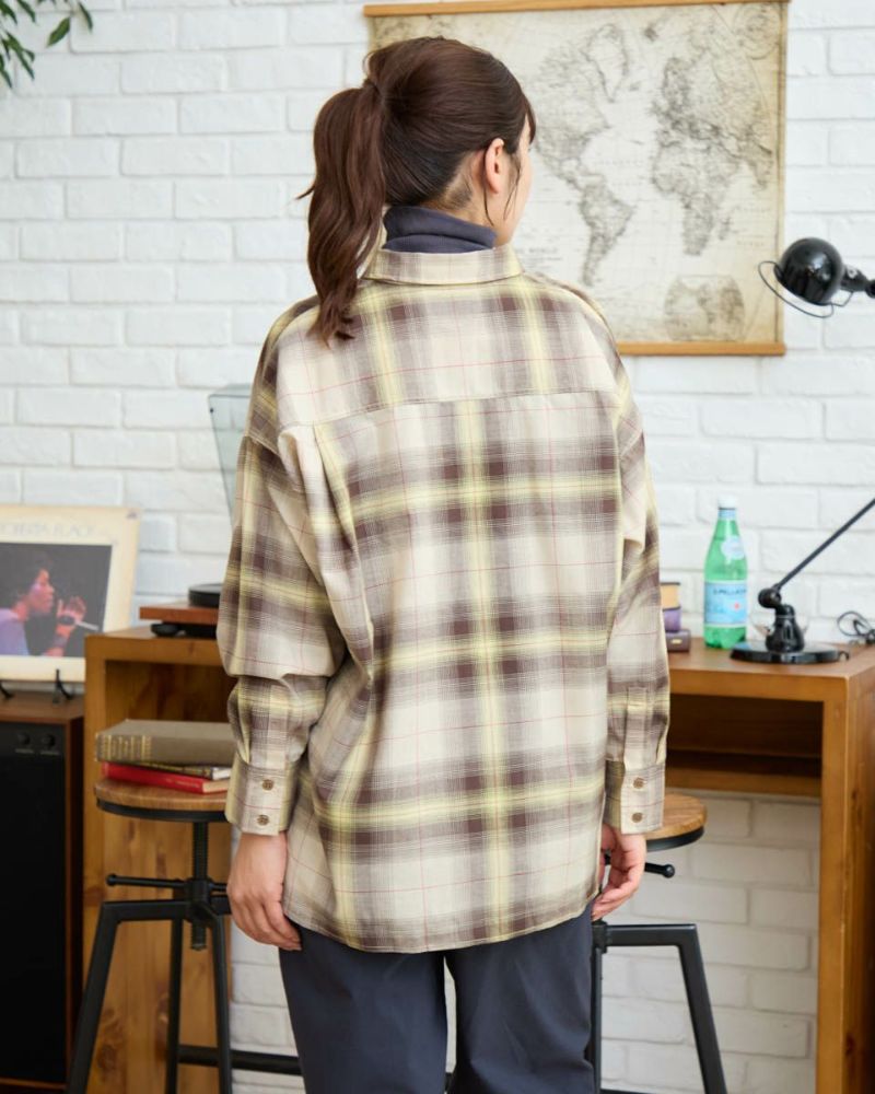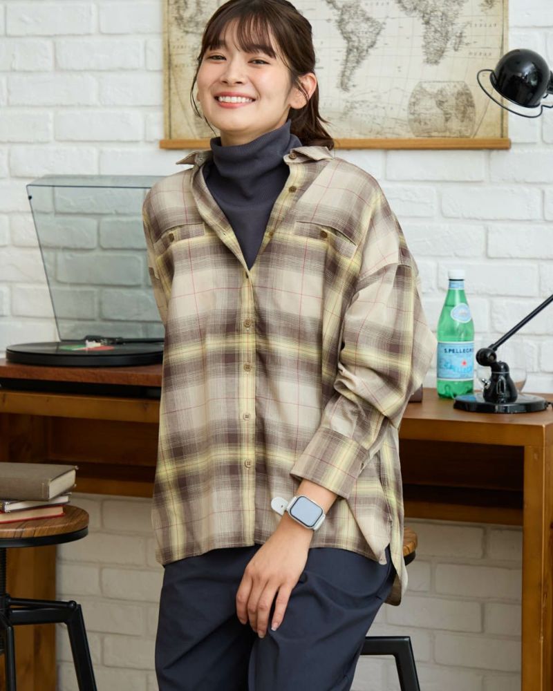にじむような濃淡が美しいオンブレチェック柄をあしらった、ウール混のシャツ羽織り。軽やかな着心地で、季節の変わり目にさっと羽織るのにぴったりな一枚です。柔らかな表情を引き立てるブラウン系と、クールな印象のブルー系の2色をご用意。ほどよくゆとりのあるシルエットで、カジュアルからきれいめまで幅広いスタイリングに馴染みます。