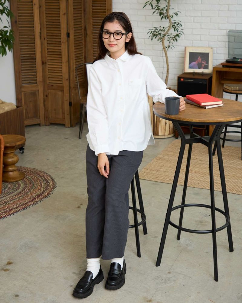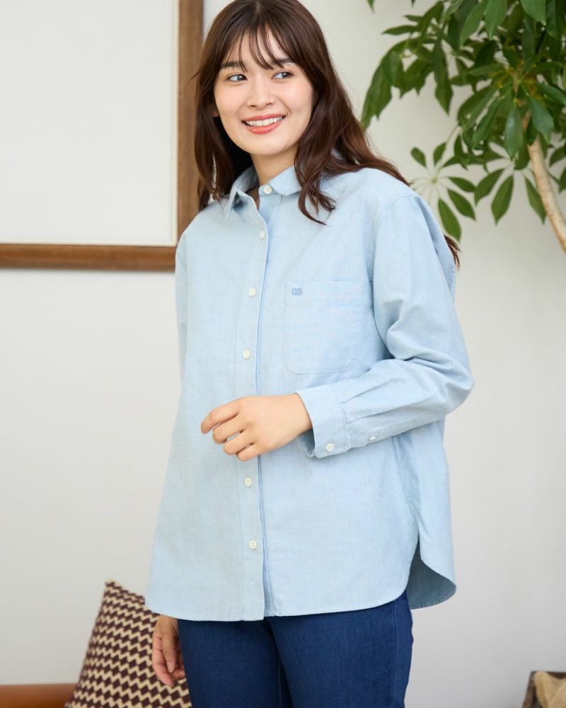 柔らかなカラーリングのオックス素材のシャツです。重くなりがちな秋冬のコーディネートのアクセントになります。襟と前たてにステッチを入れず堅苦しくならないように仕上げました。さりげないGB刺繍もポイントです。 モデル身長: 168 cm 着用サイズ: M サイズ Golden Bear Ladies' ブラウス (Ladies') メンズサイズはこちら 家族コーディネートアイテムはこちら 【着用アイテム】467RC703 超ストレッチパウダーデニム 467RC704 ガウチョパンツ 468RC751 デニムスカート 467RC002 2WAYバッグ
