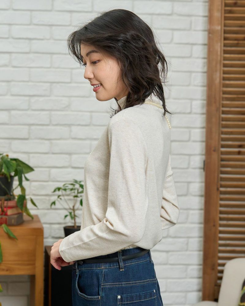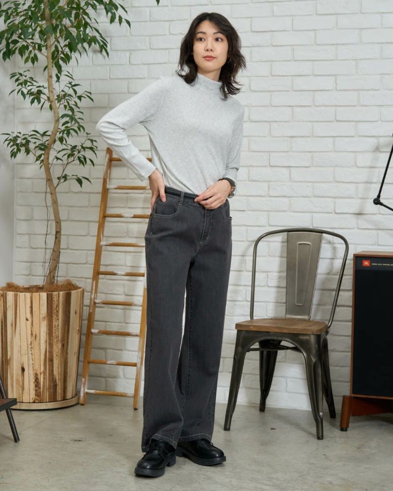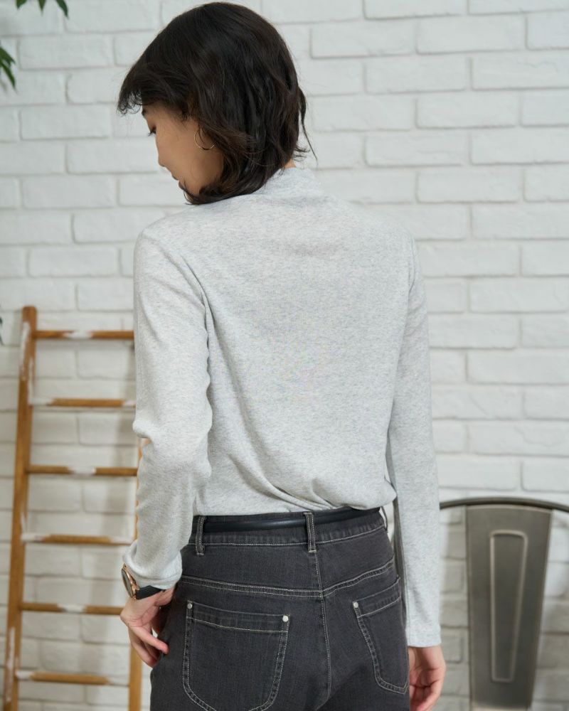 さりげなく光るラメ糸を織り込んだフライス素材のハイネックインナー。柔らかく伸びの良い生地で、肌に心地よくフィットします。控えめなラメが、シンプルなスタイリングに上品なアクセントをプラス。インナーとしての使いやすさにこだわった一枚で、レイヤードのポイント使いに最適です。