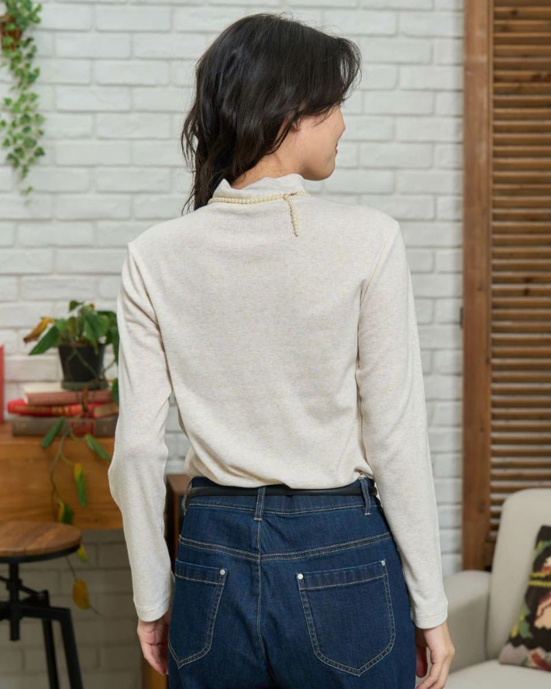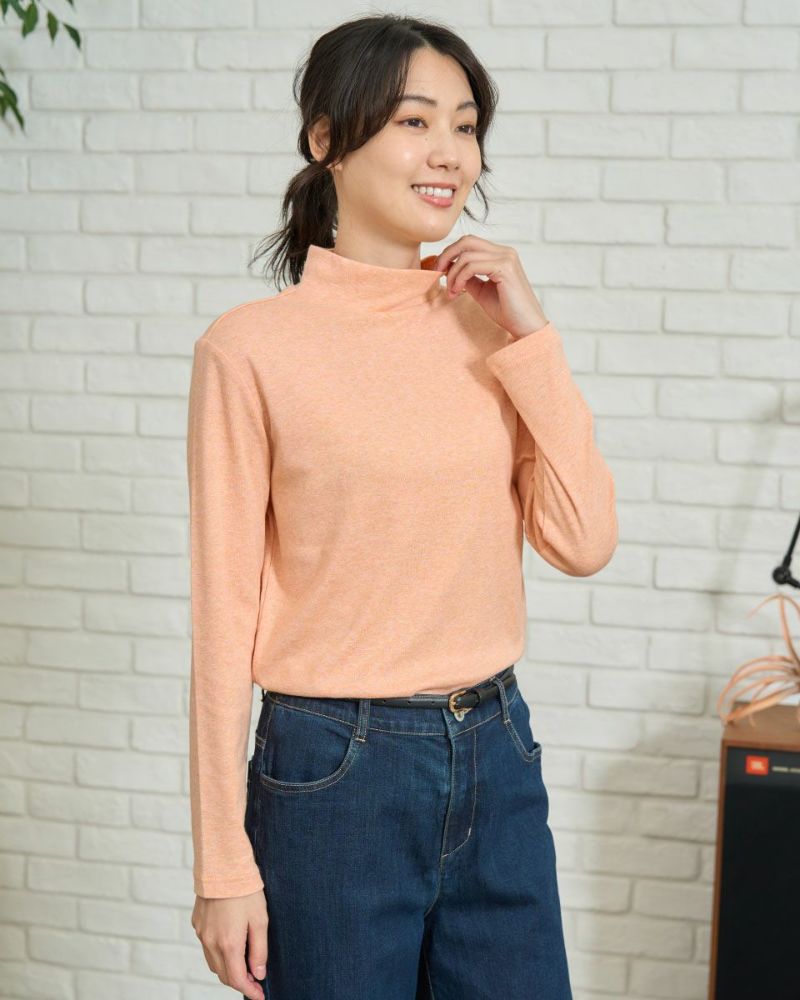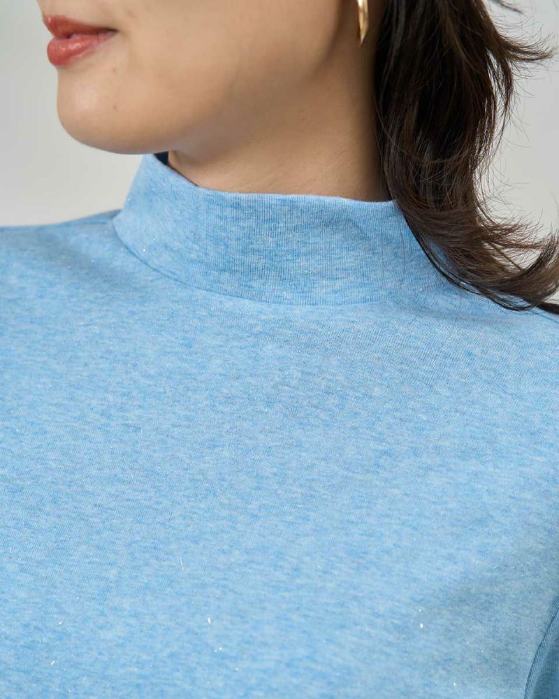 さりげなく光るラメ糸を織り込んだフライス素材のハイネックインナー。柔らかく伸びの良い生地で、肌に心地よくフィットします。控えめなラメが、シンプルなスタイリングに上品なアクセントをプラス。インナーとしての使いやすさにこだわった一枚で、レイヤードのポイント使いに最適です。