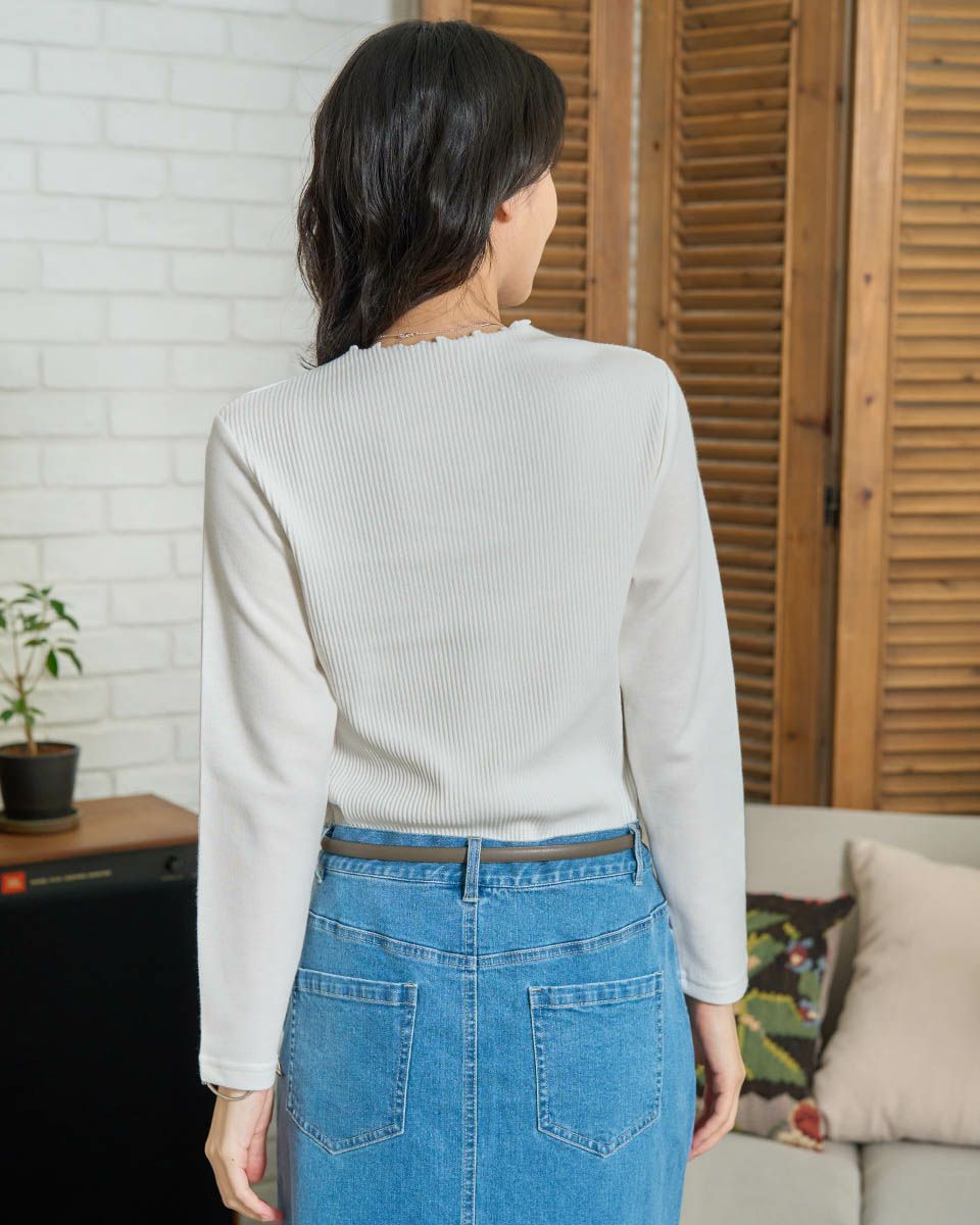正面にリブ素材を使用、後身頃と袖には程よい厚みのダンボール素材を使用したカットソー。リブ素材のカットソーですが体のラインが強調されるのを防ぎつつ、コーディネートを楽しめるアイテムにしています。襟は女性らしいボトルネックのメロー仕上げで、繊細なニュアンスをプラス。デイリーからオフィススタイルまで幅広く活躍します。 モデル身長: 166 cm 着用サイズ: M サイズ Golden Bear WOMEN カットソー (WOMEN) 同デザイン大きい(3L,4Lサイズ)はこちら 【着用アイテム】467RC712 デニムAラインスカート 468RC751 デニムスカート