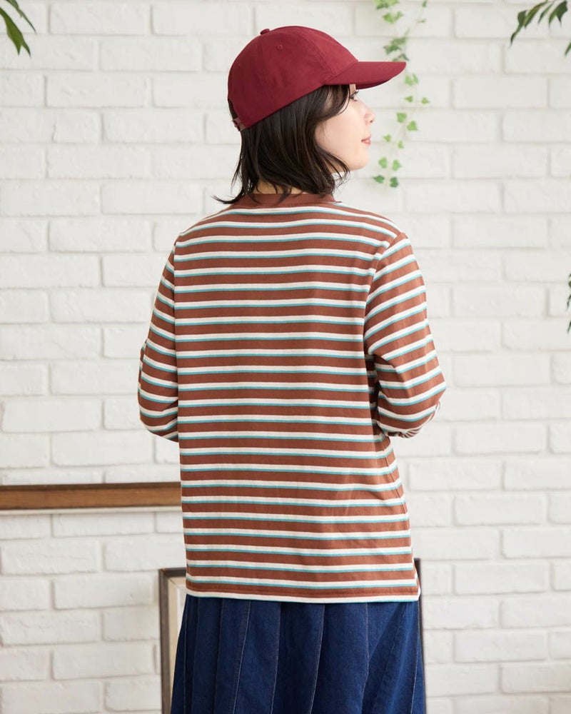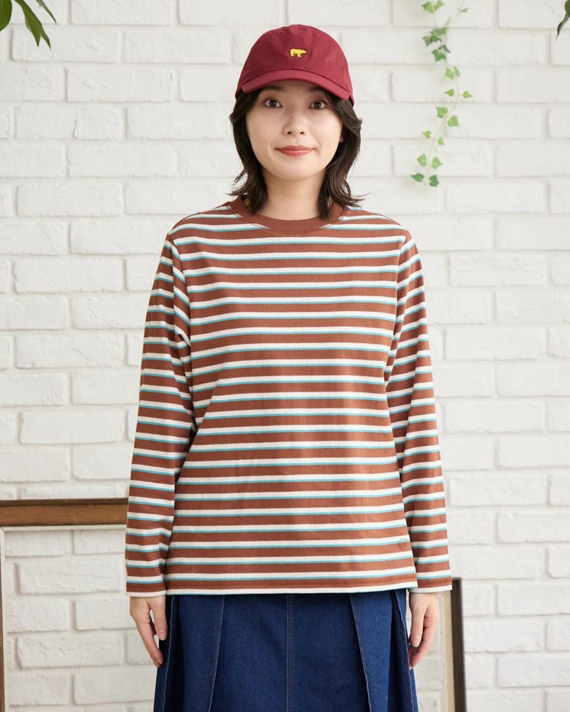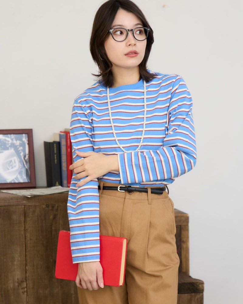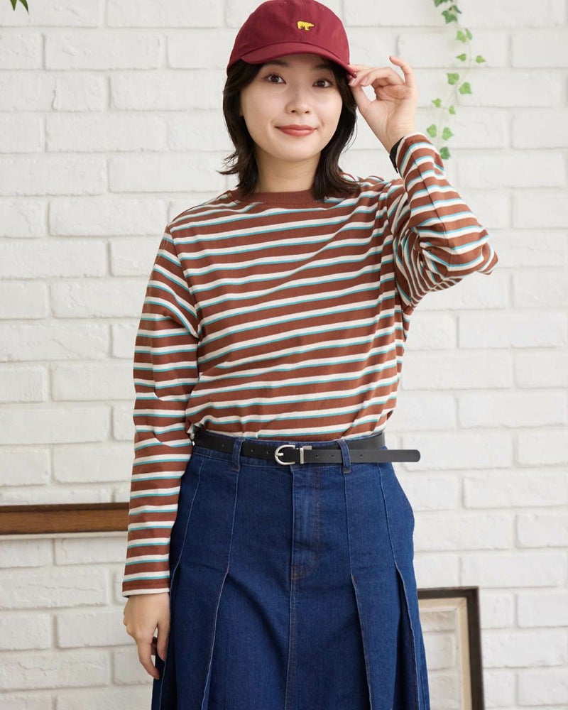 オーガニックコットン100%で仕立てた、肌にやさしいボーダーTシャツ。トレンド感のあるマルチボーダー柄が、ベーシックなインナーコーディネートをさりげなく華やかに彩ります。一枚でも、ニットやスウェットの下に重ねてもアクセントになるデザインで、着こなしの幅が広がる一枚。ナチュラルな着心地でデイリーユースにぴったりのアイテムです。