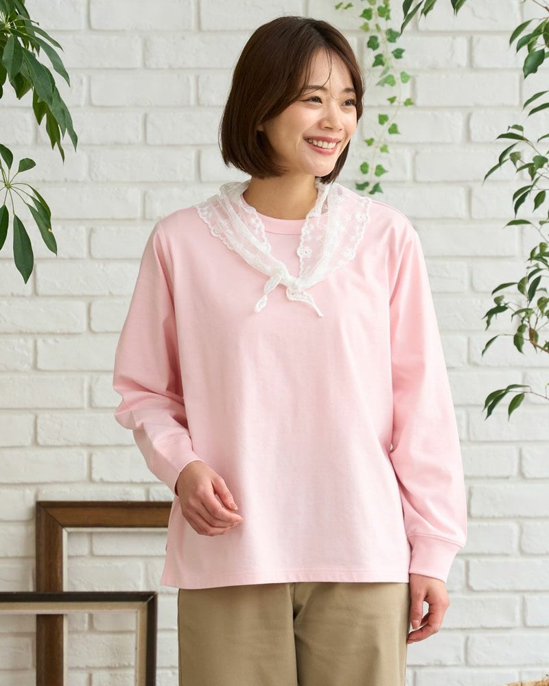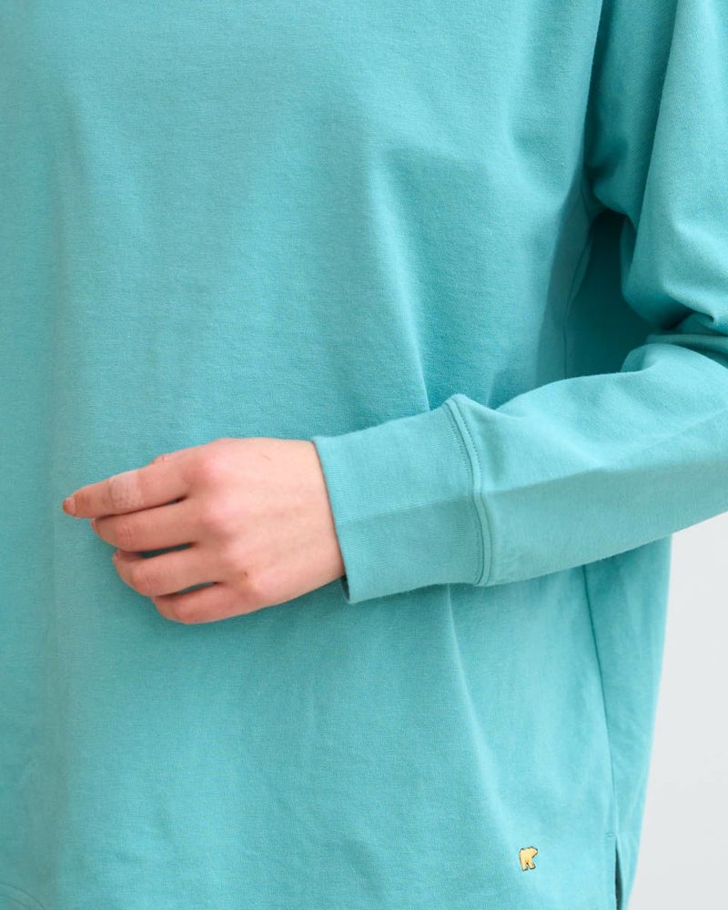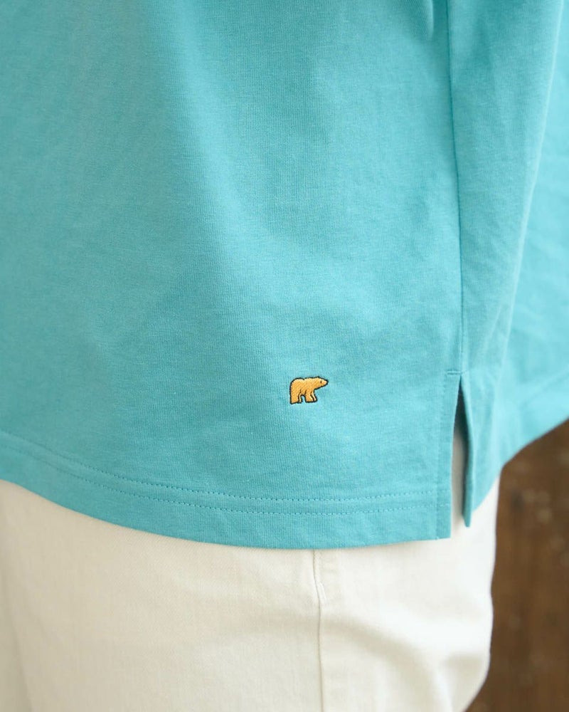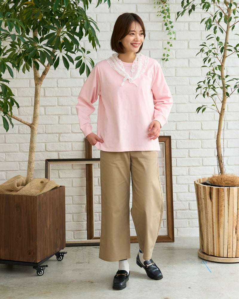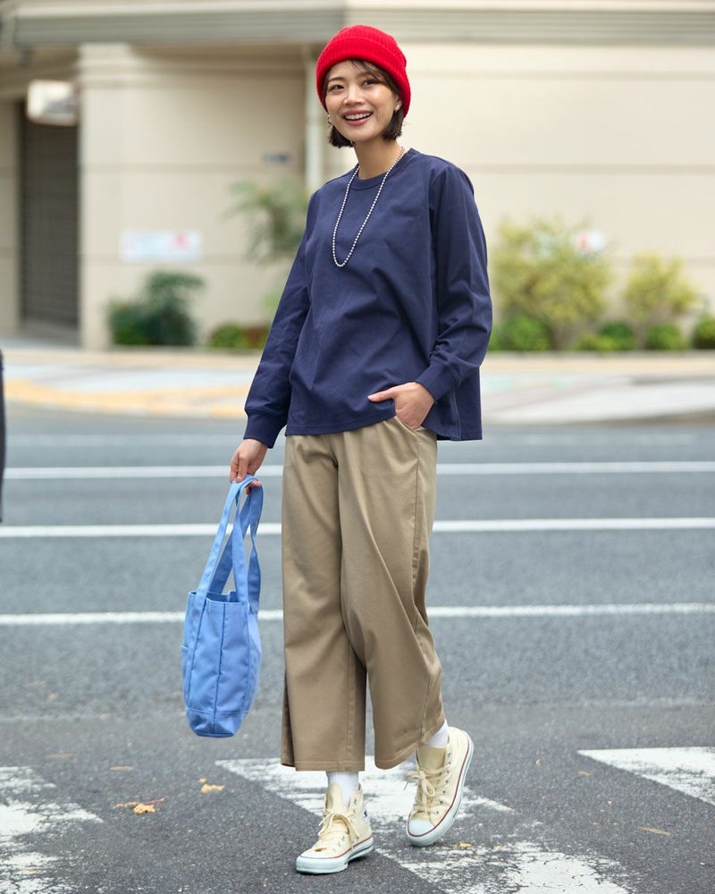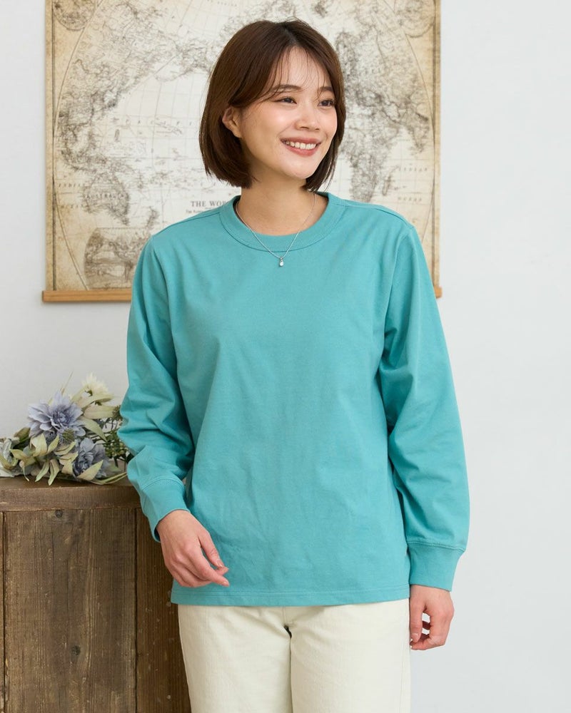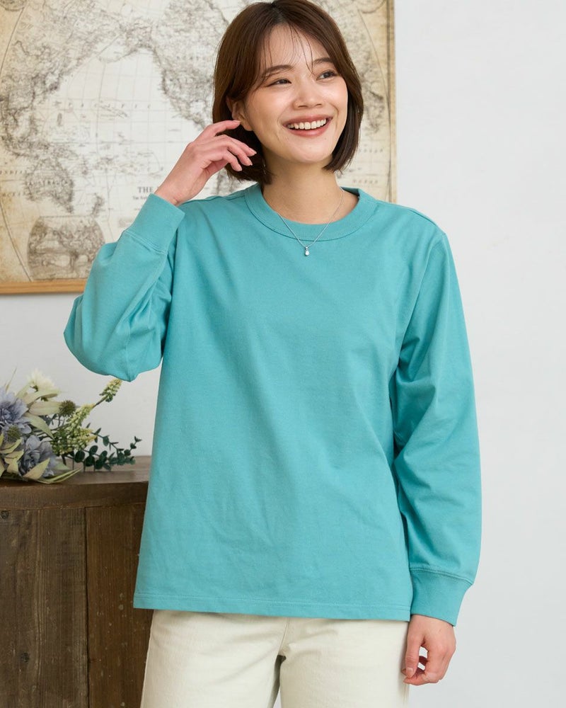 接触冷感・透け防止・吸水速乾性機能付き。滑らかな肌触りが特長のGB天竺を使用した長袖Tシャツ。襟ぐりは強度のあるフライスを使用、バインダー始末にすることでヨレにくいのが特徴です。裾にゴールデンベア刺繍付き。インナーにも活躍する程よい分量感の長袖Tシャツです。 モデル身長: 167 cm 着用サイズ: M サイズ Golden Bear WOMEN カットソー (WOMEN) 【着用アイテム】467U1302 カジュアルチェックシャツ 467U1701 リブ付きガウチョパンツ 467U1703 ツイルストレートパンツ 467U1002 JACKベアトートバッグ