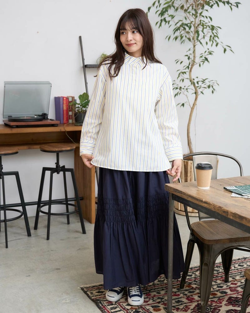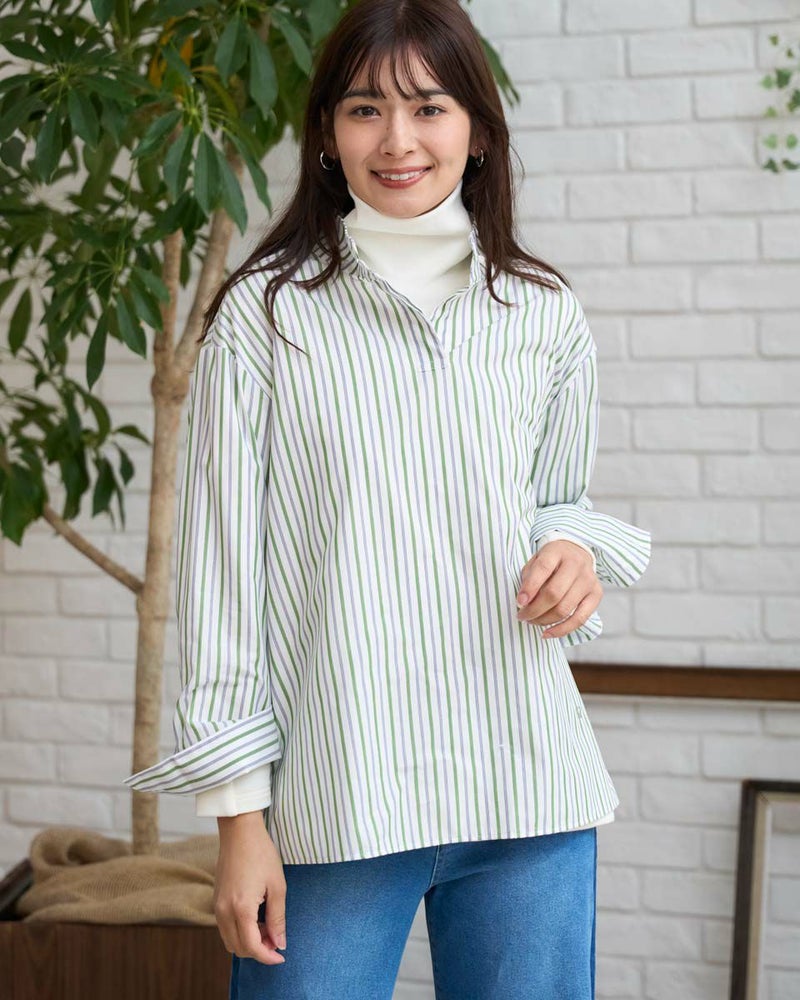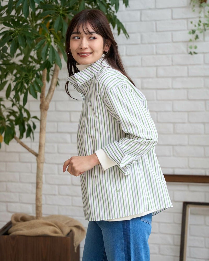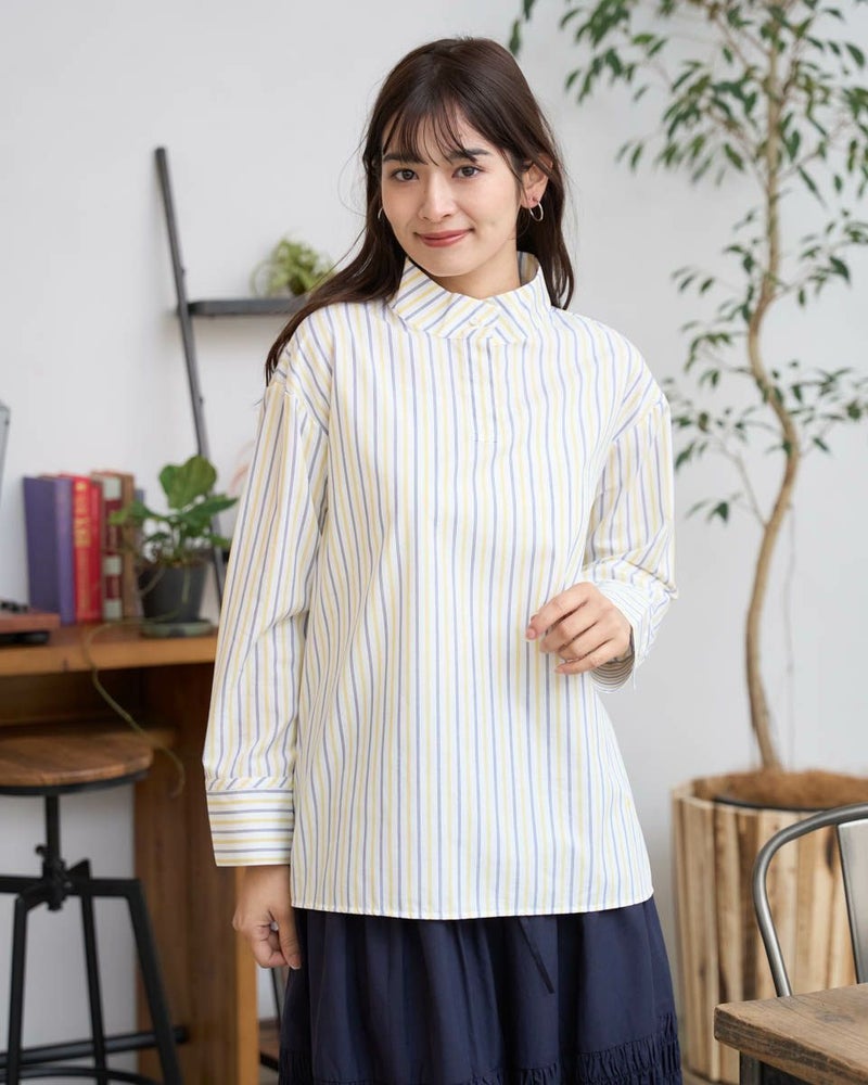 マルチなストライプ柄がトラッド感のあるブラウスです。シャープな印象のスタンドカラーで程よいハリ感のある素材がシーンを選ばず着用可能。 モデル身長: 168 cm 着用サイズ: M サイズ Golden Bear WOMEN ブラウス (WOMEN) 同デザイン大きい(3L,4Lサイズ)はこちら メンズサイズはこちら 家族コーディネートアイテムはこちら 【着用アイテム】467U2702 デニムラインパンツ 467U2703 シャーリングスカート
