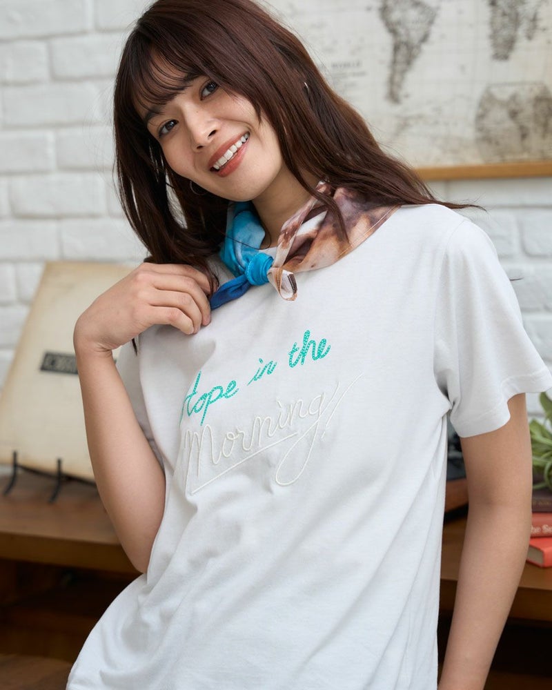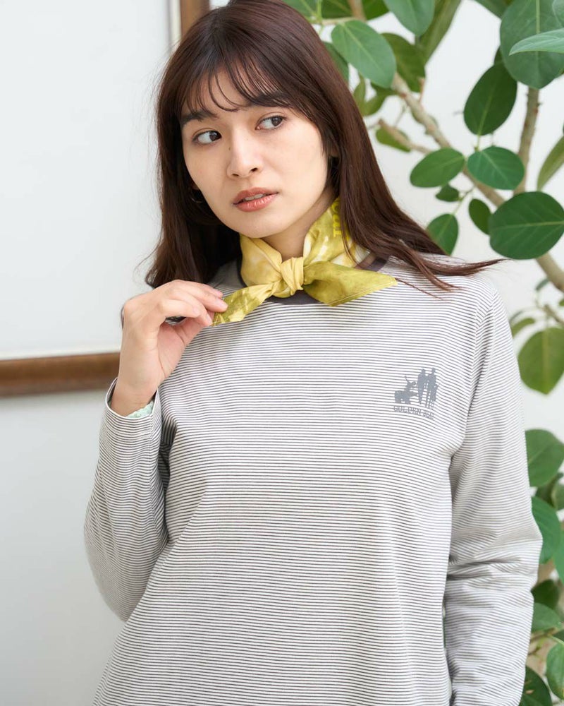 ビーチにたたずむシルエットファミリーモチーフを、爽やかなカラーリングで表現しました。扱いやすいサイズ感で首元はもちろん様々なアレンジを楽しめます。 Golden Bear WOMEN アクセサリ (WOMEN) 【着用アイテム】467U3402 プリントTシャツ 467U3433 シルエットベア長袖Tシャツ