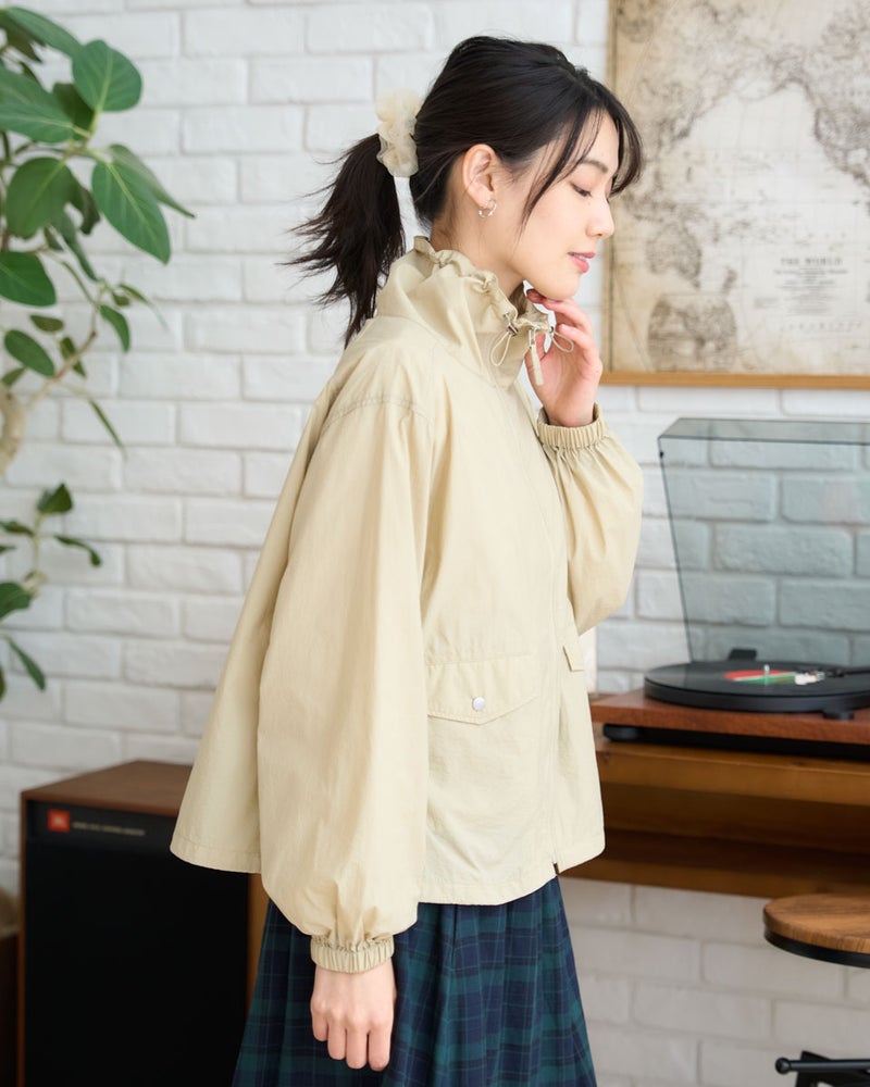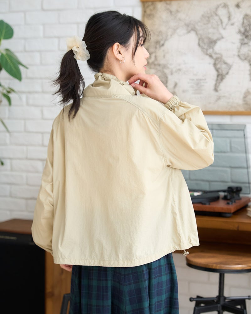 アレンジの効くスタンドカラーデザインのショート丈ブルゾンです。シワが気にならない軽いナイロン素材でコンパクトに持ち運べるのもポイント。合わせるアイテムを選ばずデイリーに使える1枚です。 モデル身長: 166 cm 着用サイズ: M サイズ Golden Bear WOMEN アウター (WOMEN) 【着用アイテム】467U3601 オーガニックコットンベスト 467U3302 オーガニックコットンフードシャツ 467U4713 オーガニックWガーゼスカート