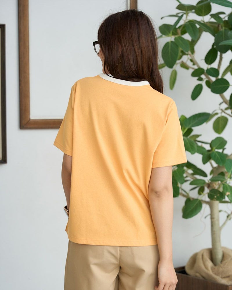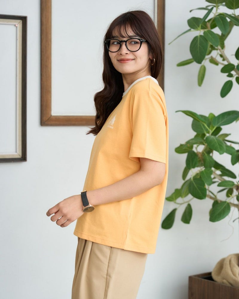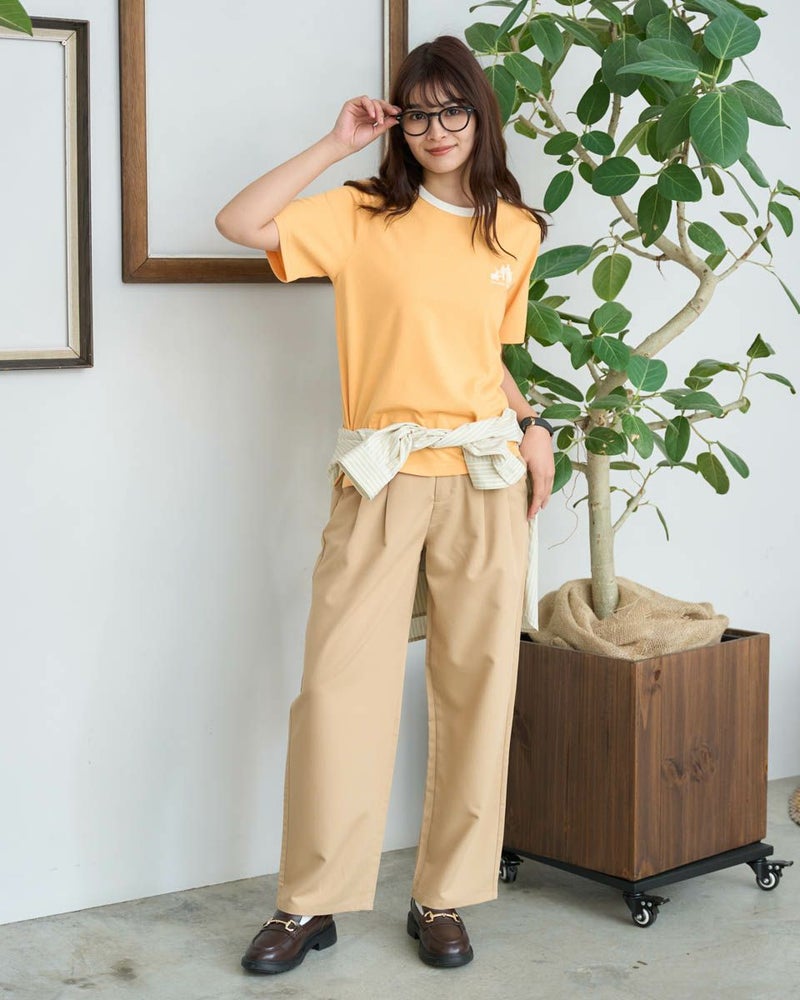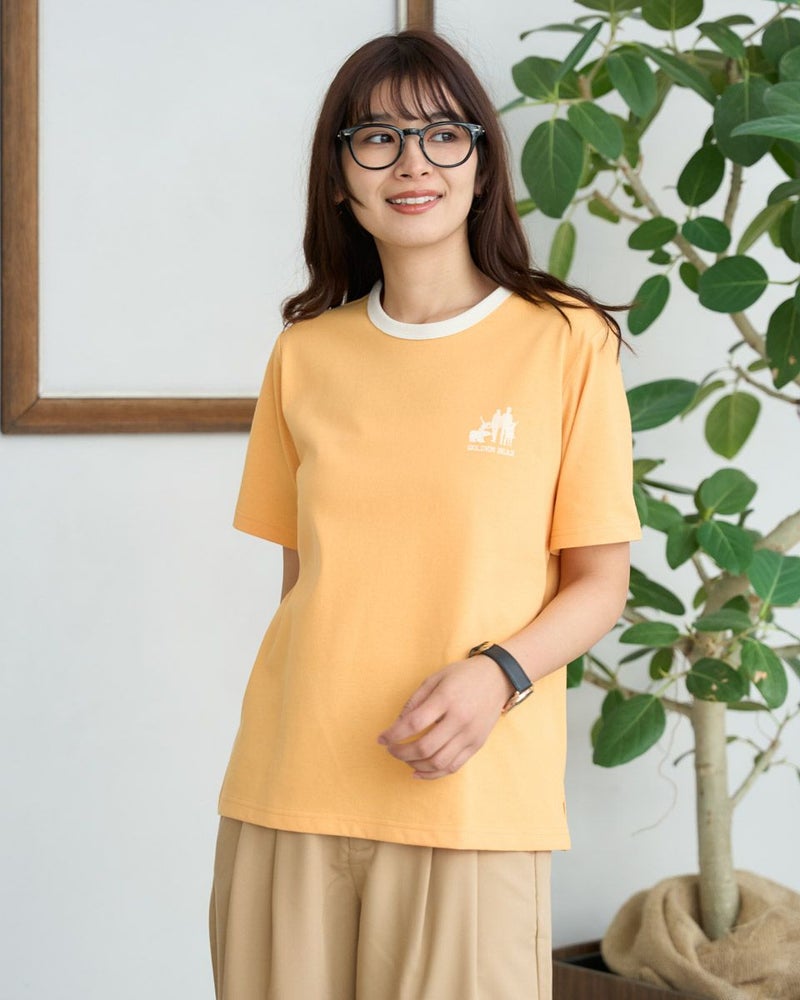 使いやすいベーシックな形のTシャツです。ドライタッチな風合いと程よい厚みがデイリーに使いやすいアイテムです。フロントにゴールデンベアらしいファミリープリントを入れました。 モデル身長: 168 cm 着用サイズ: M サイズ Golden Bear WOMEN カットソー (WOMEN) メンズサイズはこちら 家族コーディネートアイテムはこちら 【着用アイテム】467U3303 ストライプフリルシャツ 467U3711 ストレッチタックパンツ 467U3712 接触冷感デニムテーパードパンツ