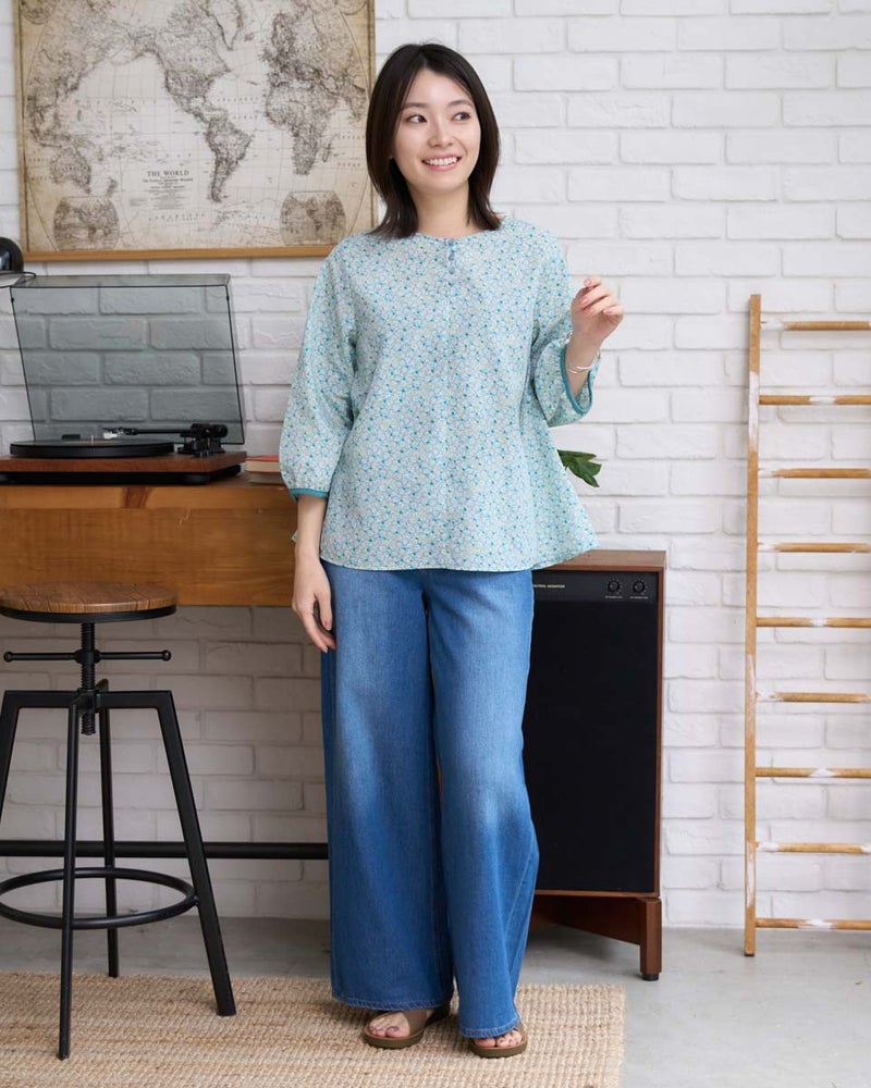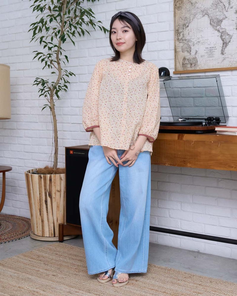 ウエストからのふんわりとした切り替えが、女性らしいシルエットを演出するペプラムブラウス。気になる腰回りを優しくカバーしつつ、高い位置での切り替えがスタイルをスッキリ見せてくれます。程よいハリ感のある素材が上品な印象を与え、細身のパンツと合わせるだけでスマートなお出かけスタイルが完成。日常のちょっとした仕草をエレガントに彩ってくれる一枚です。