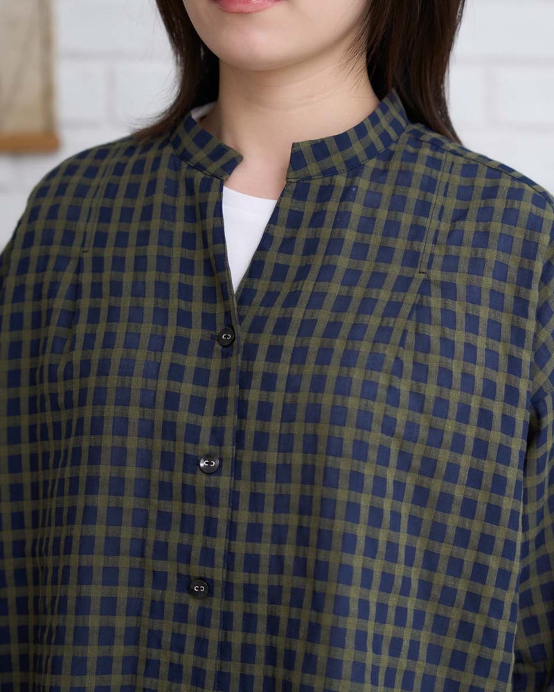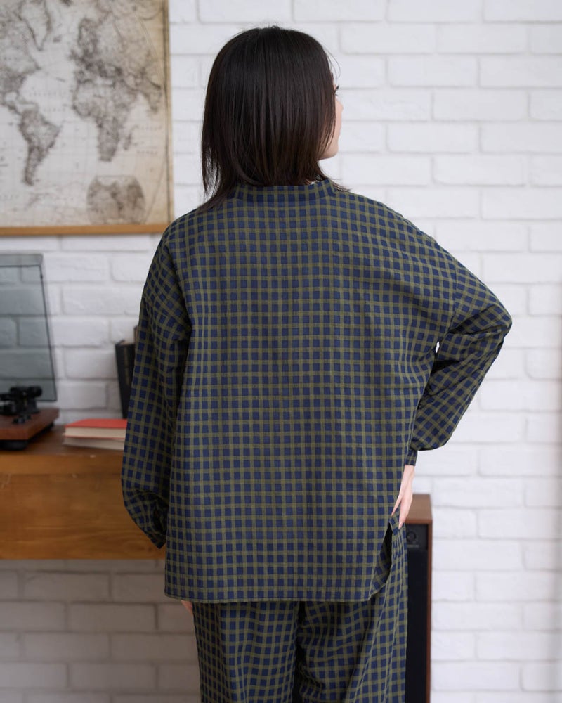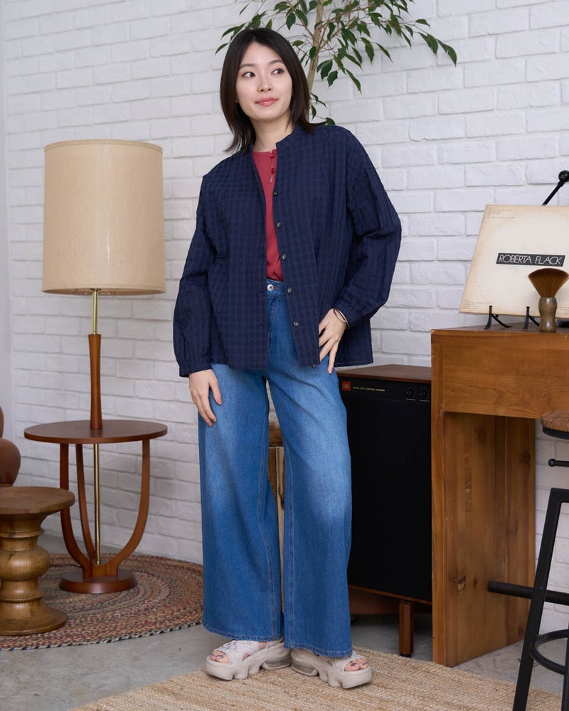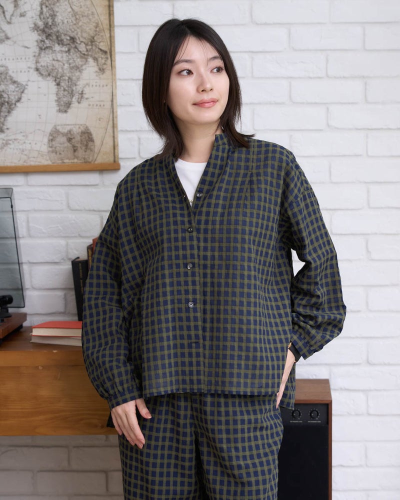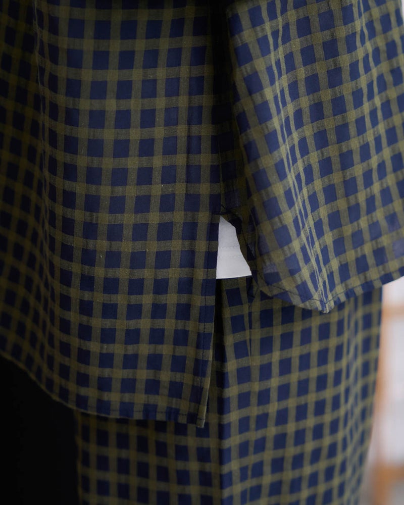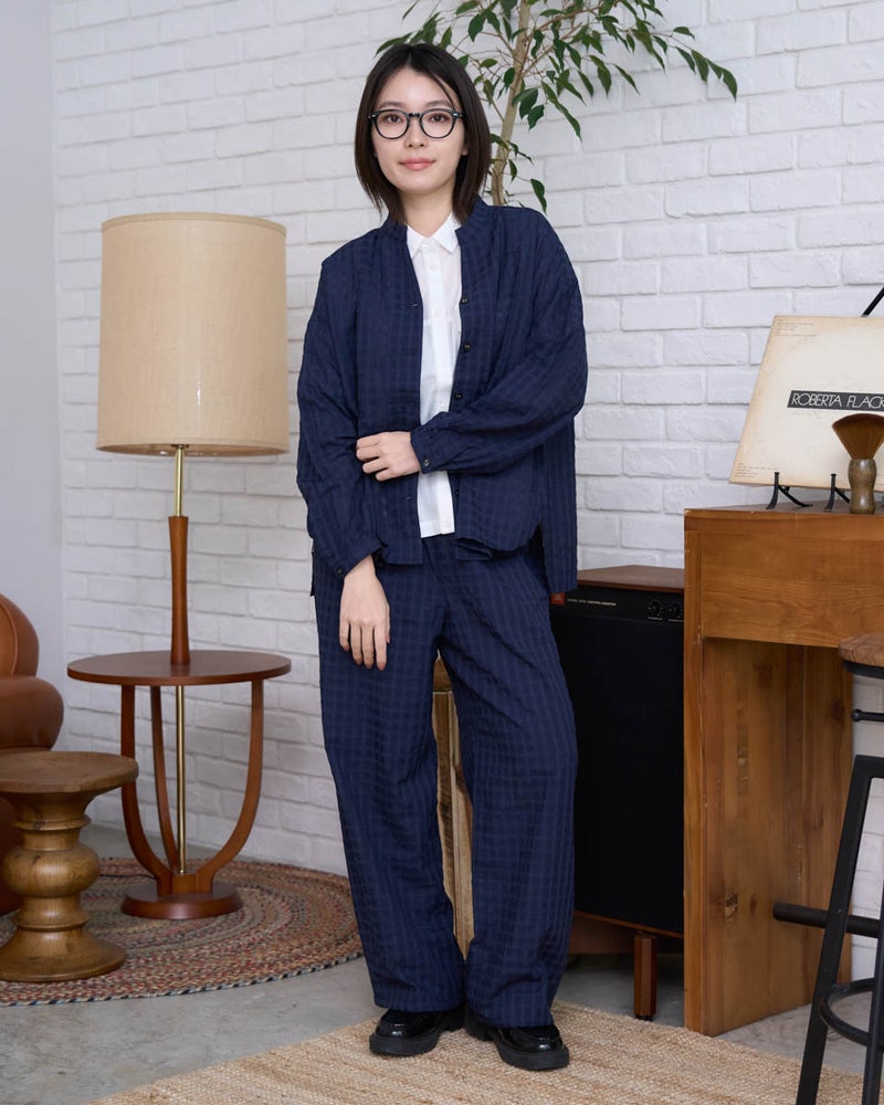 涼しげな麻混素材のチュニックブラウスです。安心感のある長めの丈感で、ネイビー無地とチェックの2色展開。同素材のパンツ467U4702と合わせれば、柄や無地を自由に組み合わせたセットアップスタイルが楽しめます。 モデル身長: 162 cm 着用サイズ: M サイズ Golden Bear WOMEN ブラウス (WOMEN) ウィメンズ同素材パンツはこちら 【着用アイテム】467U4312 フラップポケットシャツ 467U4413 タックカットソー 467U4702 麻混ストレートパンツ 468U4750 ワイドデニムパンツ