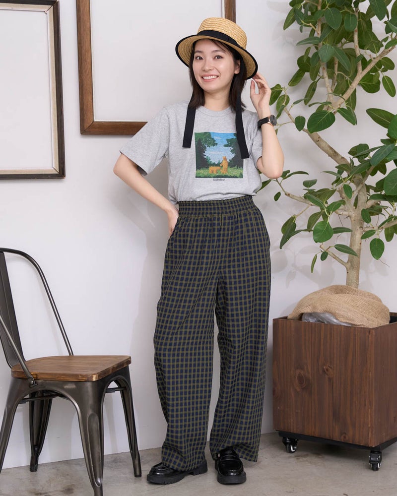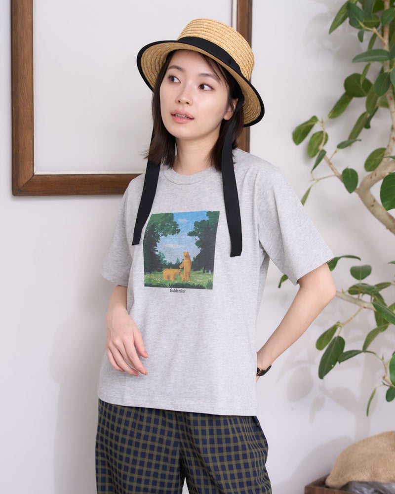 書籍の表紙なども手掛けるイラストレーター、木内達郎さんとの特別なコラボTシャツ。絵本のような優しいタッチと、心弾む鮮やかな色彩が日常に彩りを添えてくれます。肌触りの良い柔らかな素材を使用しており、お子様やご家族とお揃いで着ていただきたい愛情あふれる一枚。身に纏うだけで、まるでアートと一緒に歩いているような温かい気持ちになれる一着です。 モデル身長: 162 cm 着用サイズ: M サイズ Golden Bear WOMEN カットソー (WOMEN) ウィメンズ母の日Tシャツ467U4435はこちら ウィメンズプリントトートバッグはこちら キッズサイズはこちら メンズ父の日Tシャツはこちら 家族コーディネートアイテムはこちら 【着用アイテム】467U4702 麻混ストレートパンツ 467U4713 オーガニックWガーゼスカート