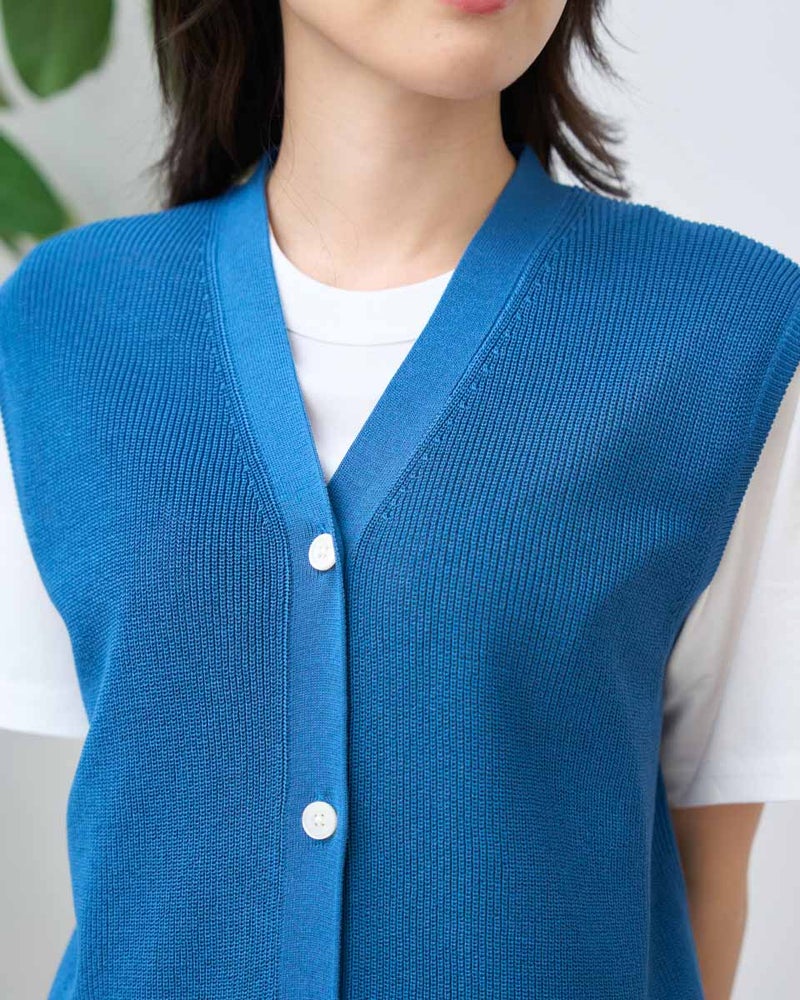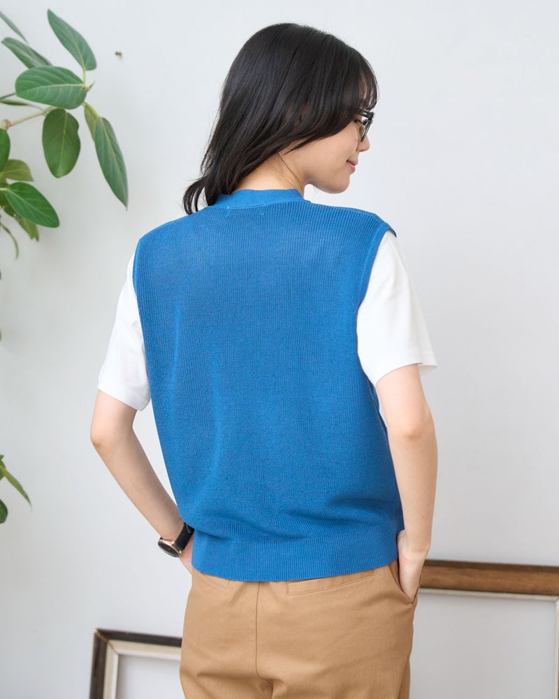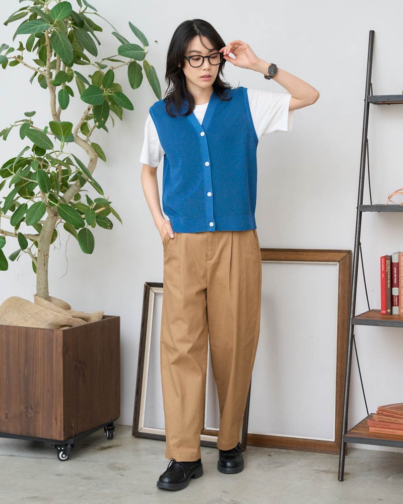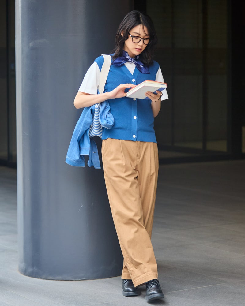 「いつもの装いに、少しだけ変化を加えたい」そんな時にサッと重ねるだけで表情を変えてくれる前あきニットベストです。スッキリとした縦の畦編み(あぜあみ)が、体のラインを美しく見せてくれるこだわりの仕立て。Tシャツやブラウスに一枚プラスするだけで、こなれた大人のレイヤードスタイルが完成します。季節の変わり目の温度調節もオシャレに解決してくれる、ワードローブの心強い味方です。 モデル身長: 166 cm 着用サイズ: M サイズ Golden Bear WOMEN ニット (WOMEN) 【着用アイテム】467U4306 オーガニックコットンデニムシャツ 467U4430 オーガニックコットンTシャツ 467U4601 畦編みベスト 468U4750 ワイドデニムパンツ 467U4003 ニットトートバッグ