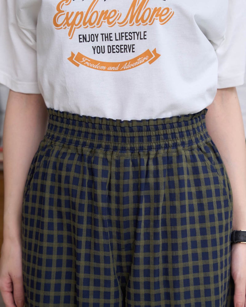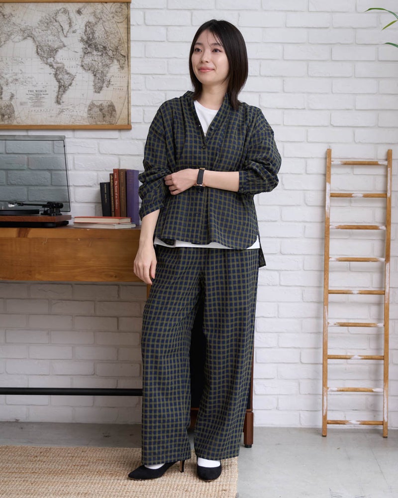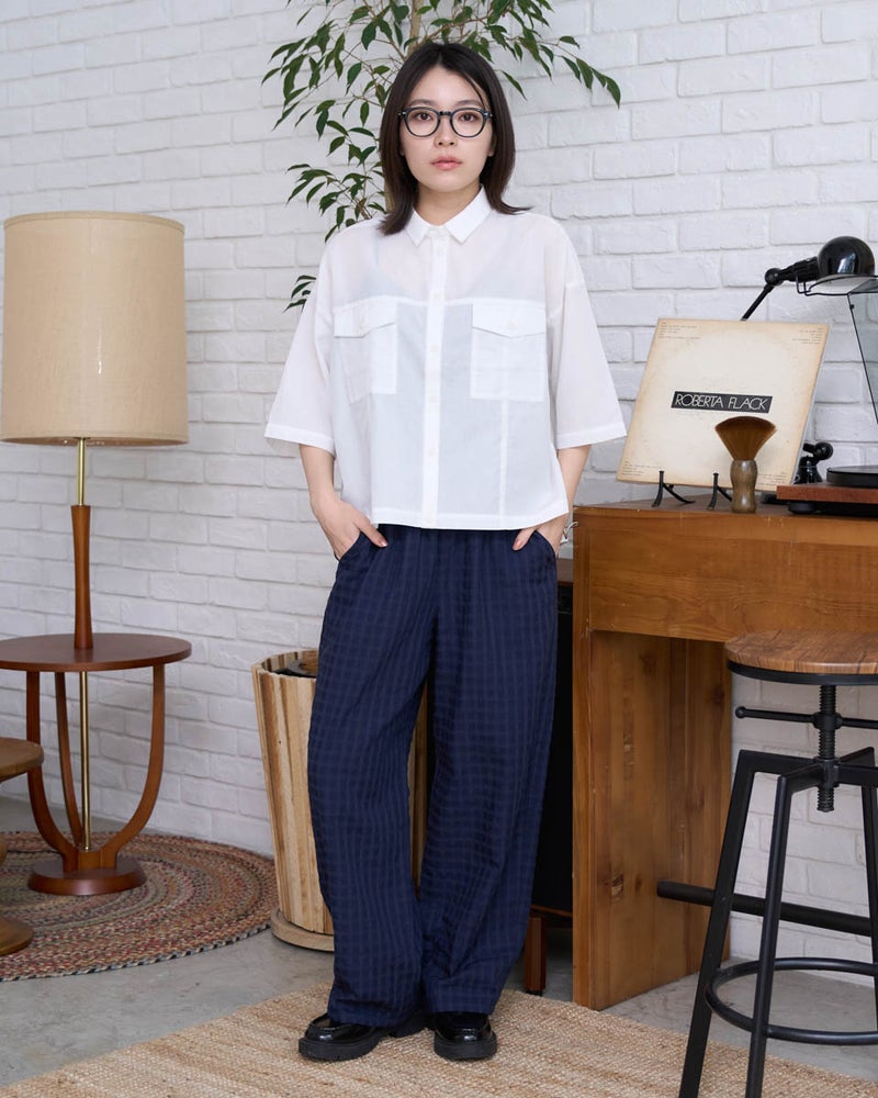 麻混素材のナチュラルな風合いが涼やかな、ストレートパンツです。ウエストは総ゴム仕様で、締め付け感のないリラクシーな穿き心地が魅力。すとんとした綺麗なシルエットが、装いを軽やかに仕上げます。同素材のブラウス467U4305とのセットアップなら、着こなしの幅もぐんと広がります。 モデル身長: 162 cm 着用サイズ: M サイズ Golden Bear WOMEN ボトムス (WOMEN) レディース同素材チュニックシャツはこちら 【着用アイテム】467U4305 麻混チュニックシャツ 467U4306 オーガニックコットンデニムシャツ 467U4312 フラップポケットシャツ