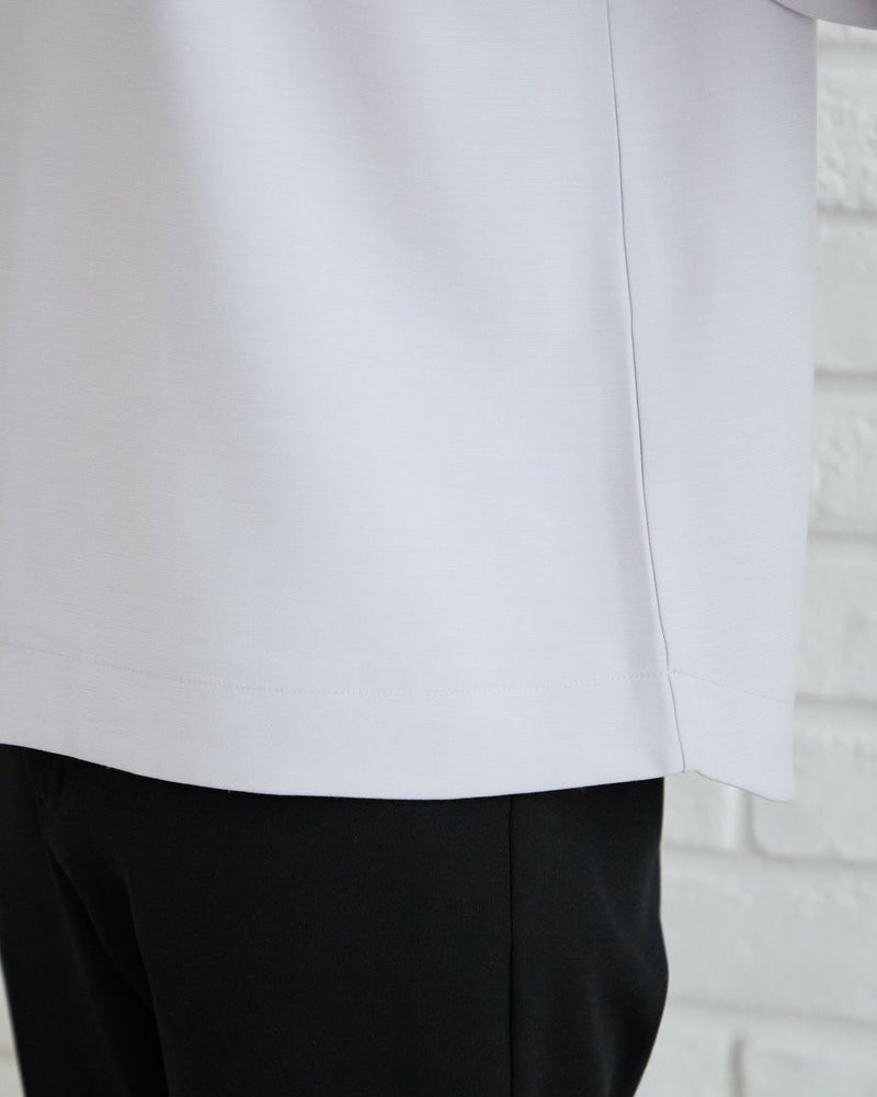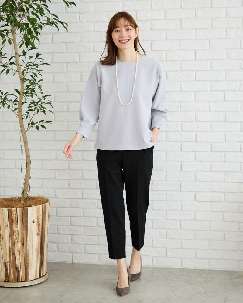 ほどよい厚みと弾力がある2重織りの素材をセレクト。ボディラインを拾わずダレにくいため清潔できちんとした印象のプルオーバーです。ブラウスとスウェットの中間にあるようなアイテムで気温の上がる季節に向けて1枚着も楽しんでいただけます。ほのかな光沢と滑らかな生地の表情が活きるパールや地金のジュエリーを添えた着こなしも素敵です。袖口に並んだ小さな包み釦が手元を綺麗に映してくれます。 モデル身長: 171 cm 着用サイズ: M サイズ Golden Bear White Label (WOMEN) カットソー (WOMEN) 【着用アイテム】468R2750 テーパードパンツ 468R3760 ストレートパンツ