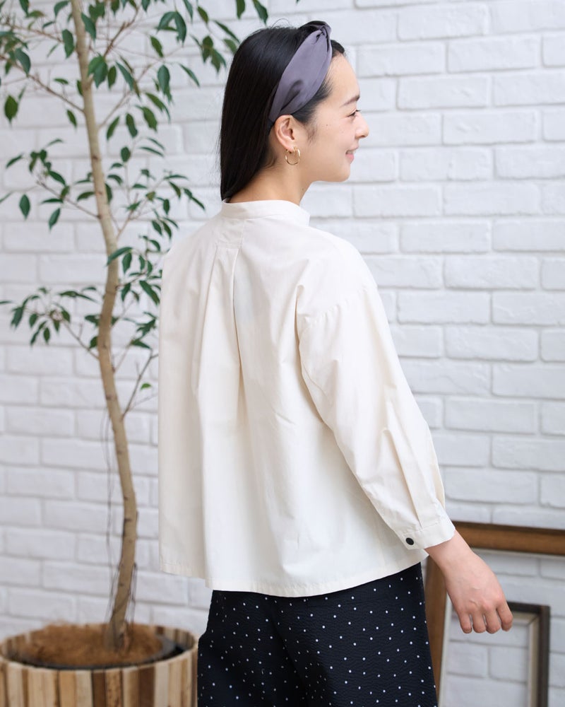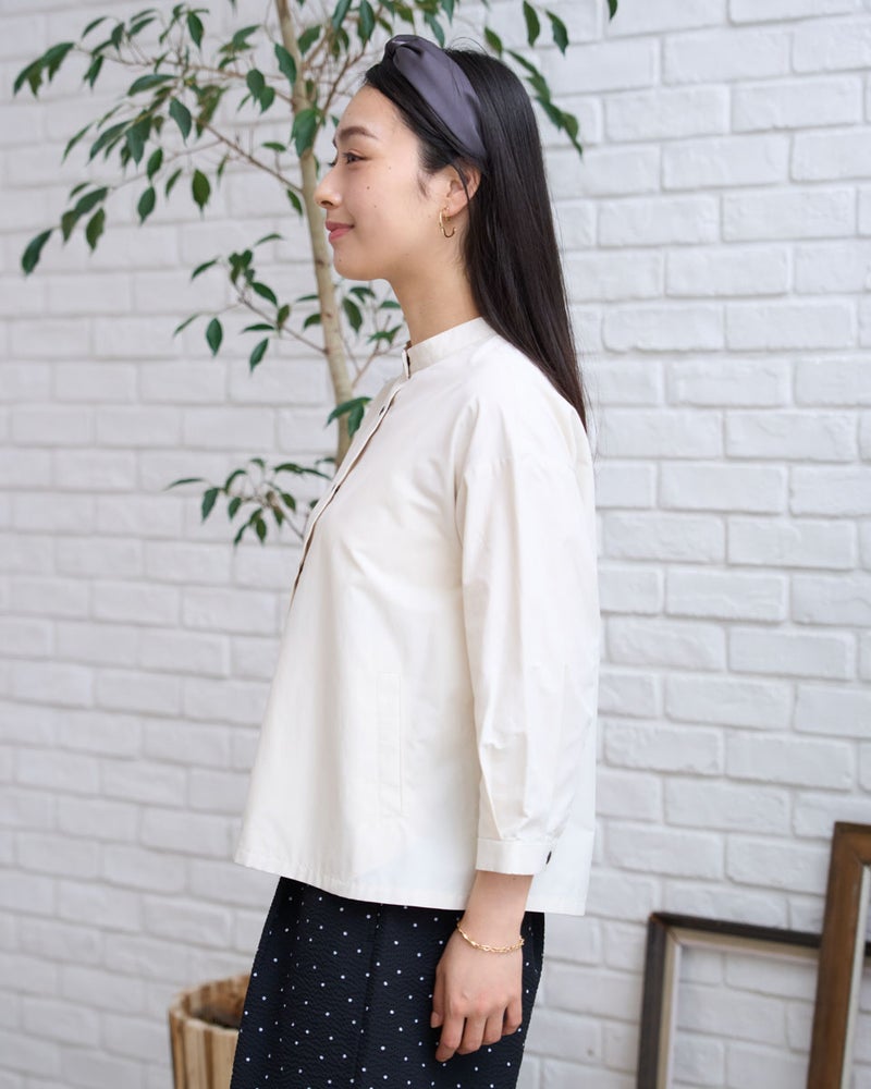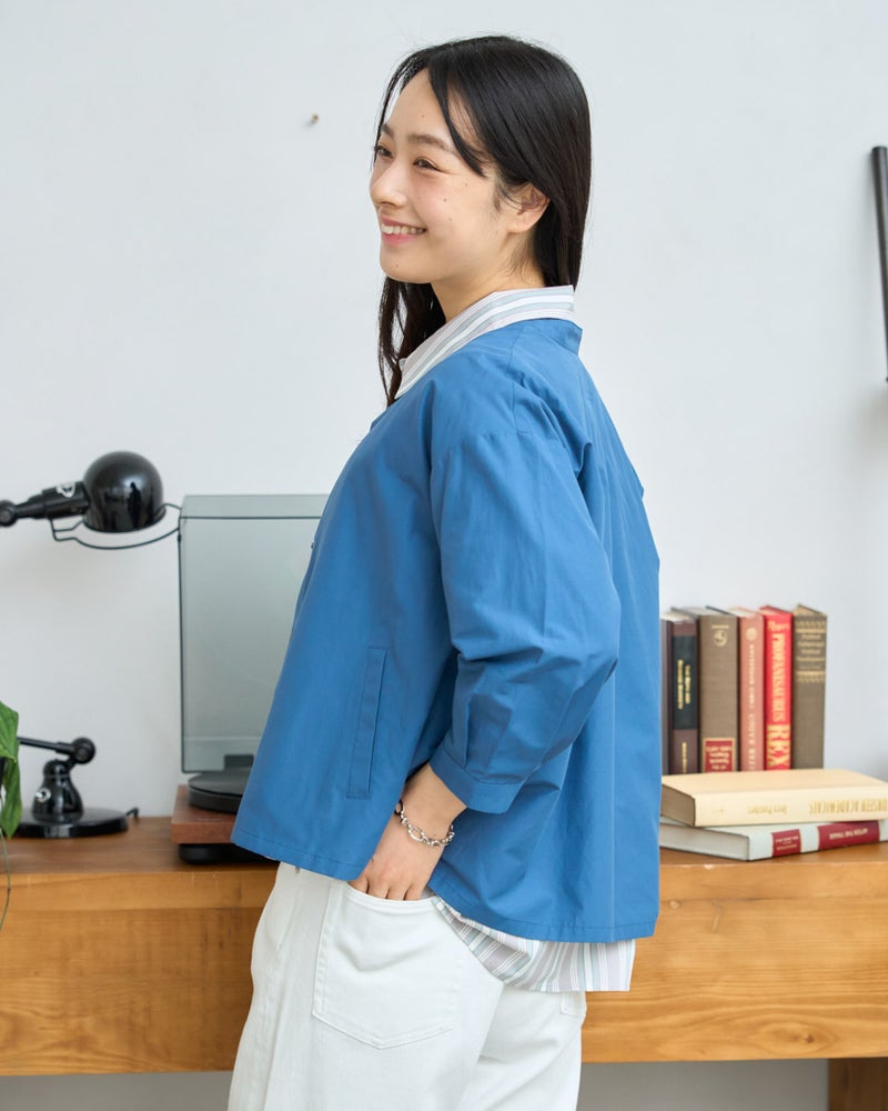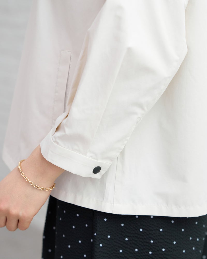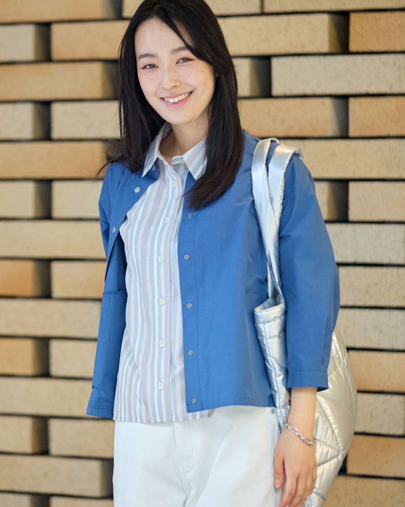 軽量でシャツのような軽やかさと、季節の変わり目に活躍する人気のシャツブルゾンです。今期もはっ水機能を加え、日常で使いやすい一着に仕上げています。フロントは着脱がスムーズなプラドット釦で、気温変化の激しい季節の温度調節に重宝します。ほどよいハリ感でボックスシルエットを保ち、身体に付かず離れず快適に着用できるため、長時間の着用やお花見・旅行などのアクティブなシーンでも快適に過ごせます。汚れた際も濡らした布でサッと拭き取れるなど、お手入れの手軽さも忙しい毎日には嬉しいポイントです。 モデル身長: 167 cm 着用サイズ: M サイズ Golden Bear White Label (WOMEN) ブラウス (WOMEN) 【着用アイテム】468U4361 ストライプシャツ 468U4751 ワイドデニムパンツ 468U4760 イージーパンツ