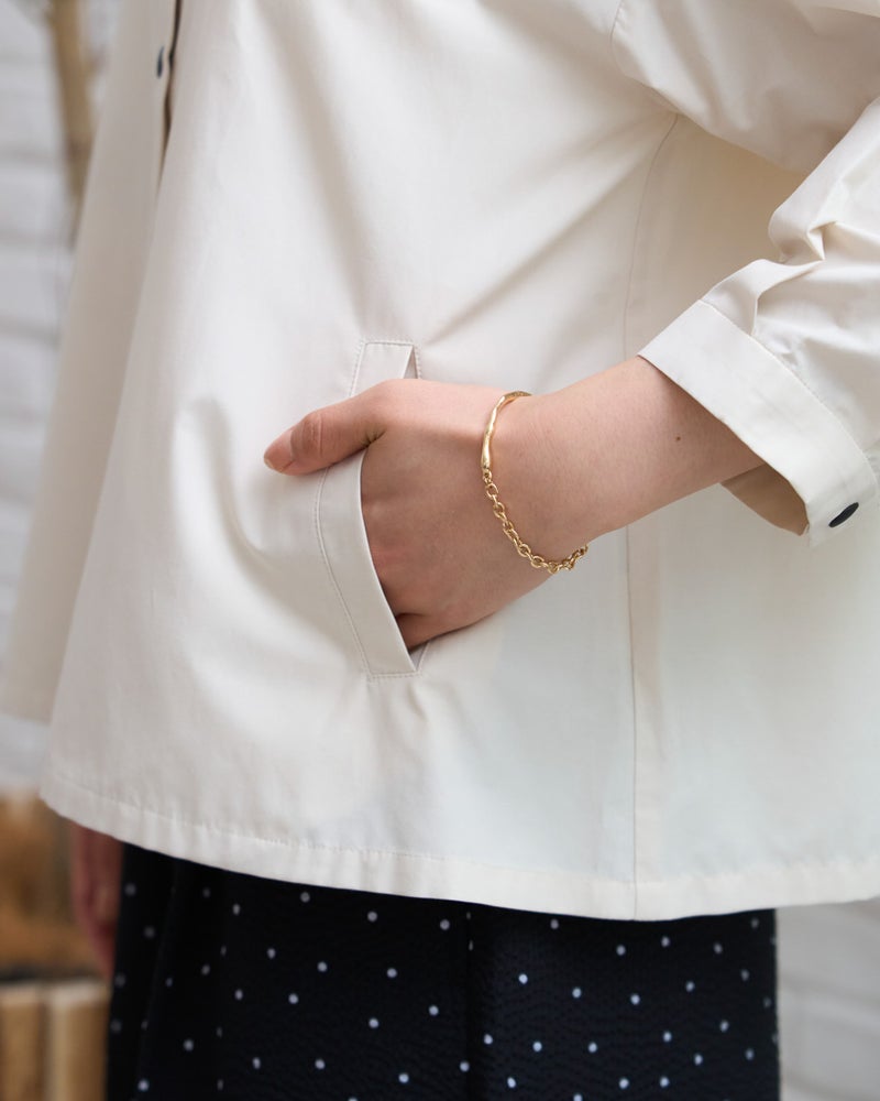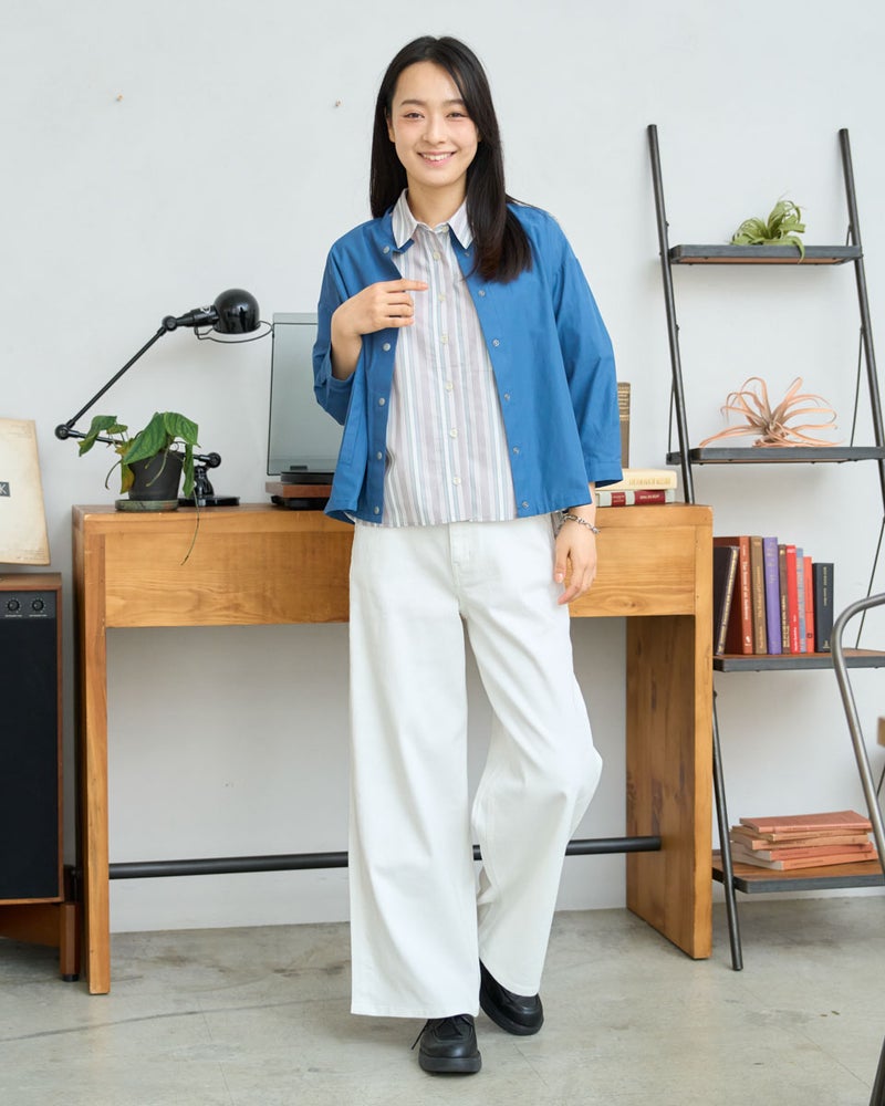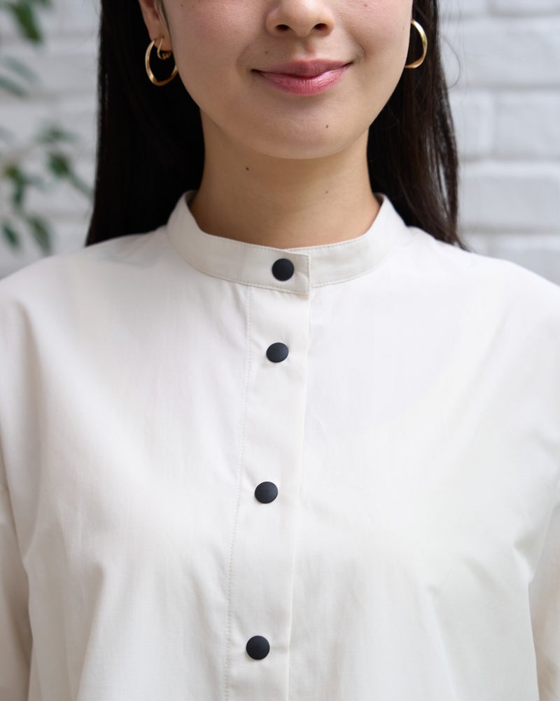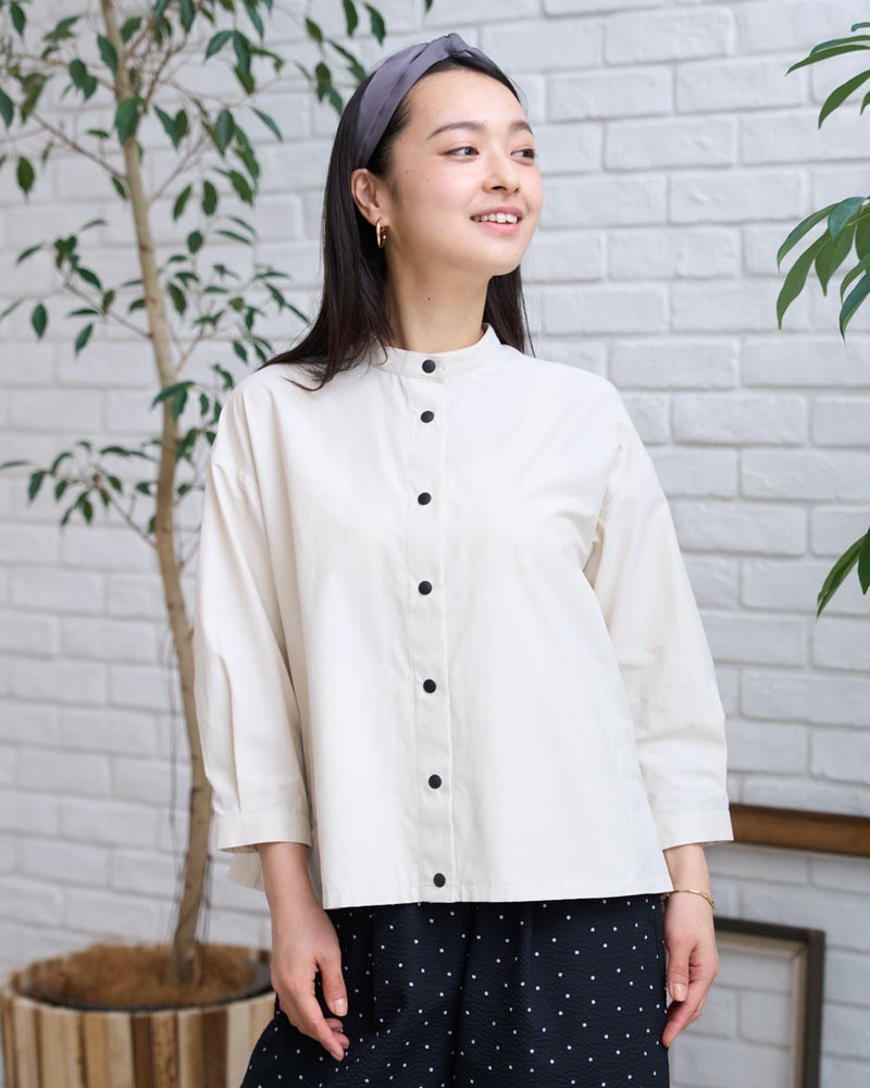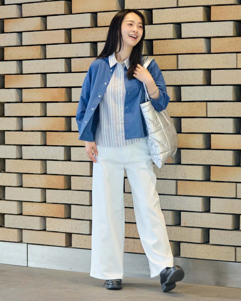 軽量でシャツのような軽やかさと、季節の変わり目に活躍する人気のシャツブルゾンです。今期もはっ水機能を加え、日常で使いやすい一着に仕上げています。フロントは着脱がスムーズなプラドット釦で、気温変化の激しい季節の温度調節に重宝します。ほどよいハリ感でボックスシルエットを保ち、身体に付かず離れず快適に着用できるため、長時間の着用やお花見・旅行などのアクティブなシーンでも快適に過ごせます。汚れた際も濡らした布でサッと拭き取れるなど、お手入れの手軽さも忙しい毎日には嬉しいポイントです。 モデル身長: 167 cm 着用サイズ: M サイズ Golden Bear White Label (WOMEN) ブラウス (WOMEN) 【着用アイテム】468U4361 ストライプシャツ 468U4751 ワイドデニムパンツ 468U4760 イージーパンツ