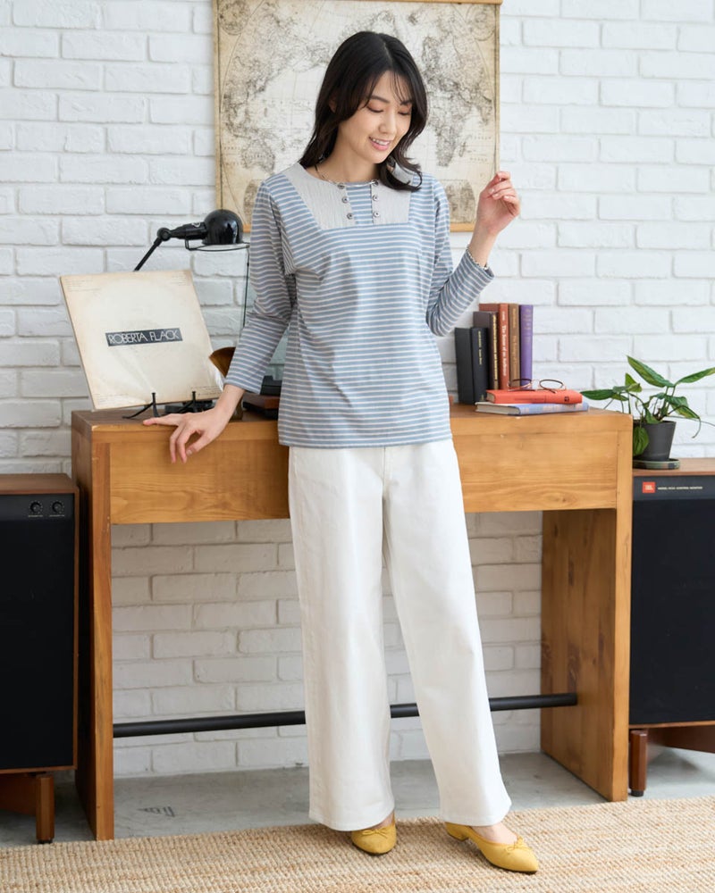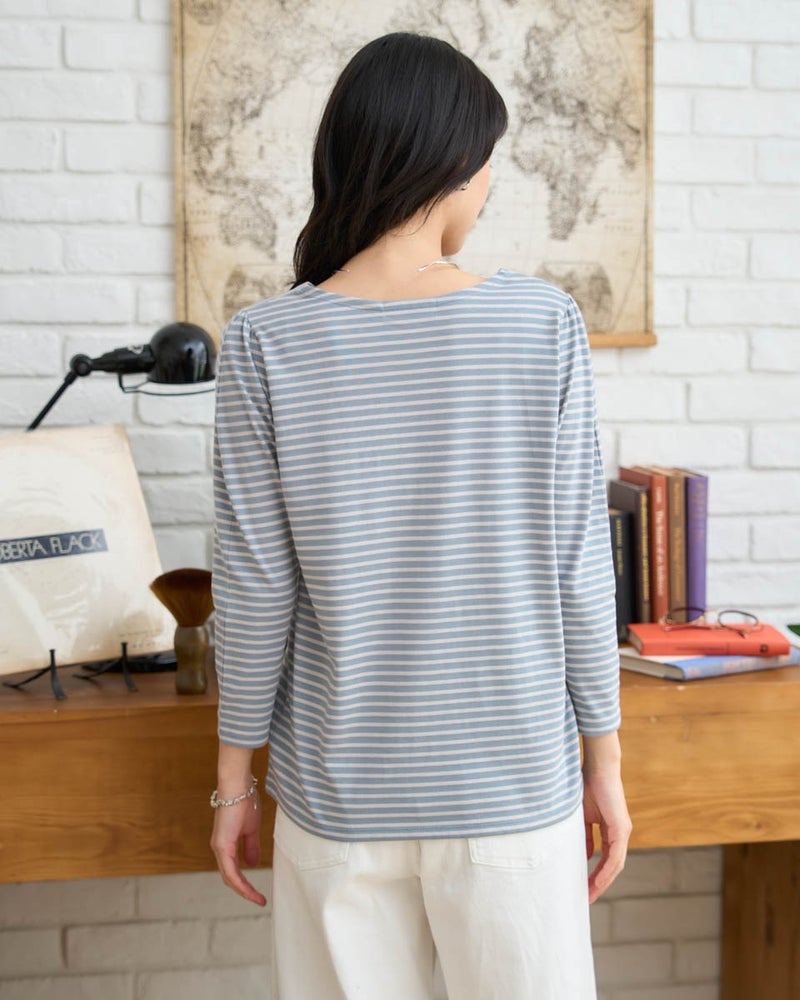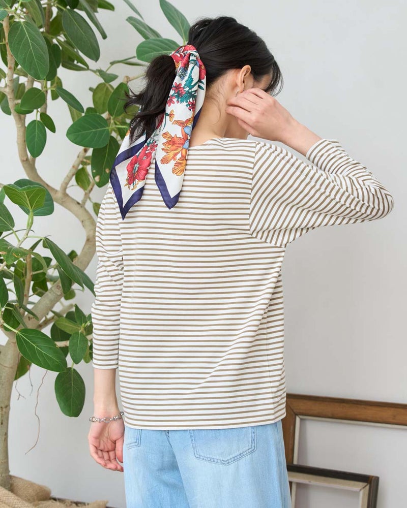 春の定番であるマリンボーダーを、ゆったりとした今どきのシルエットでアップデートした一着です。お洗濯に強く、型崩れしにくいしっかりとした編み地のコットン素材を採用しており、デイリーに気兼ねなく着回せる頼もしさが魅力です。首周りが綺麗に見えるボートネック仕様で、1枚で着てもカジュアルになりすぎず、品格のある大人のマリンスタイルを叶えます。デニムとの相性は抜群ですが、ホワイトのワイドパンツと合わせれば、より爽やかで清潔感あふれる装いに。丈夫な作りなので、洗うたびに肌に馴染むコットンの風合いを楽しみながら長く愛用いただけます。