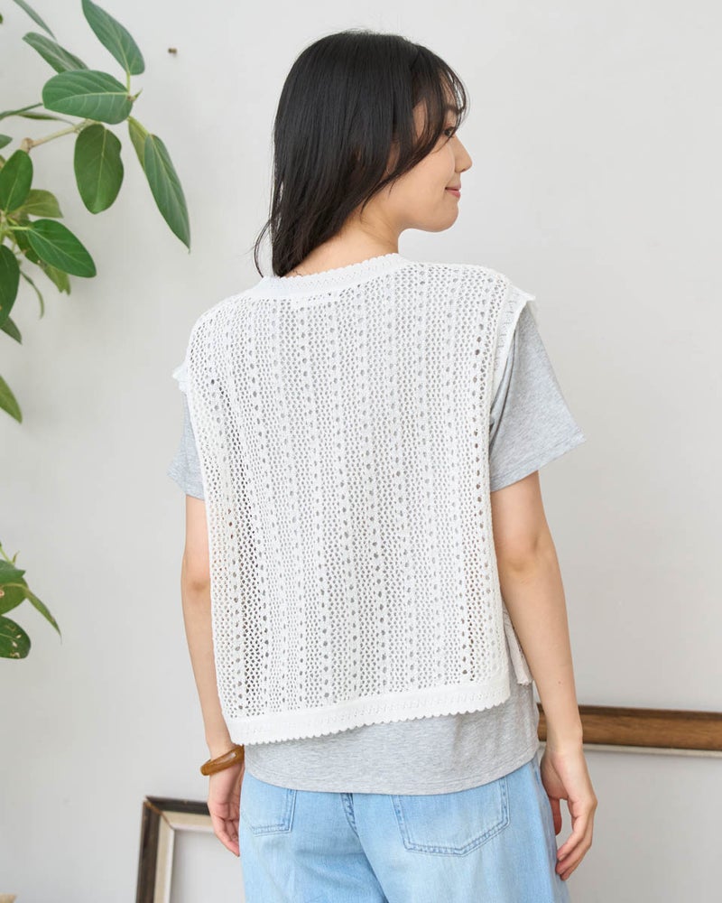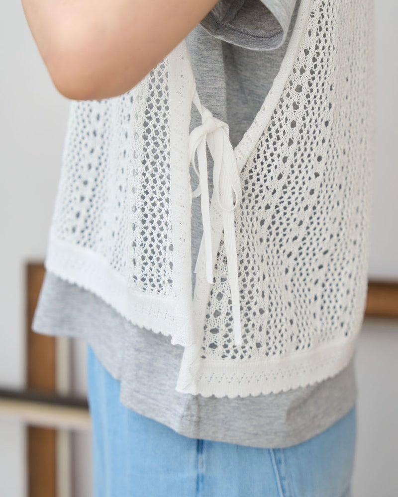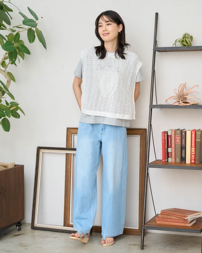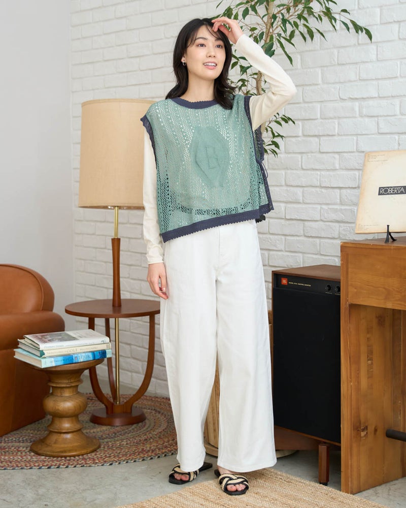 いつものコーディネートに重ねるだけで、旬な着こなしを叶えてくれるニットベストです。型崩れしにくいしっかりとした編み地ながら、空気を含んだような軽い着用感を大切にしました。サイドのスリットが抜け感を作り、シャツやワンピースとのレイヤードももたつかずにスッキリと決まります。春先の不安定な気温調節にはもちろん、スタイリングが物足りない時のアクセントとしても非常に優秀。シンプルながらも、編み地の変化で奥行きを出しており、洗練された仕上がりです。ご自宅でお手入れが可能で、長く綺麗な状態でご愛用いただけるよう配慮されています。 モデル身長: 166 cm 着用サイズ: M サイズ Golden Bear White Label (WOMEN) ニット (WOMEN) 【着用アイテム】468U3461 ロゴTシャツ 468U4450 レイヤードカットソー 468U4750 ワイドデニムパンツ 468U4751 ワイドデニムパンツ