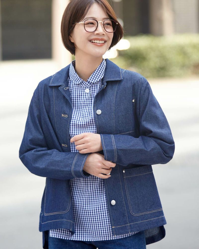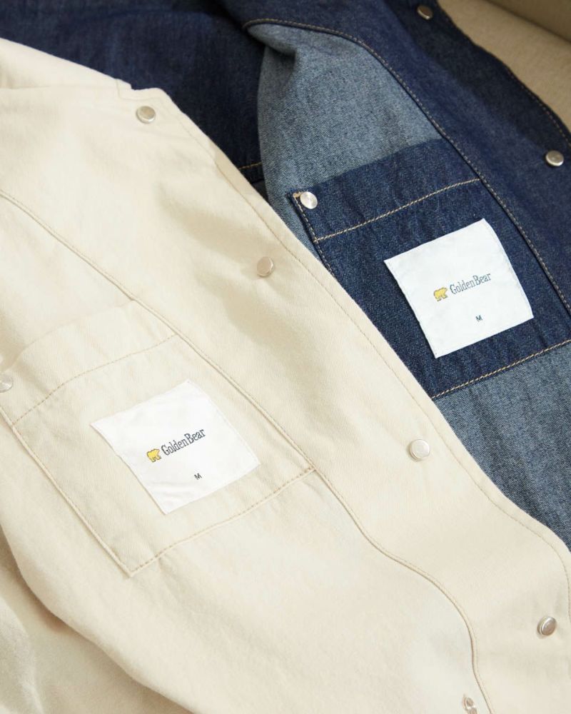 5.5ozの薄いデニムを使用したカバーオールです。襟がシャープに首に沿うように後ろ襟には月こし(半台襟)を付けています。裾は両脇の重ねたスリットがポイントで、着丈は前後差を付けています。左胸のポケットは内ポケットになります。前中心タック釦開きで釦にはブランドロゴの刻印を入れています。 モデル身長: 167 cm 着用サイズ: M サイズ 同デザイン通常サイズはこちら Golden Bear QUEEN SIZE(Ladies' 大きいサイズ ) アウター (Ladies')