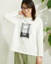 モノトーンのプリントを入れたシンプルなロンT。インナーに使いやすい淡色の2色展開です。