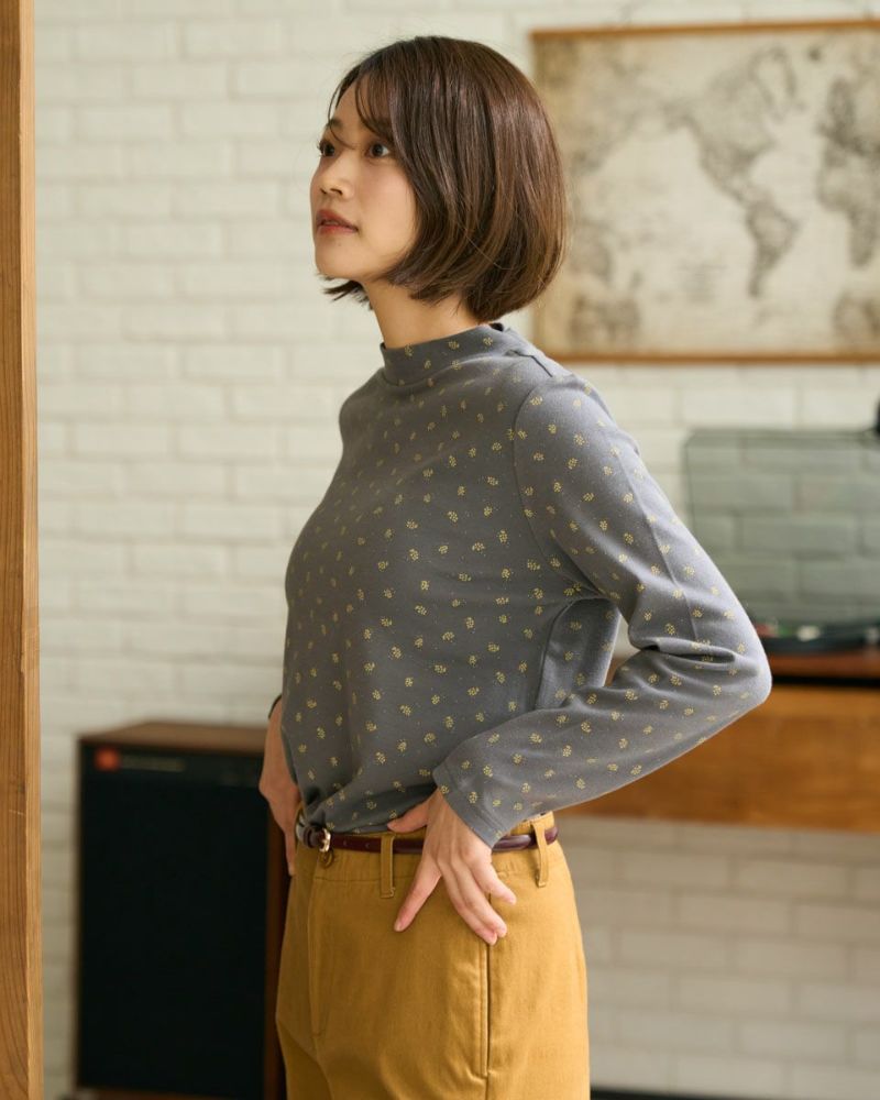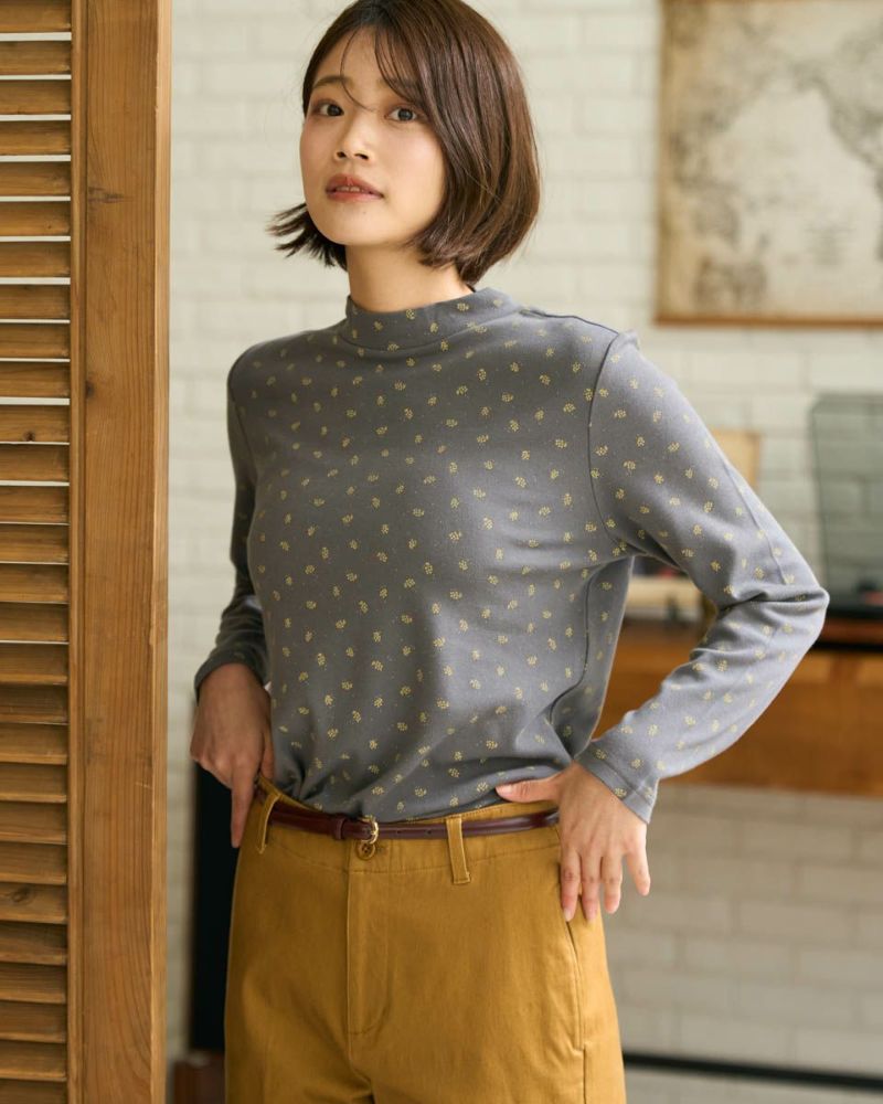 綿100%の発熱機能素材を使用したプリントハイネックTシャツ。様々なコーディネートに合わせられるようカラーをチョイスしました。 モデル身長: 167 cm 着用サイズ: M サイズ Golden Bear QUEEN SIZE(Ladies' 大きいサイズ ) カットソー (Ladies') 同デザイン通常サイズはこちら
