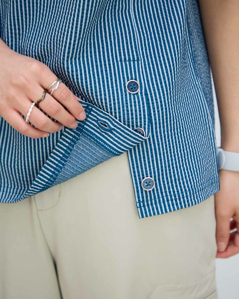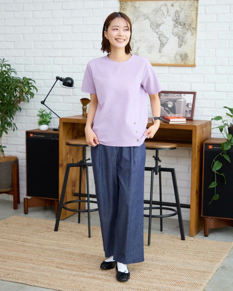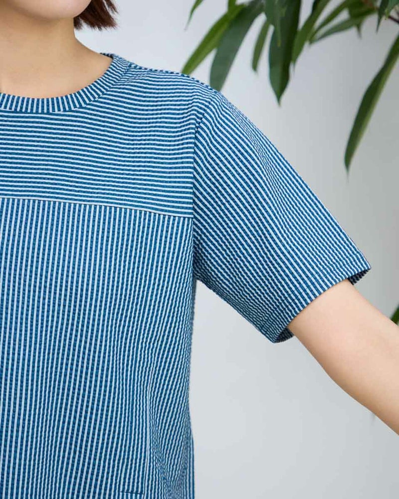 一番の特徴は凹凸のある生地感。肌にくっつきづらいので汗でべたつく季節でも心地よさをキープします。