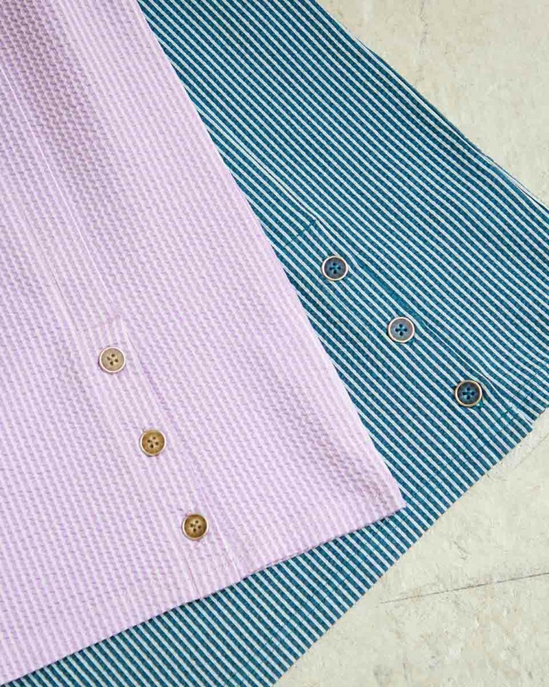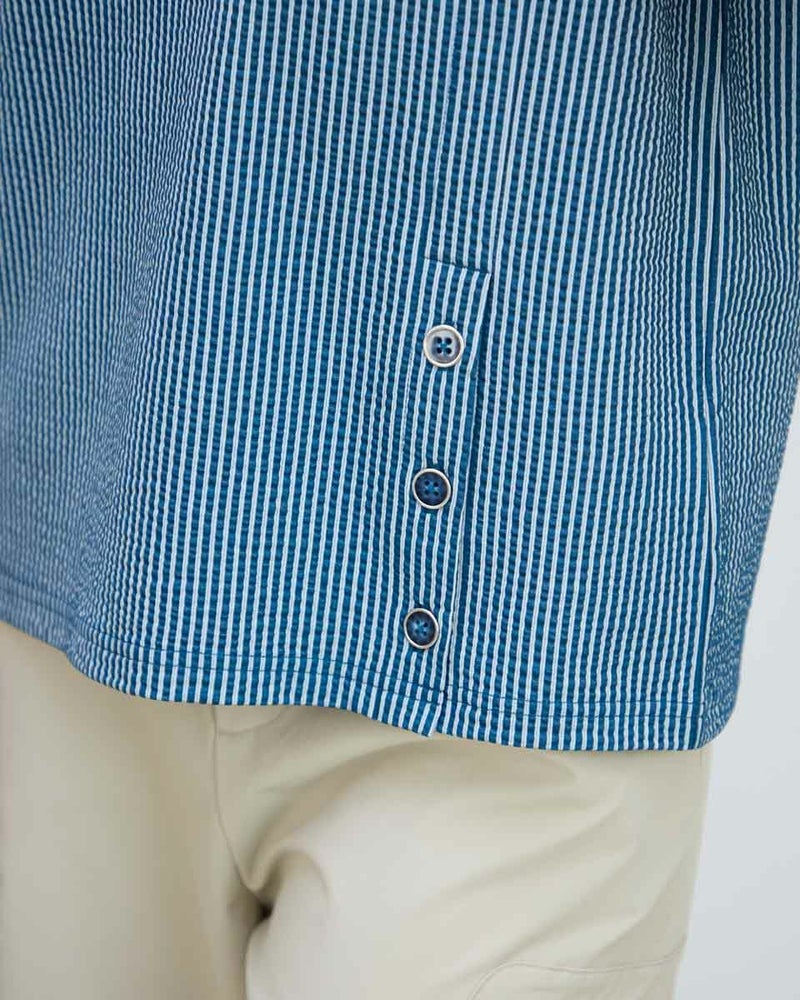 軽くてやわらかな肌触りが特徴のサッカー素材を使用しているので、汗ばむ季節でも肌にまとわりつかず、さらりと快適な着心地。