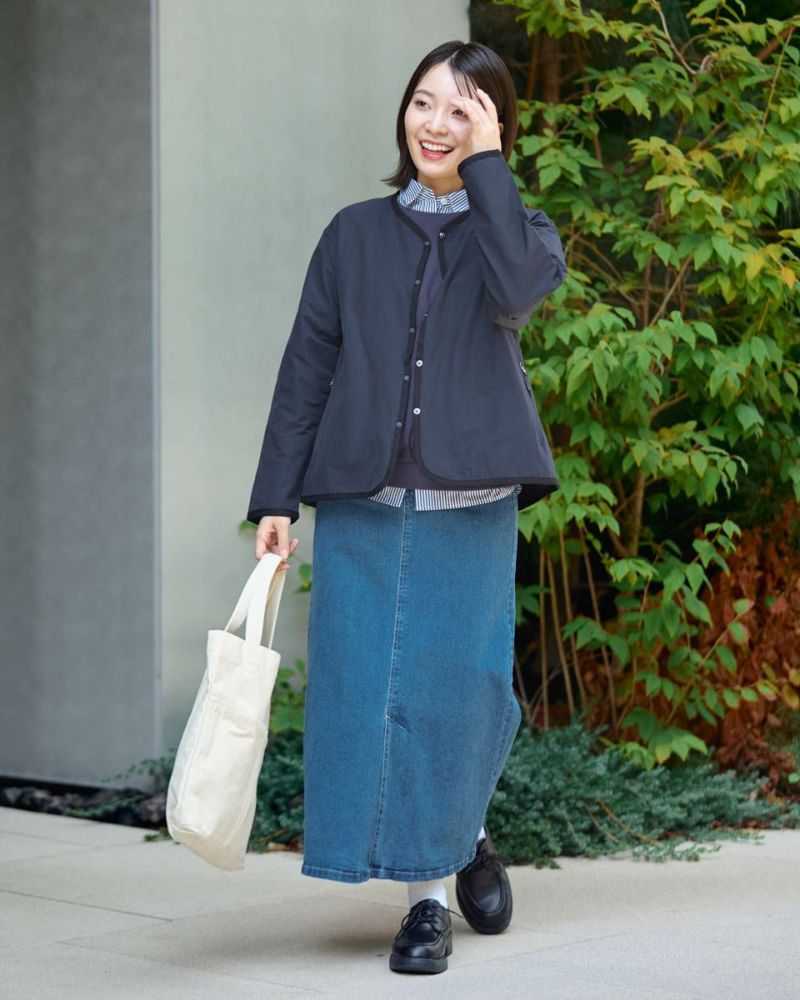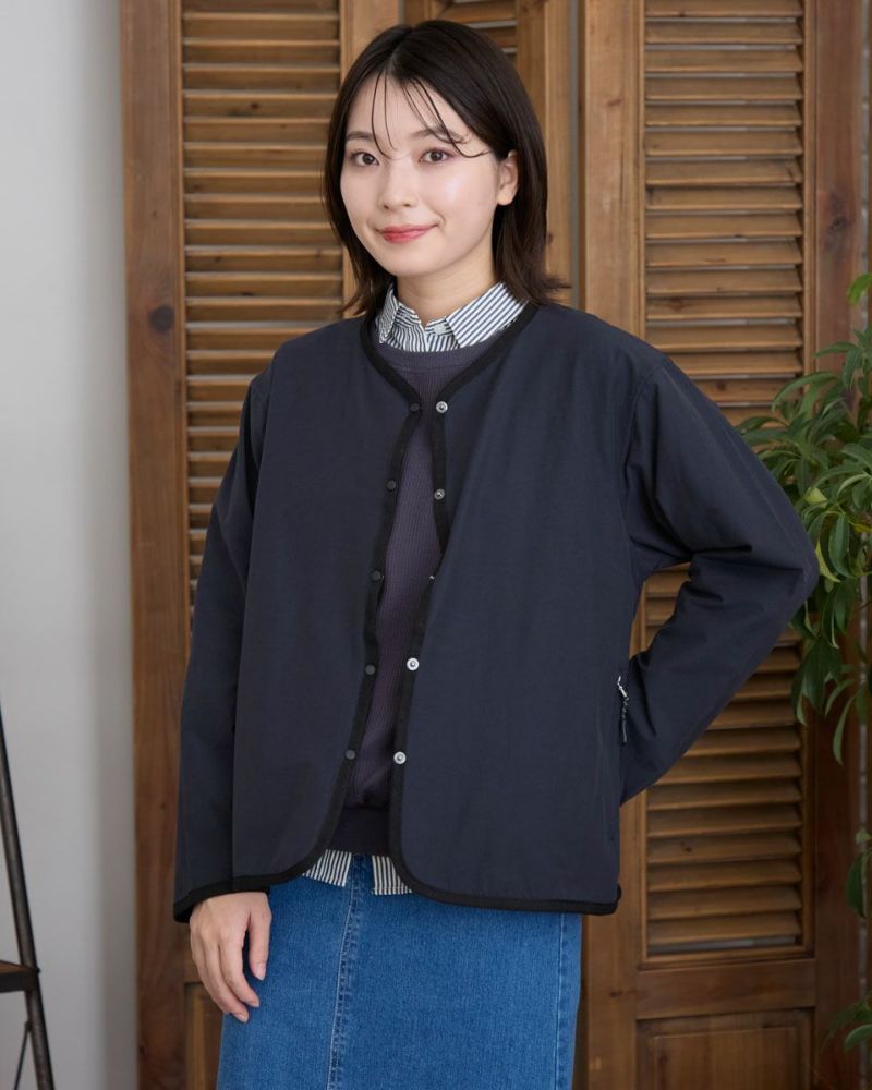 薄手で張りのある素材を使用し、シャツ感覚で着用できるジャケットに仕上げました。レイヤードしやすいVのノーカラーでシャツやTシャツ、パーカなど様々なアイテムとのスタイリングが可能です。パンツの467RC701と同素材で展開しています。 モデル身長: 162 cm 着用サイズ: M サイズ Golden Bear QUEEN SIZE(Ladies' 大きいサイズ ) アウター (Ladies') 同デザイン通常サイズはこちら