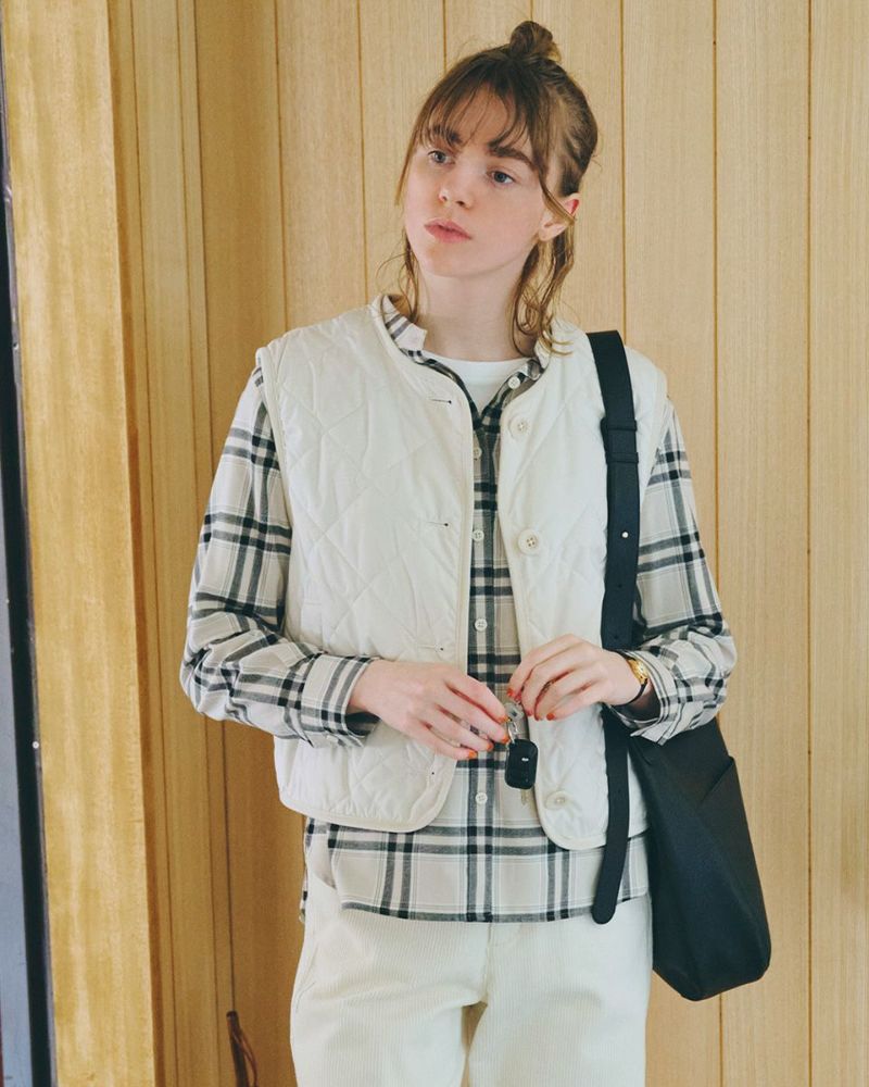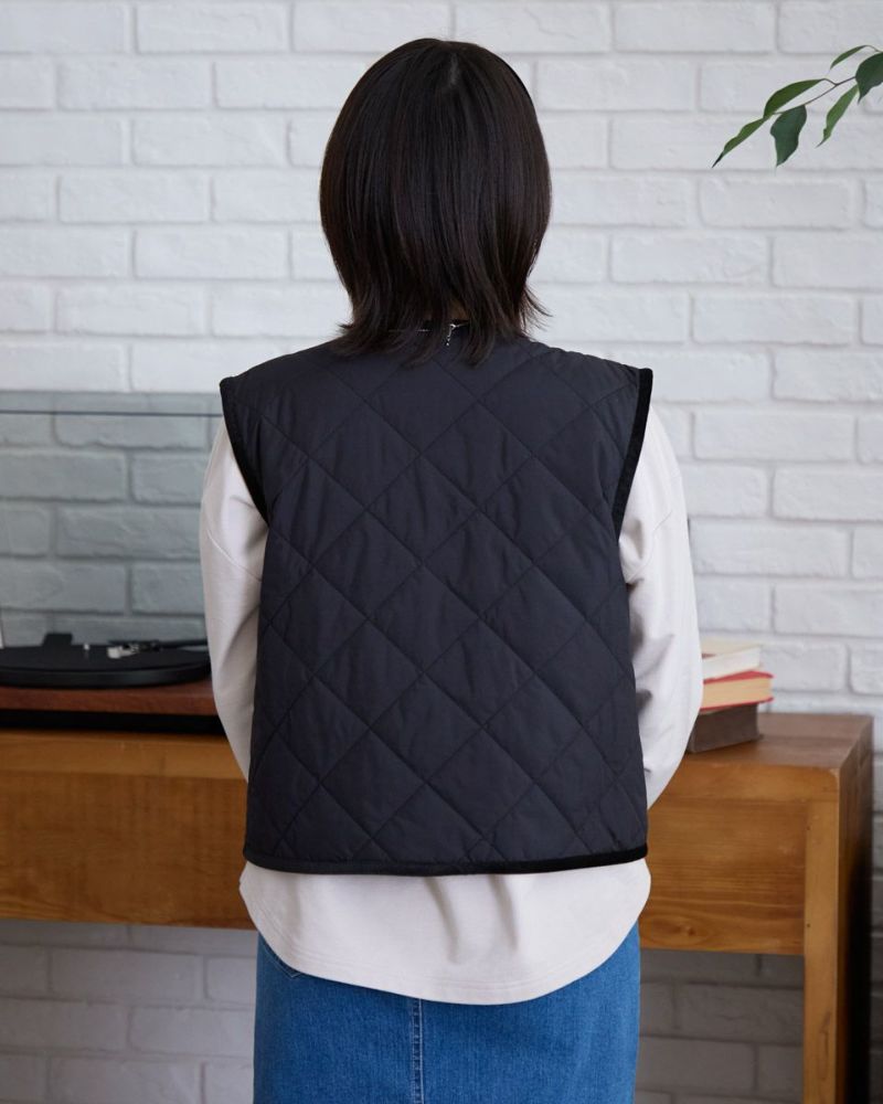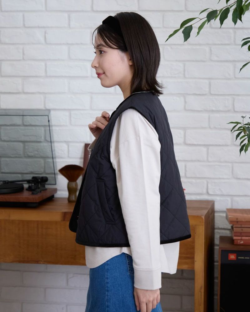 ダイヤキルト柄のキルティングベストです。さまざまなアイテムとレイヤードしやすく春や秋はサッと羽織ってコーディネートのポイントに。冬はコートインして防寒アイテムとしても活躍します。 モデル身長: 162 cm 着用サイズ: M サイズ Golden Bear QUEEN SIZE(Ladies' 大きいサイズ ) アウター (Ladies') 同デザイン通常サイズはこちら