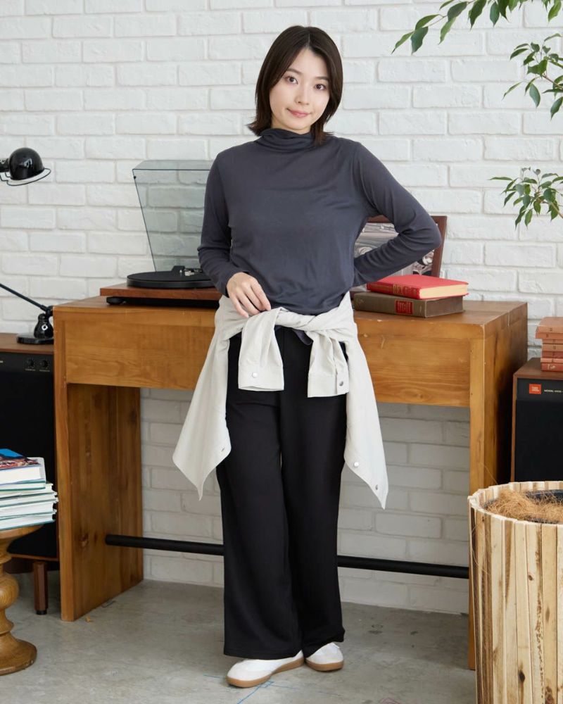 ドライな肌ざわりが心地よいタートルネックカットソー。季節の変わり目の重ね着に欠かせない一枚です。インナーとしてはもちろん、レイヤードの見せ方次第で主役にもなる、汎用性の高いアイテムです。 モデル身長: 162 cm 着用サイズ: M サイズ Golden Bear QUEEN SIZE(Ladies' 大きいサイズ ) カットソー (Ladies') 同デザイン通常サイズはこちら