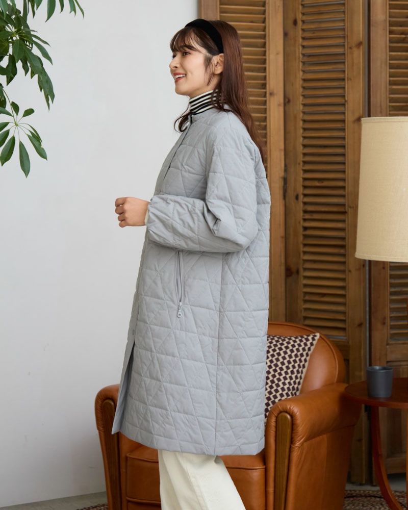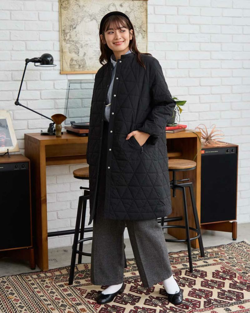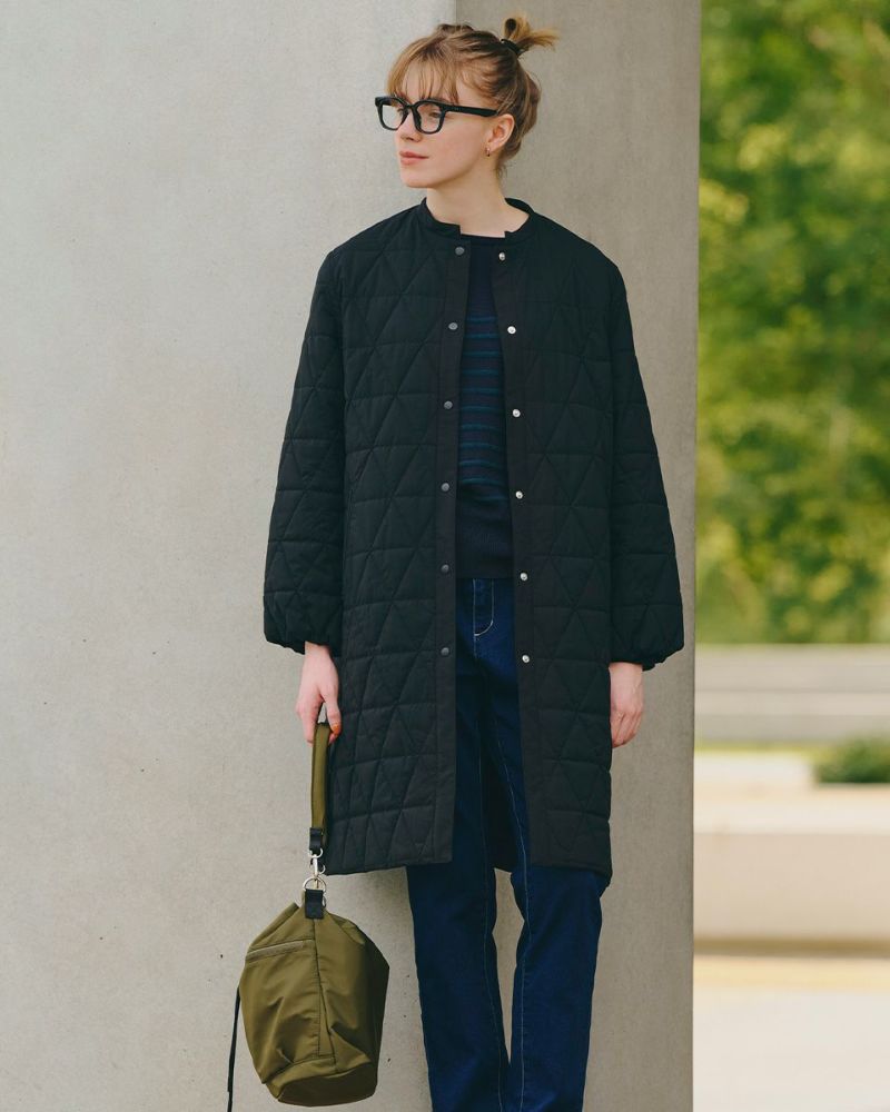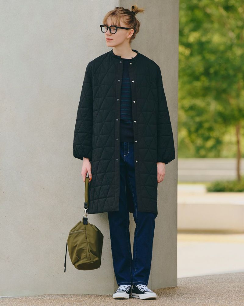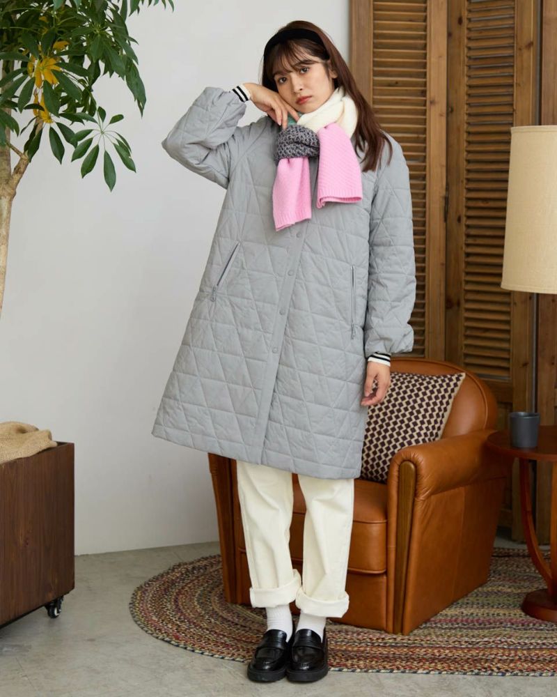 軽くてソフトな中綿コートです。ドットボタンで着脱もしやすく少しふわっとした袖口が女性らしい印象です。すっきりとした襟まわりでタートルやフードアイテムともコーディネートしやすくマフラーなどの小物使いも楽しめる1枚です。 モデル身長: 168 cm 着用サイズ: M サイズ Golden Bear QUEEN SIZE(Ladies' 大きいサイズ ) アウター (Ladies') 同デザイン通常サイズはこちら