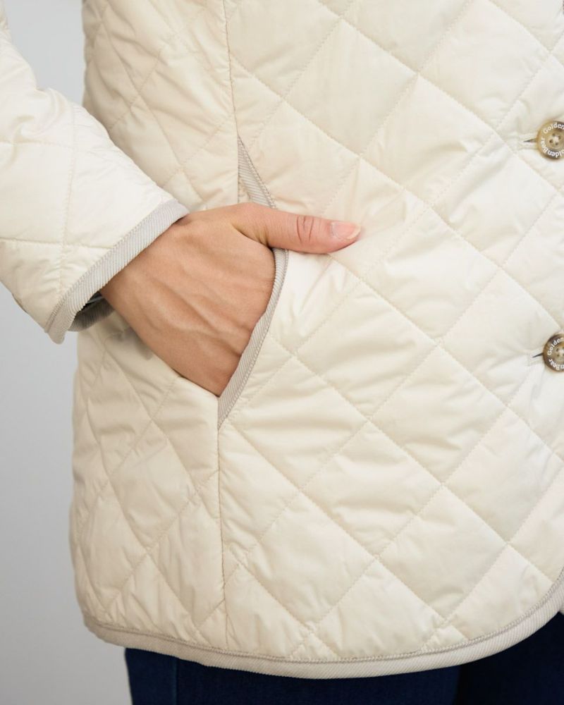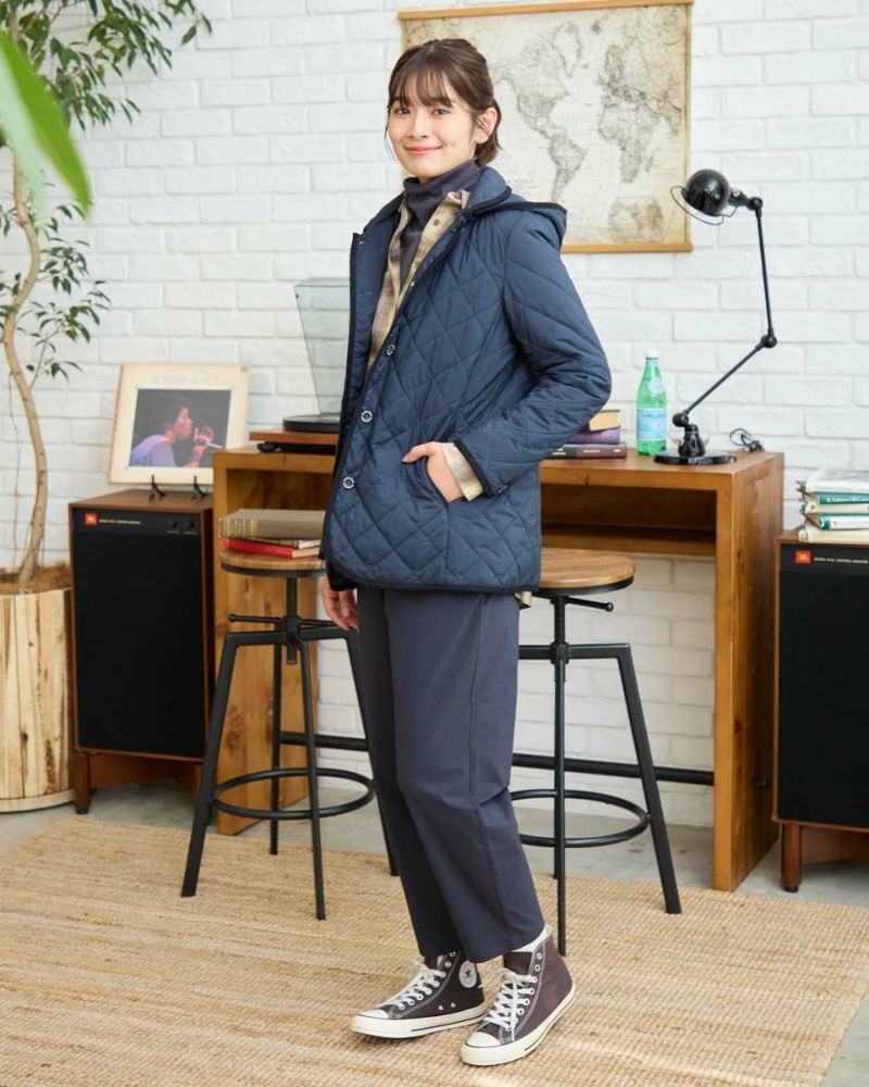 毎年ご好評いただいているキルトジャケットです。中綿にはソフトな風合いと膨らみを持たせる植物由来の素材を一部配合することで耐久性と保温性を高めました。コーデュロイの配色パイピングがポイントです。フードはファスナーで取り外しが出来ます。前中心はブランドロゴ入りの釦を、裏地はゴールデンベアオリジナルのチェック柄プリントを使用しています。昨年より約100g軽量化しました。ご家庭の洗濯機で洗えて、いつでも清潔に着用いただけます。
