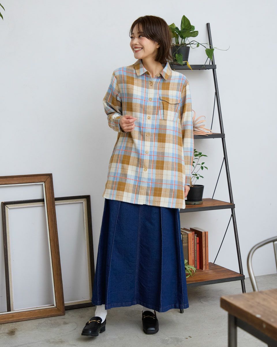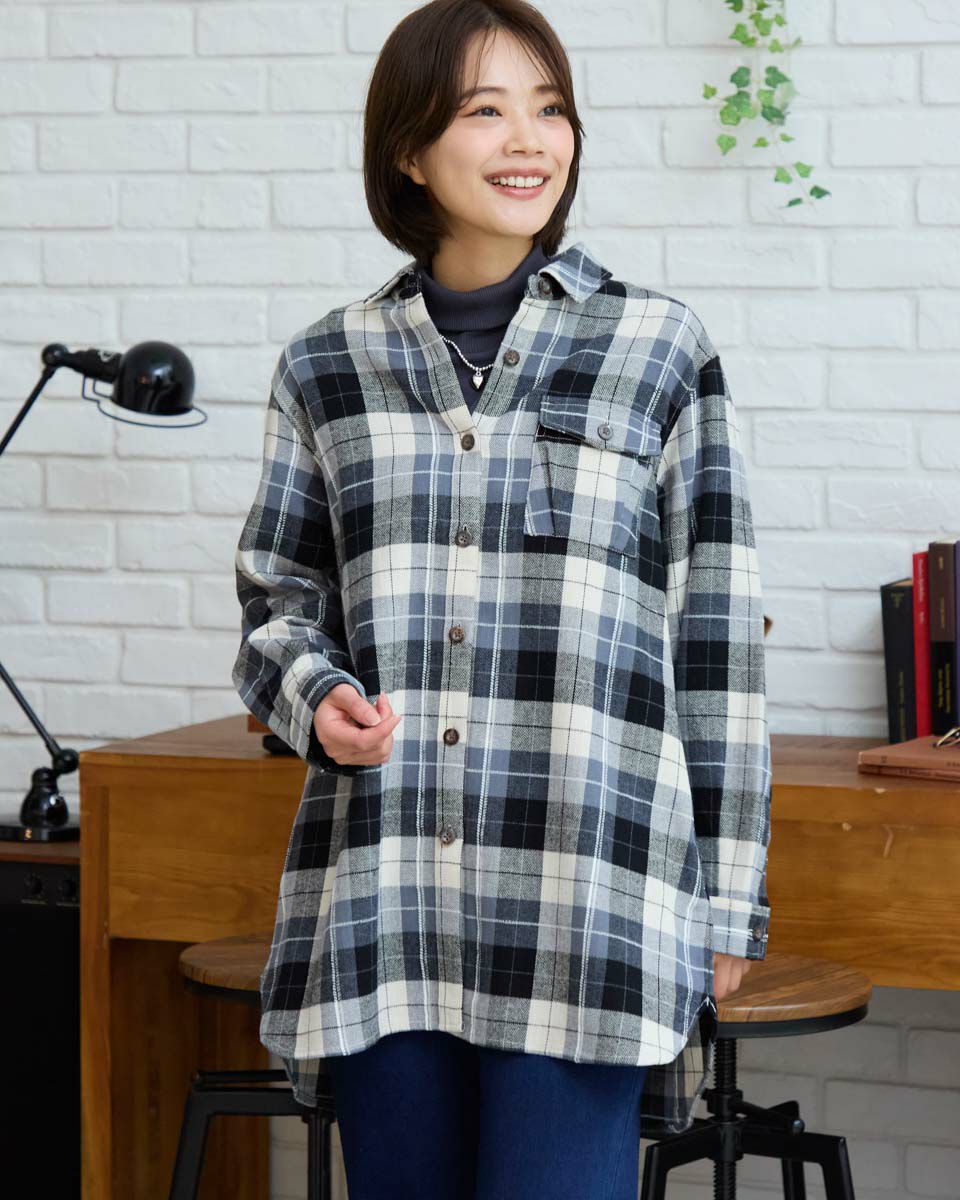 ほどよい厚みのある生地で仕立てた、チェック柄のシャツ。一枚着としてはもちろん、ライトアウター感覚で羽織りとしても活躍するアイテムです。ゆったりとしたシルエットで、ラフに着こなすだけでこなれた印象に。季節の変わり目や気温調整にもぴったりな、カジュアルスタイルの頼れる一着です。 モデル身長: 167 cm 着用サイズ: M サイズ Golden Bear QUEEN SIZE(Ladies' 大きいサイズ ) ブラウス (Ladies') 同デザイン通常サイズはこちら