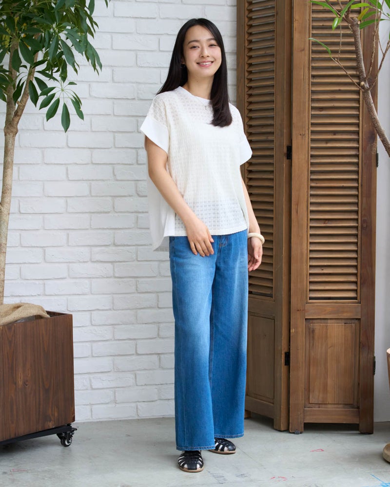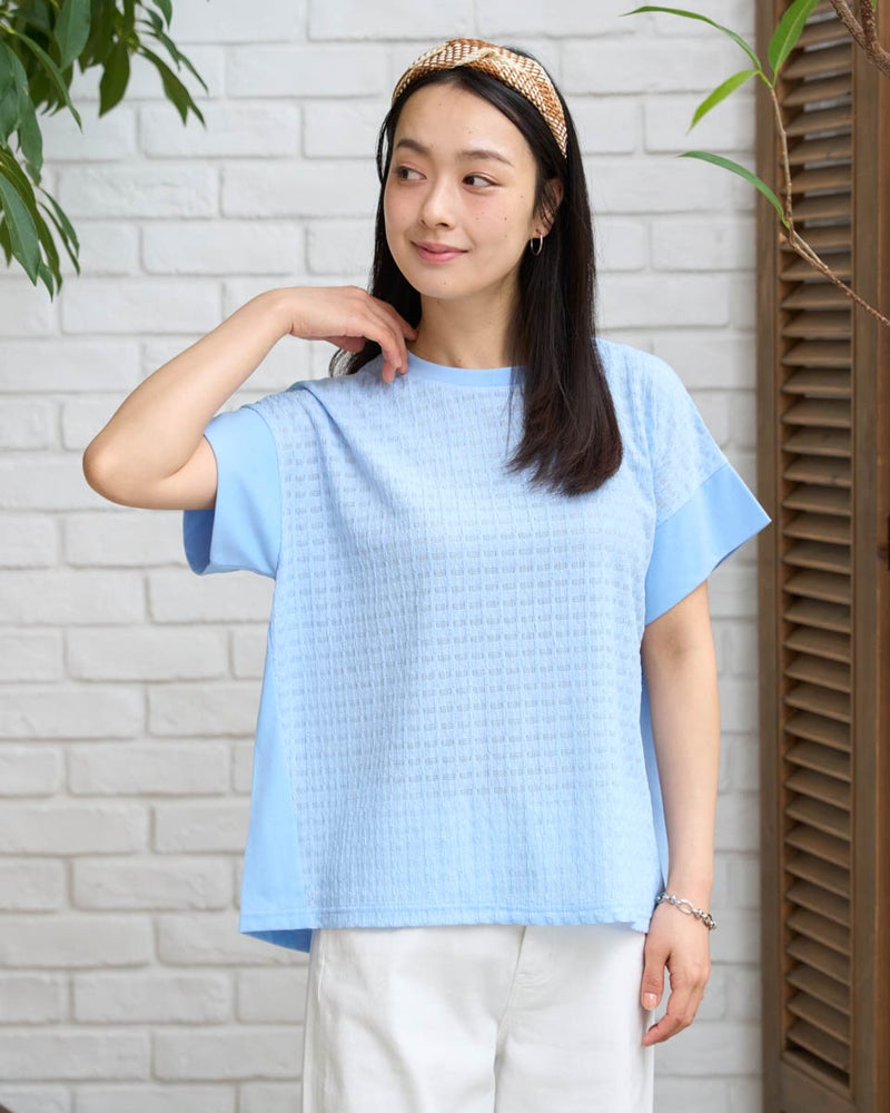 吸水速乾機能を持つ綿ポリエステル天竺と、前身頃のレース切り替えが目を惹くカットソーです。ゆったりとした身幅のAラインシルエットで、通気性の良いフレンチスリーブが初夏の装いに最適。アクティブな日常からお出かけまで幅広く重宝する一枚です。 モデル身長: 167 cm 着用サイズ: M サイズ Golden Bear QUEEN SIZE(WOMEN 大きいサイズ ) カットソー (WOMEN) 同デザイン通常サイズはこちら