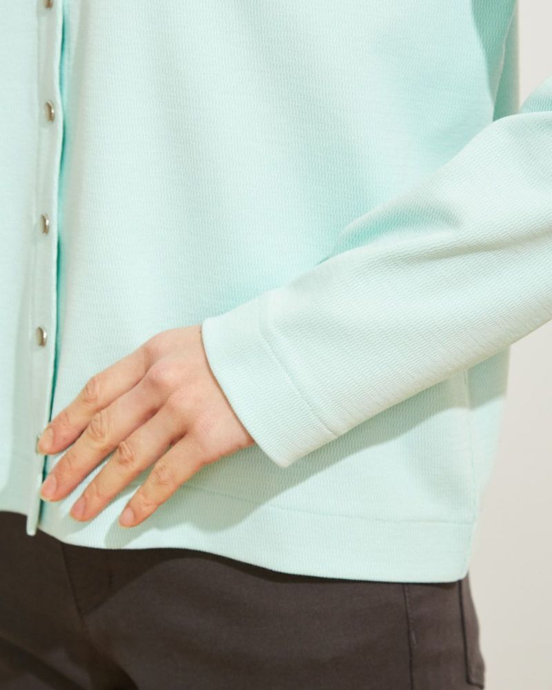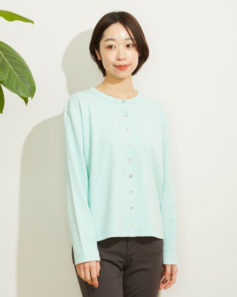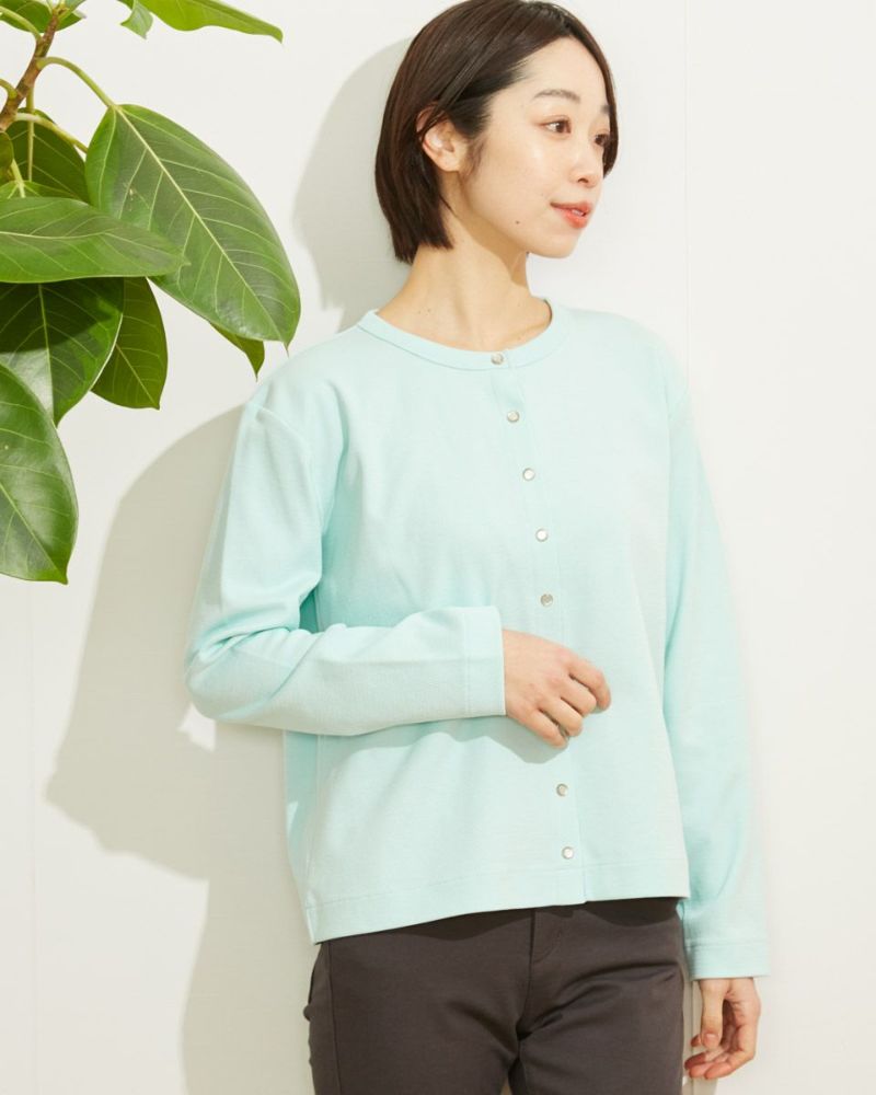 表面変化のあるハニカム素材で作ったシンプルなカーディガン。スナップ釦開きではおりとしてはもちろん、ボタンを閉じてプルオーバーのようにコーディネートするのもおすすめです。 モデル身長: 169 cm 着用サイズ: M サイズ Golden Bear Ladies' カットソー (Ladies')