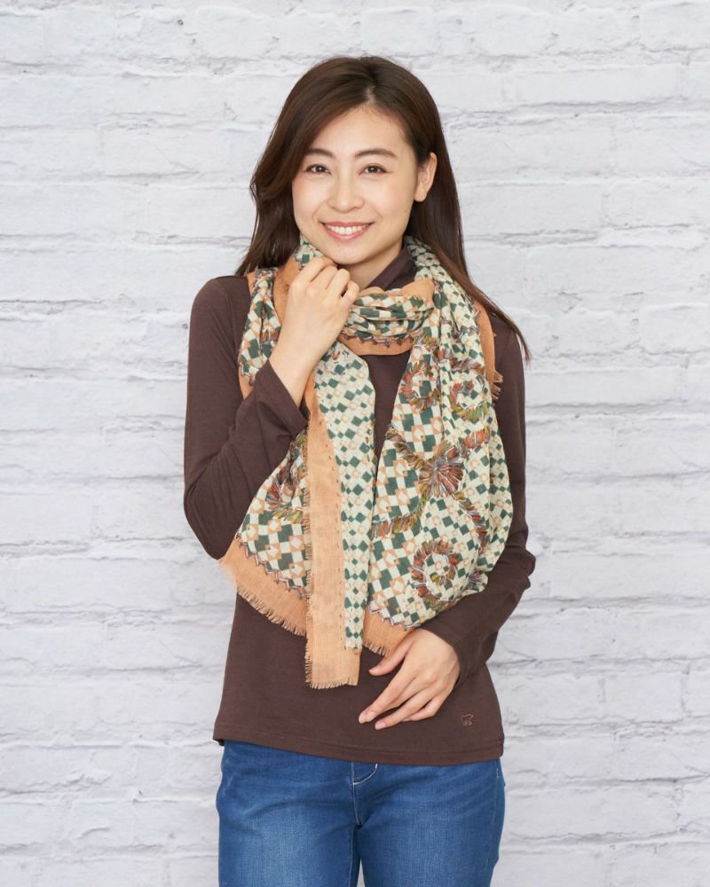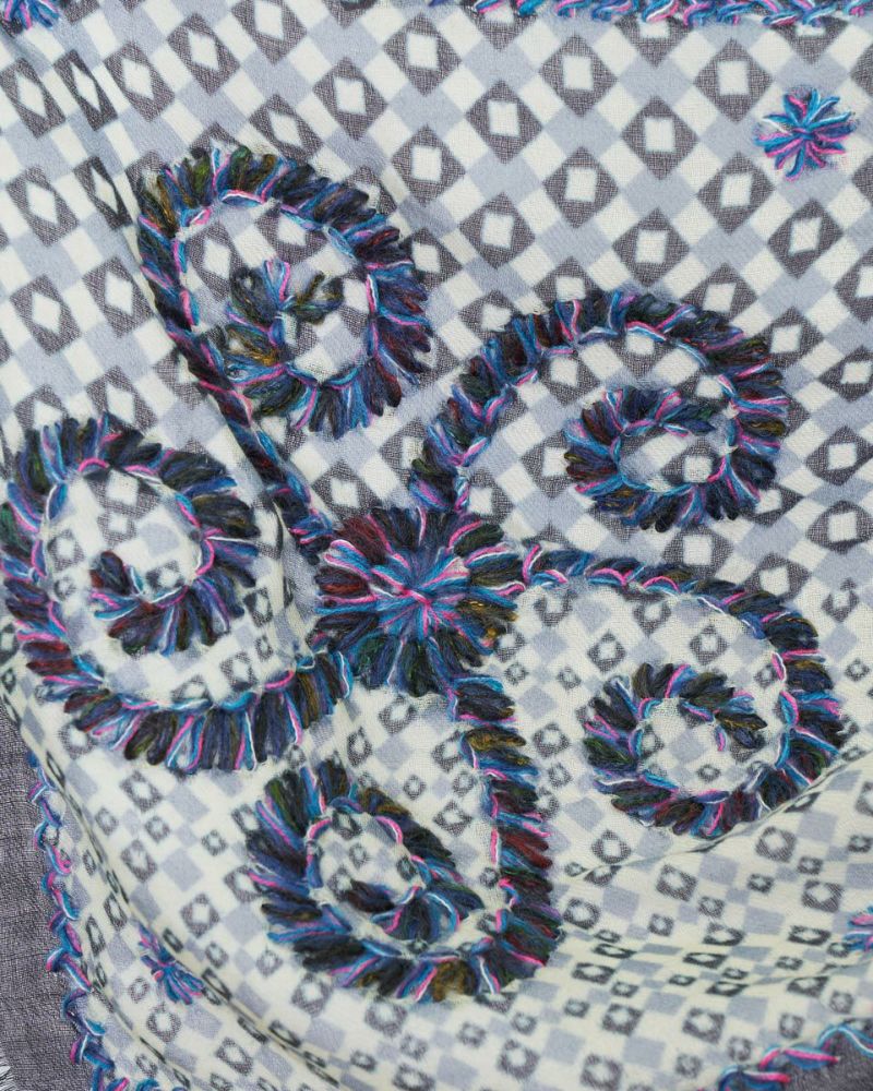 プリントに太めの糸の刺繍が豪華なウールストールです。暖かくおしゃれと実用性を楽しめるストールです。 Golden Bear Ladies' アクセサリ (Ladies')