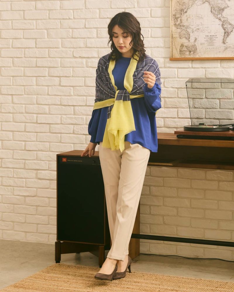 マス目のようなチェックがコーディネートに合わせやすく柔らかで軽いWOOL素材です。着こなしのアクセントに。 Golden Bear Ladies' アクセサリ (Ladies') 【着用アイテム】467QC401 梨地プルオーバー 468QC461 クルーネックPO 467QC711 プルオン折山プレステーパード