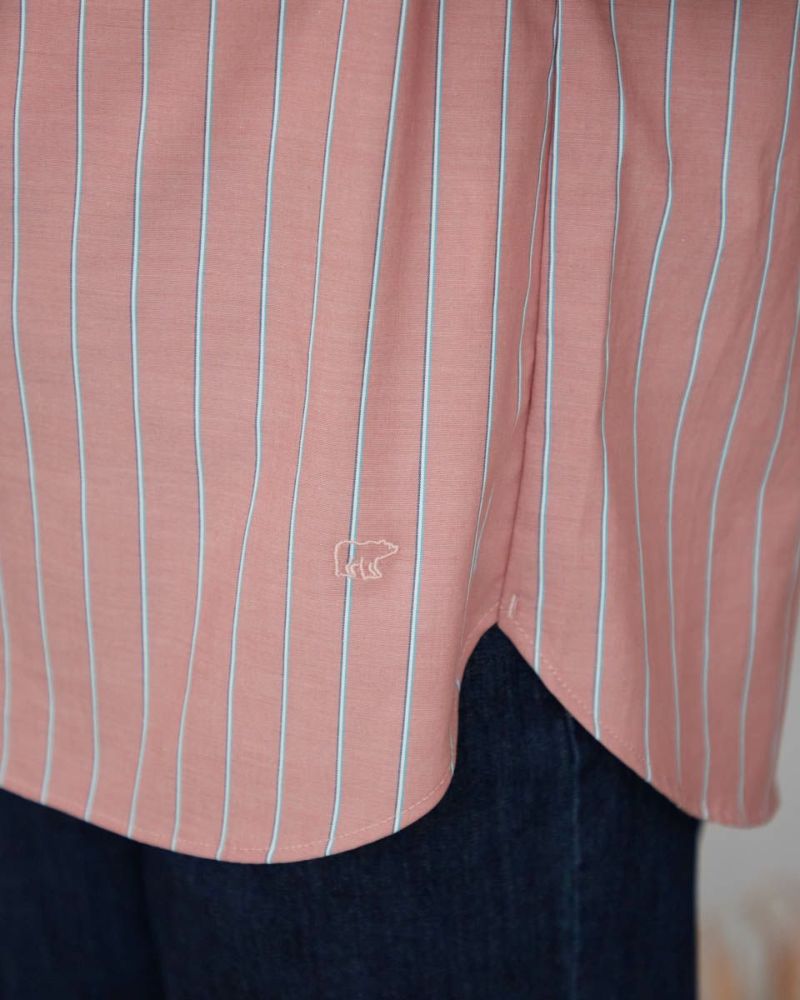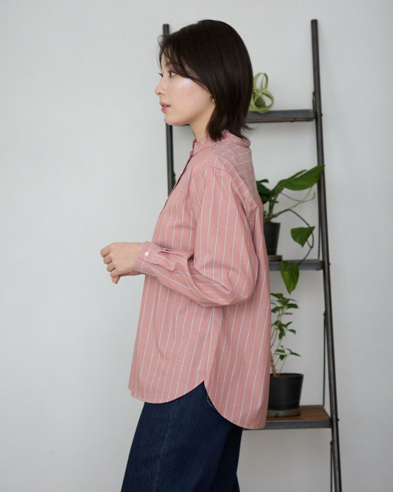 目の詰まったカジュアル過ぎない素材を使用したプルオーバーブラウスです。ひねりの効いたスタンドカラーがすっきりとクリーンな印象です。1枚でシンプルに着用してもサマになる1枚です。 モデル身長: 162 cm 着用サイズ: M サイズ Golden Bear QUEEN SIZE(Ladies' 大きいサイズ ) ブラウス (Ladies') 同デザイン通常サイズはこちら