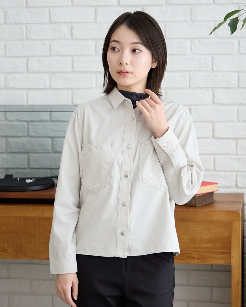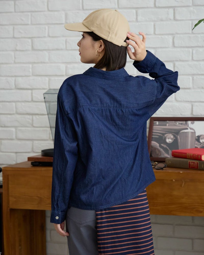 ショート丈のデニムシャツです。柔らかい素材でちょっとした羽織としても使いやすいアイテムです。カジュアルすぎないメタル釦がポイントです。ボリュームのあるボトムスと合わせるスタイリングがおすすめです。 モデル身長: 162 cm 着用サイズ: M サイズ Golden Bear WOMEN ブラウス (WOMEN) 同デザイン大きい(3L,4Lサイズ)はこちら キッズサイズはこちら メンズサイズはこちら 家族コーディネートアイテムはこちら 【着用アイテム】467RC330 オックス無地シャツ 467RC402 ドライタッチタートル長袖Tシャツ 467RC710 ツイルストレートパンツ 467RC711 サイドラインストレートパンツ 467RC712 デニムAラインスカート 467RC001 バンダナ