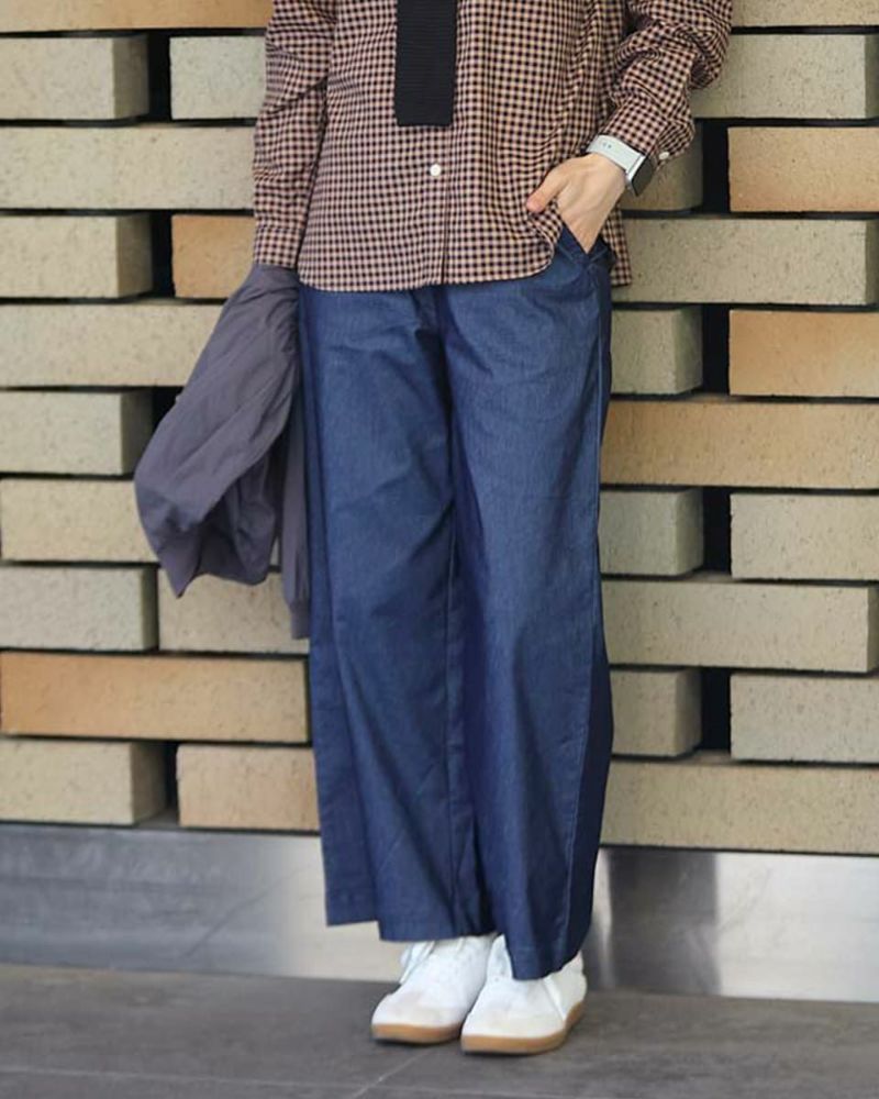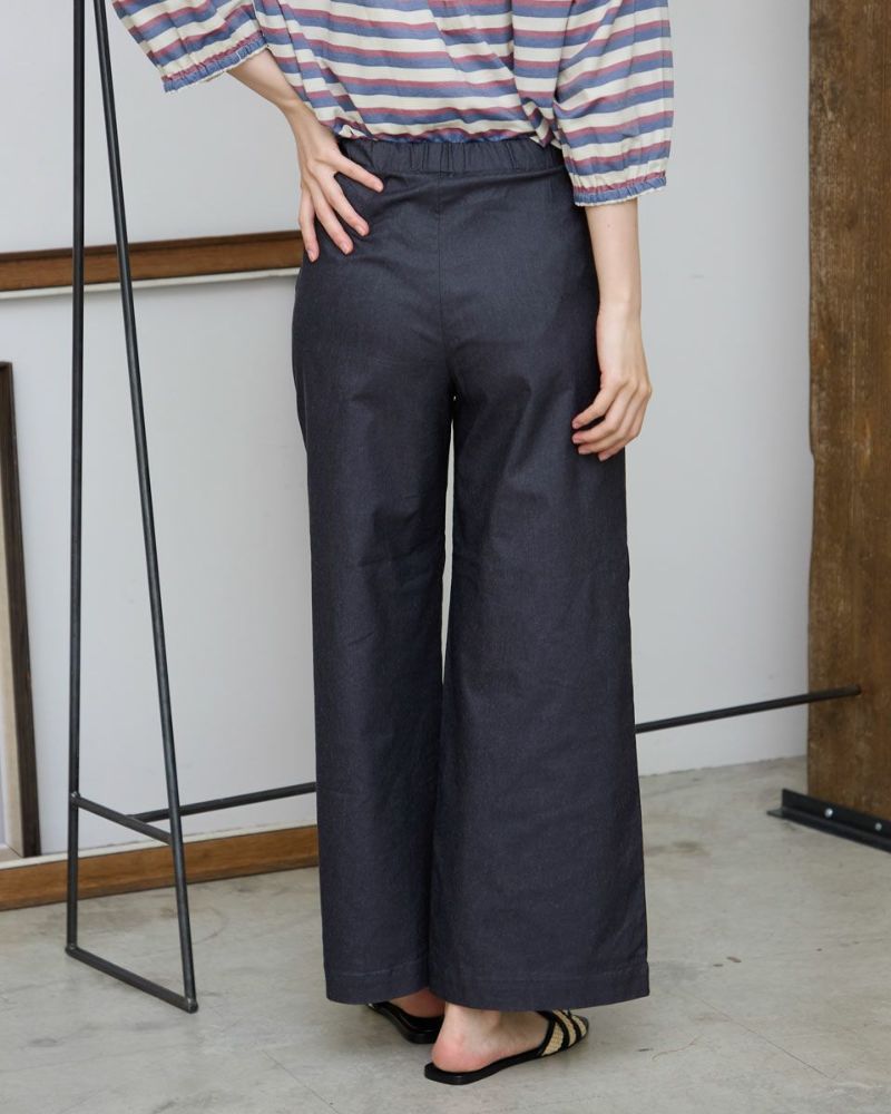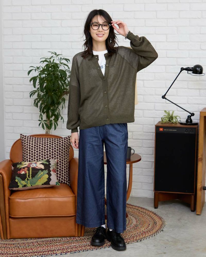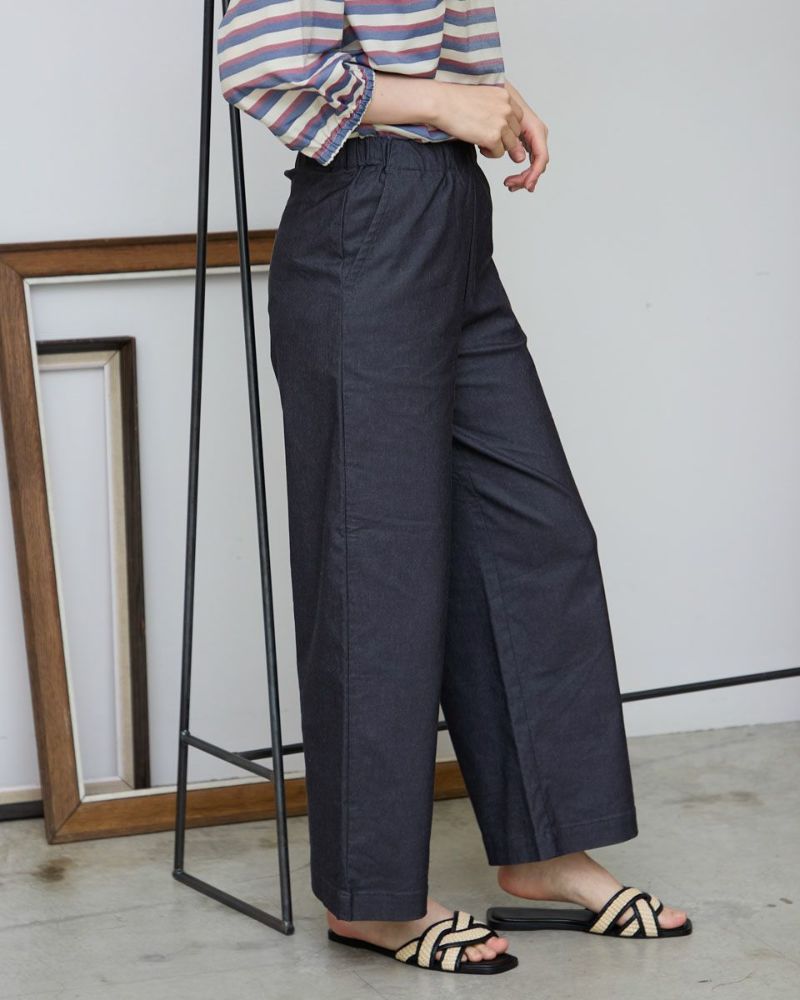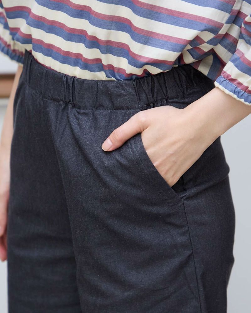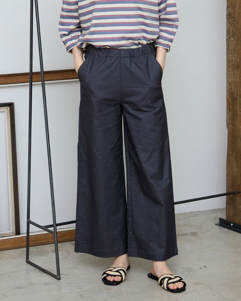 横方向に良く伸びる麻混のハイストレッチ素材を使用したガウチョパンツです。ウエストのベルト切替が無く、お腹周りがスッキリと見える仕様にしています。 モデル身長: 166 cm 着用サイズ: Sサイズ Golden Bear Ladies' ボトムス (Ladies') 【着用アイテム】467R8303 ボーダーブラウス 467R8332 チェックシャツ 467R8601 カーディガン 467R8110 リブ付きシアーブルゾン