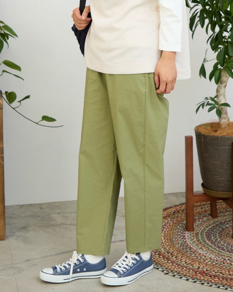 467RC102とセットアップで着用いただけるJKと同素材のパンツです。ストレッチ素材とゆとりを出したシルエットでストレスフリーに着用いただけます。ウエストゴム仕様で楽ちんなパンツです。 モデル身長: 168 cm 着用サイズ: S サイズ Golden Bear Ladies' ボトムス (Ladies') 【着用アイテム】467RC301 オンブレチェックシャツ羽織り 467RC402 ドライタッチタートル長袖Tシャツ 471RD150 ウールPコート