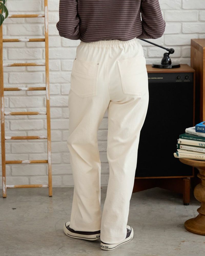 特殊な糸を使用したツイル素材のパンツです。軽く、ドライタッチで通気性、保温性、伸縮性に優れた素材です。生地に程よい厚みがありつつも軽く履き心地の良いパンツに仕上がっています。ワークな雰囲気の切り替えラインが足をまっすぐきれいに見せる効果が期待できます。 モデル身長: 162 cm 着用サイズ: 61 サイズ Golden Bear Ladies' ボトムス (Ladies') 【着用アイテム】467RC331 ショート丈デニムシャツ 467RC414 天竺無地・ボーダー長袖Tシャツ 468RC460 タートルネックリブTシャツ 467RD333 バッファローチェックシャツ 467RE633 洗えるGBラムウールカーディガン